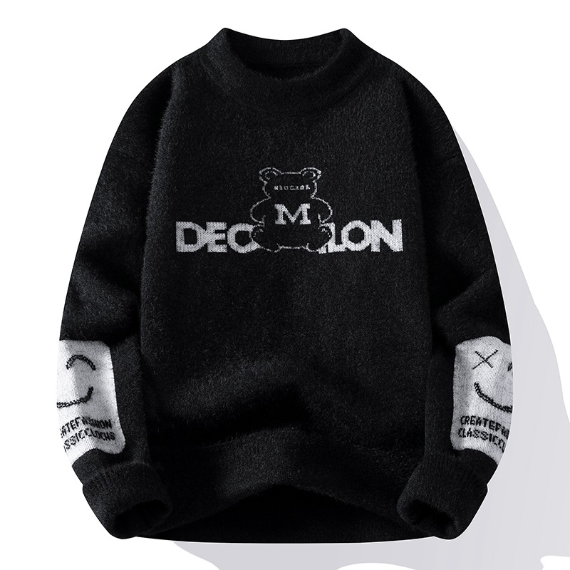 밍크 벨벳 남성 라운드넥 스웨터 한국 스타일 루즈핏 트렌디 개성 두꺼운 니트 베이스 셔츠 남성 가을 겨울 신상스토어 가기