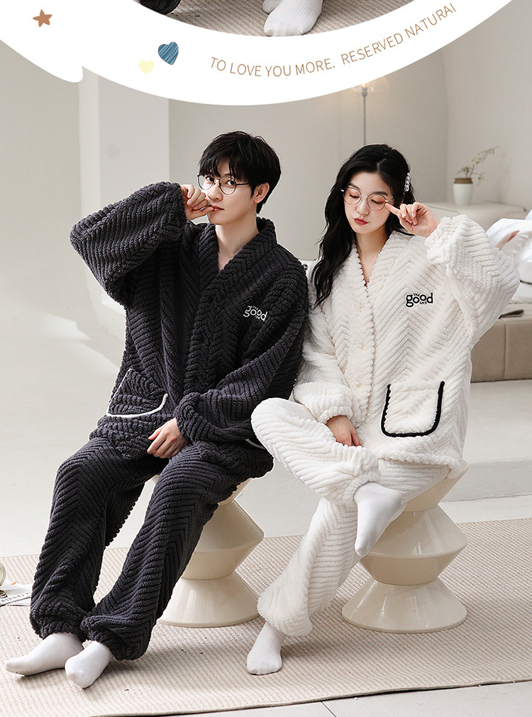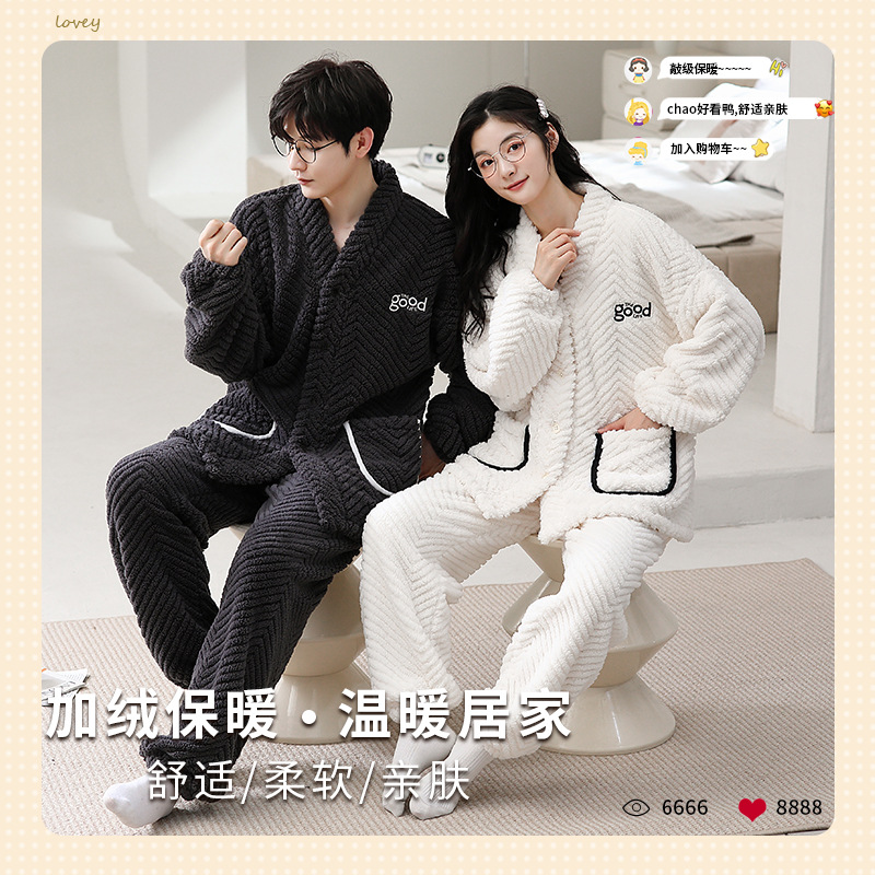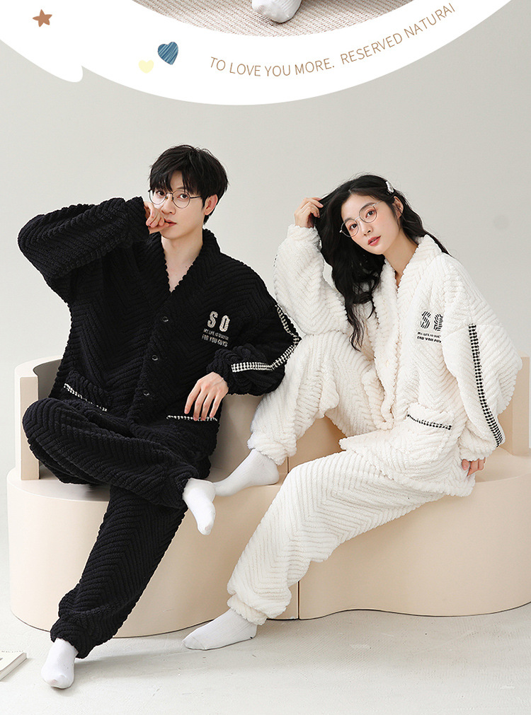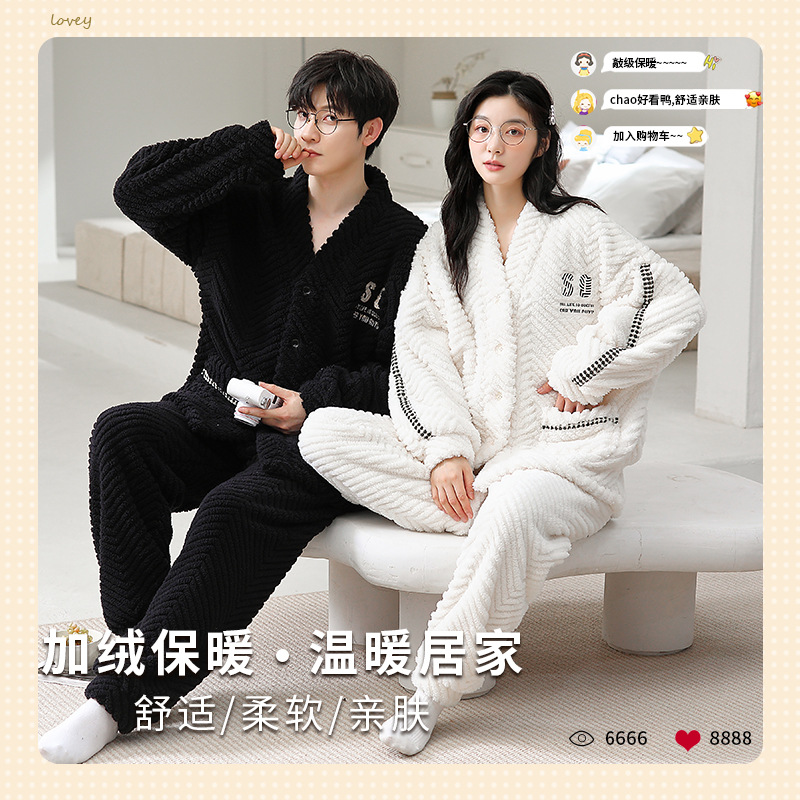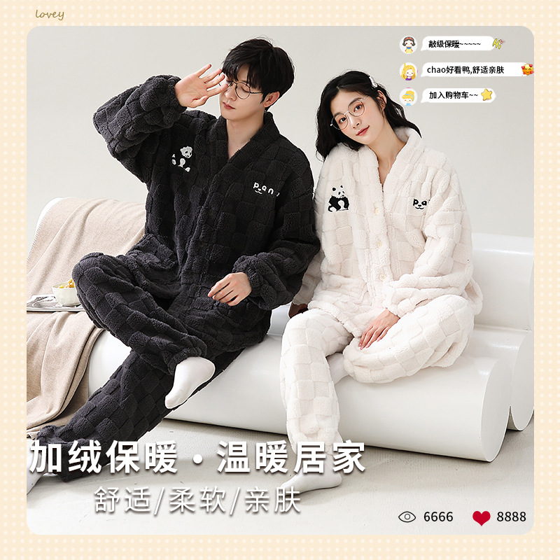 커플 잠옷 가을과 겨울 두꺼운 산호 양털 여성 만화 겨울 플란넬 남성 홈 의류 지퍼 세트스토어 가기