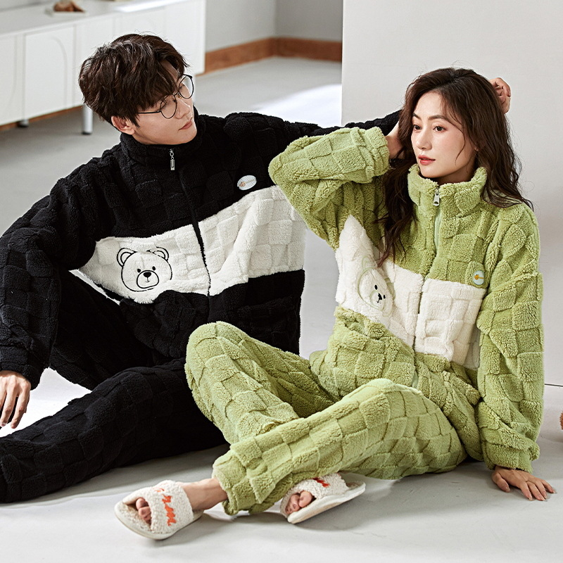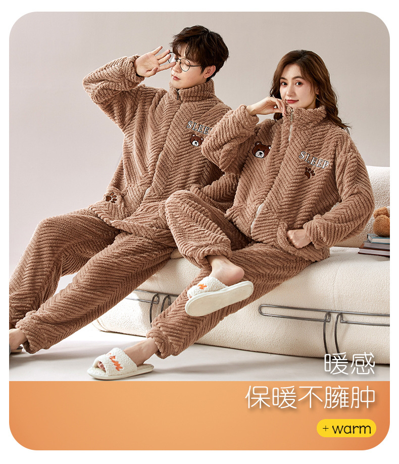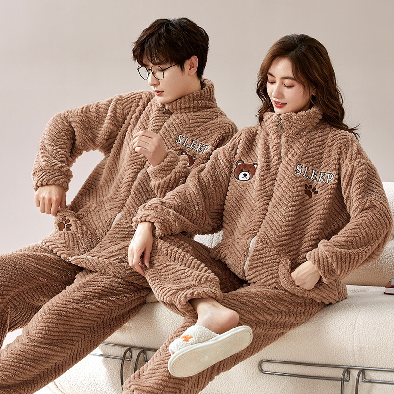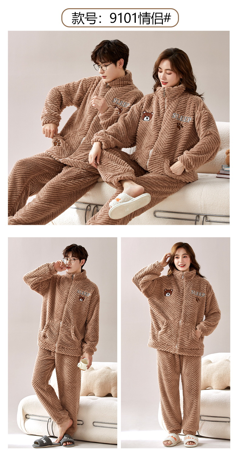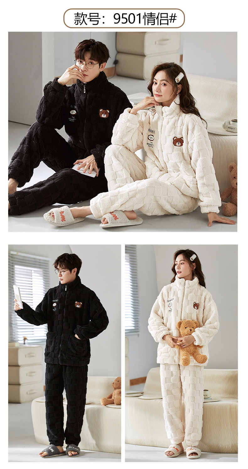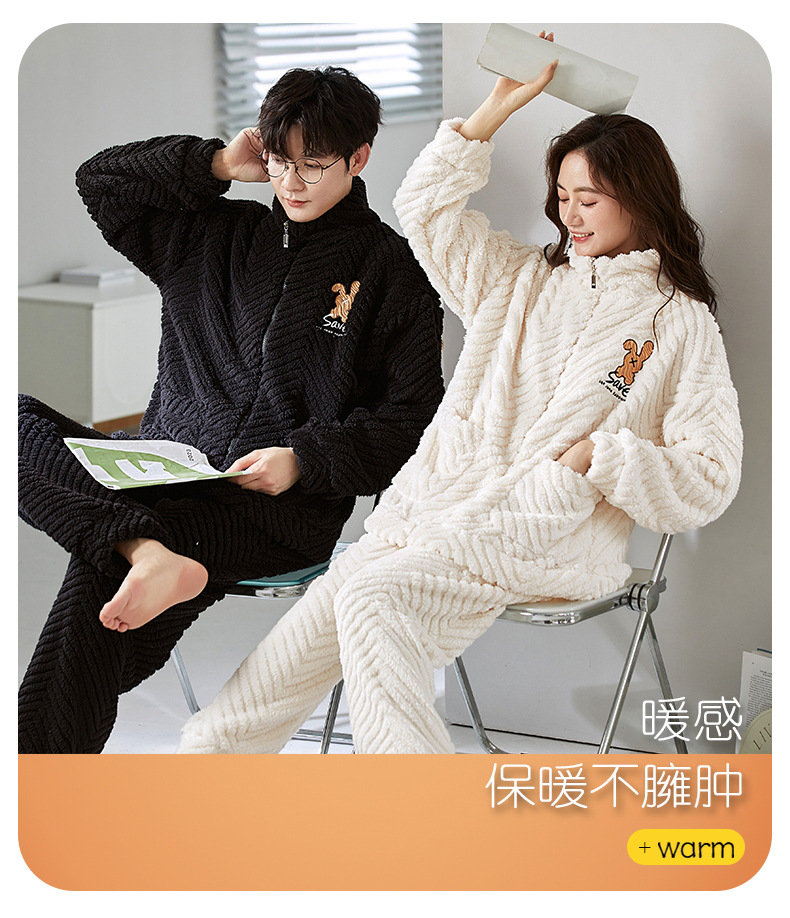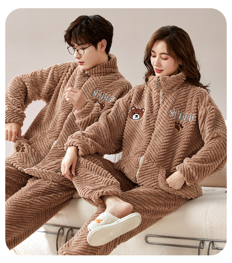 커플 잠옷 가을과 겨울 두꺼운 산호 양털 여성 만화 겨울 플란넬 남성 홈 의류 지퍼 세트