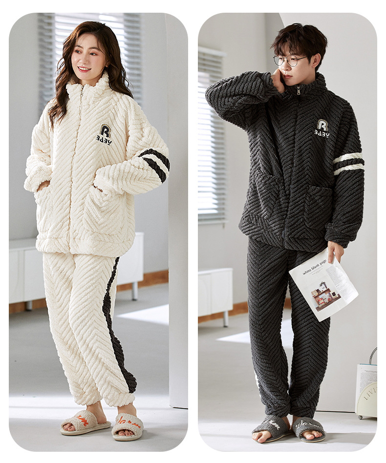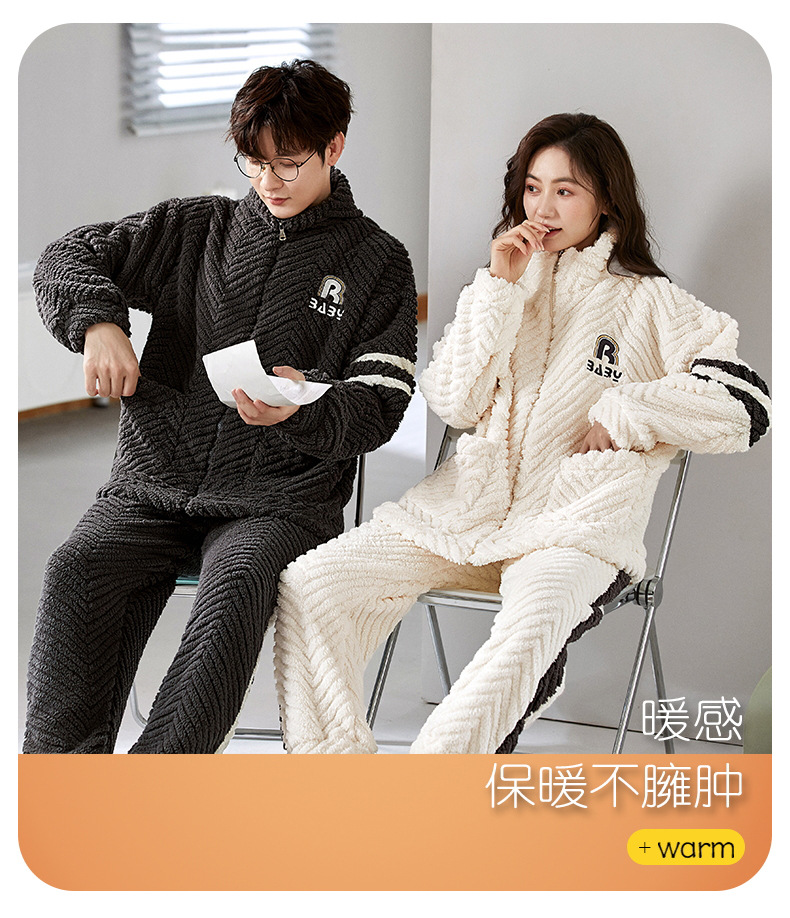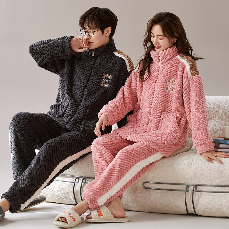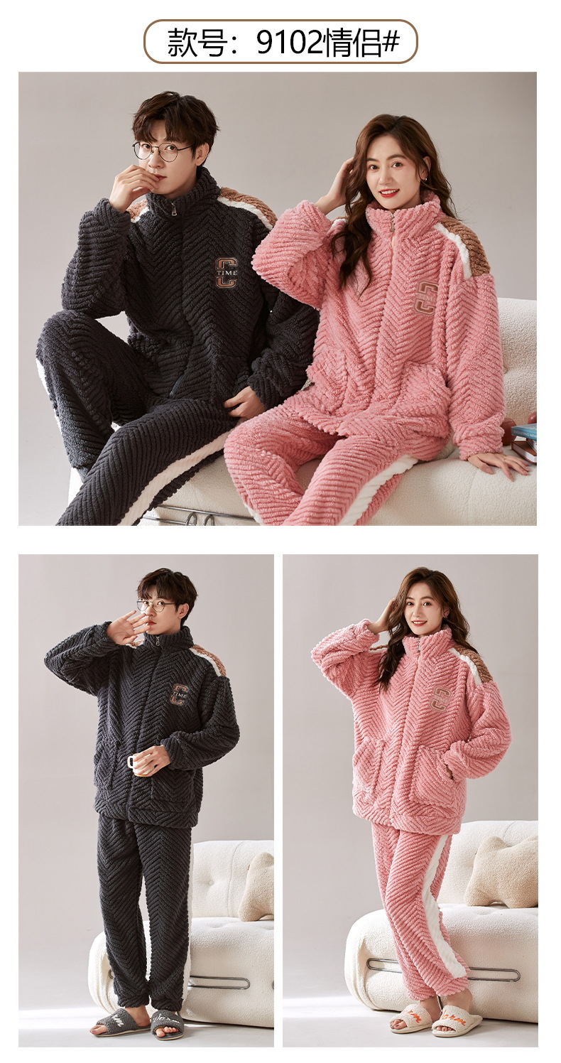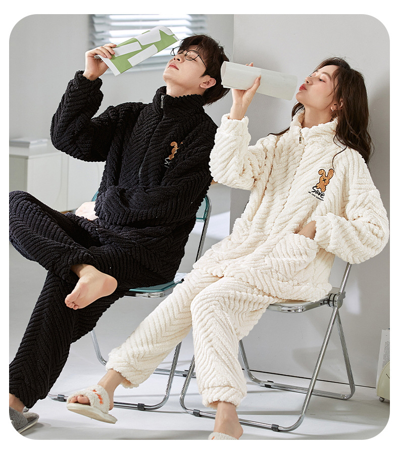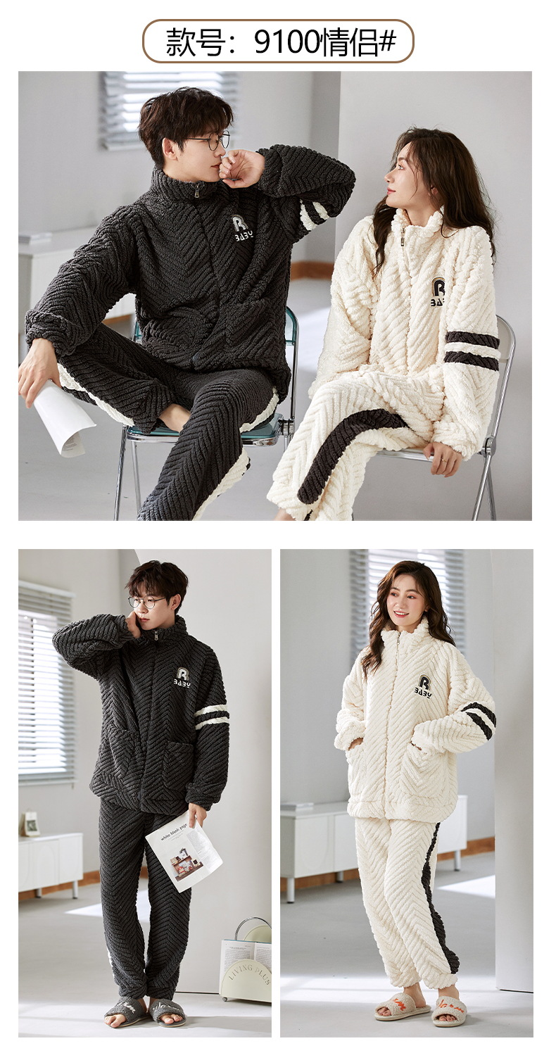 커플 잠옷 가을과 겨울 두꺼운 산호 양털 여성 만화 겨울 플란넬 남성 홈 의류 지퍼 세트