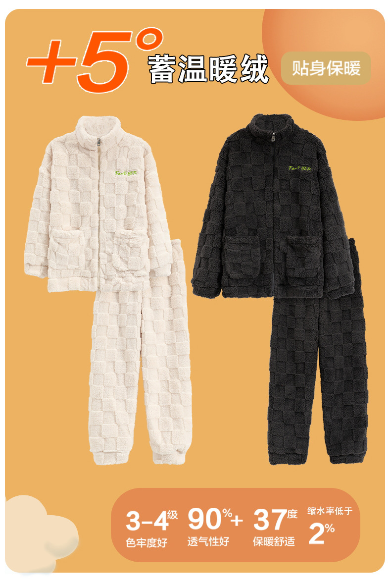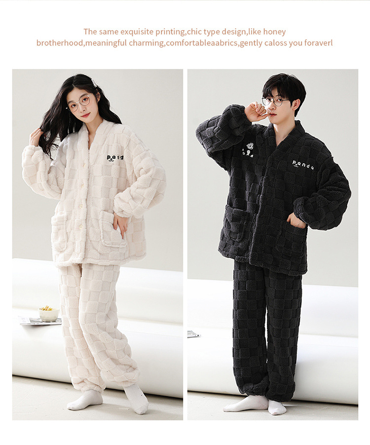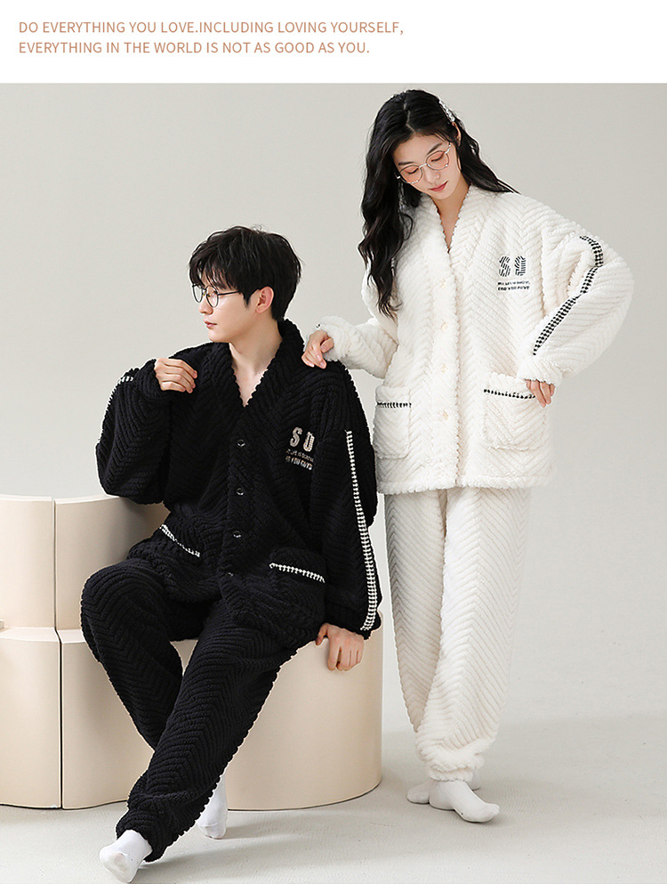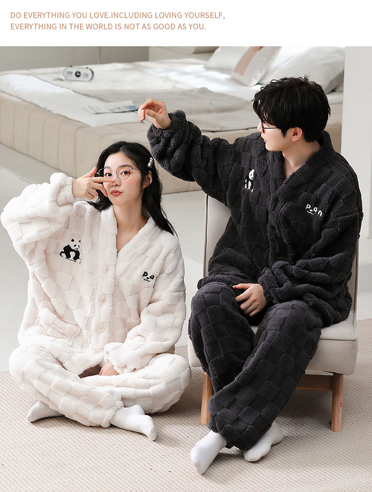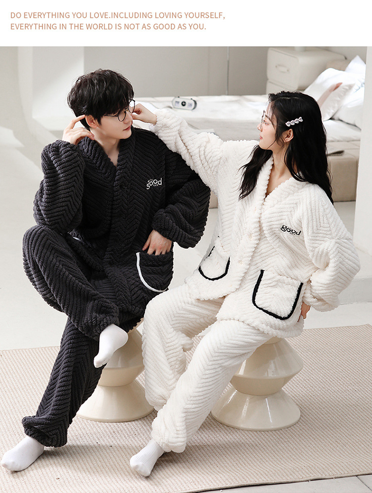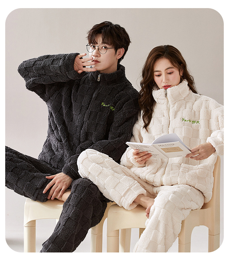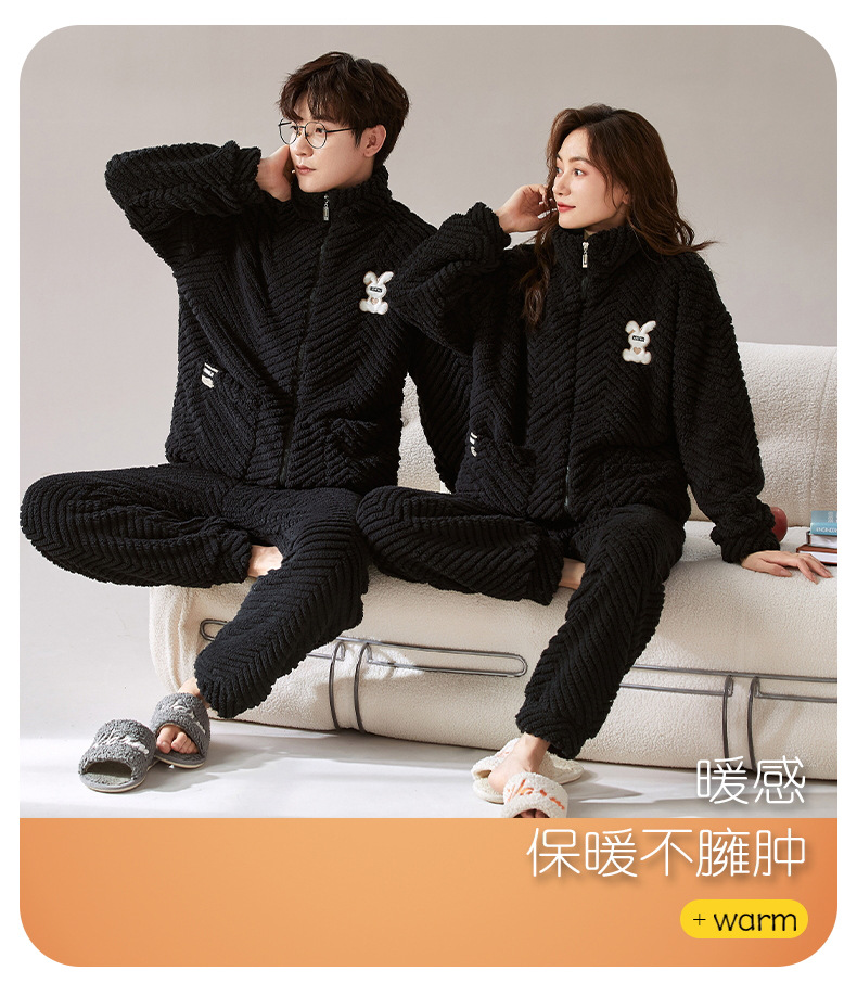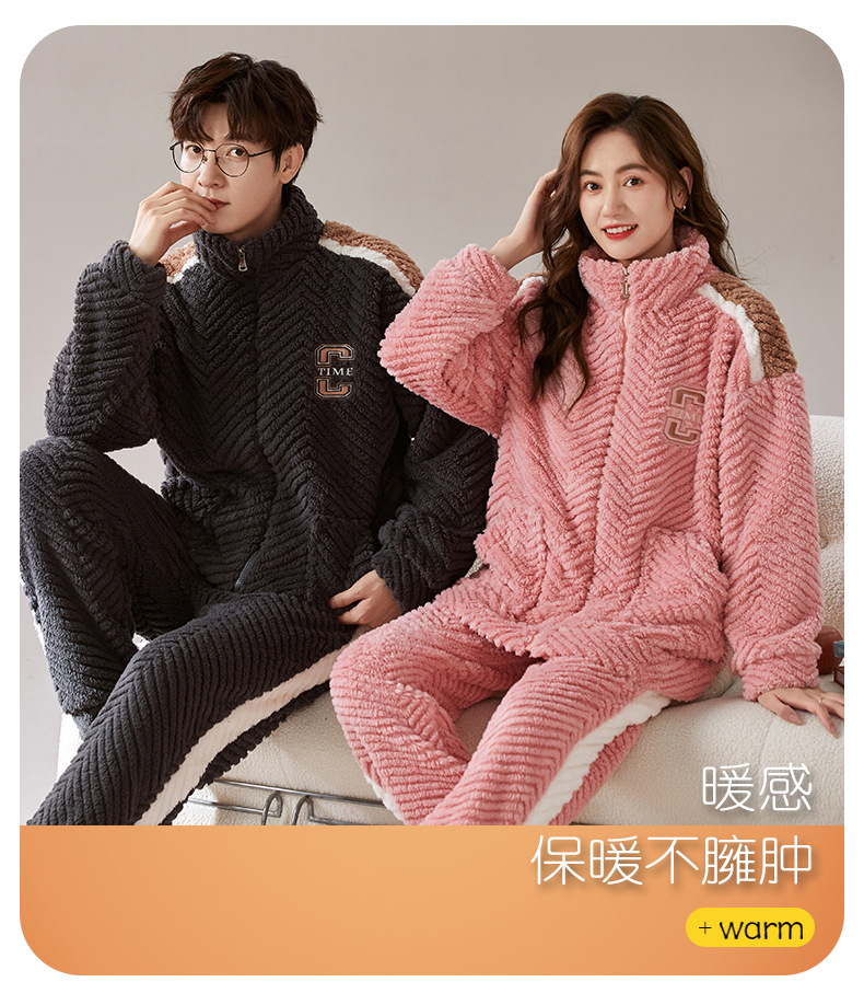 커플 잠옷 가을과 겨울 두꺼운 산호 양털 여성 만화 겨울 플란넬 남성 홈 의류 지퍼 세트