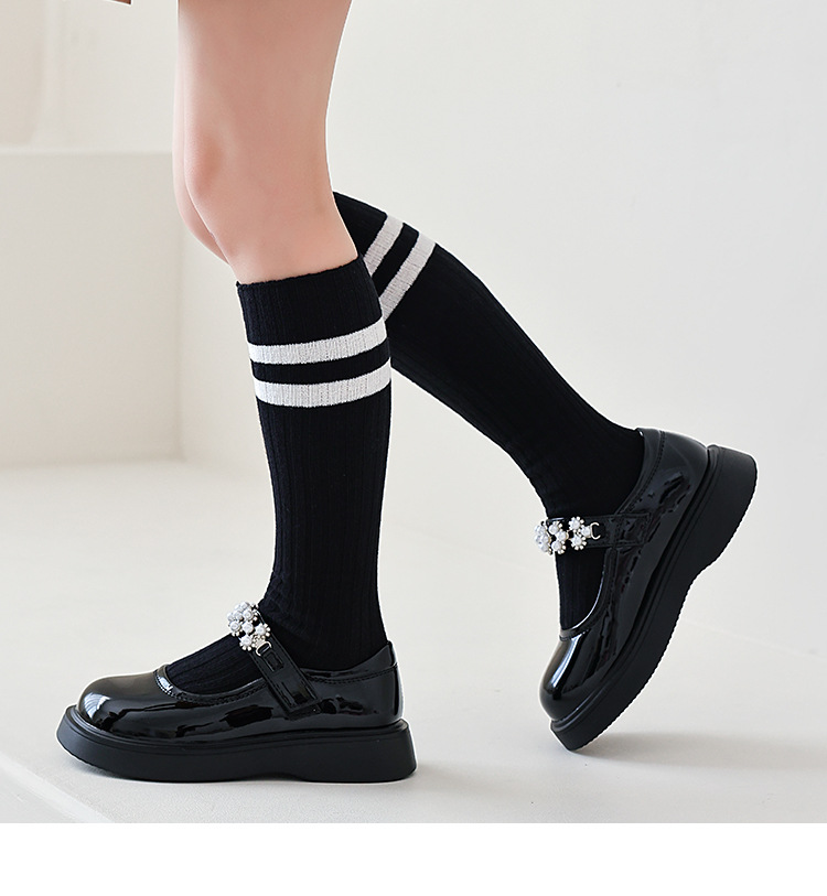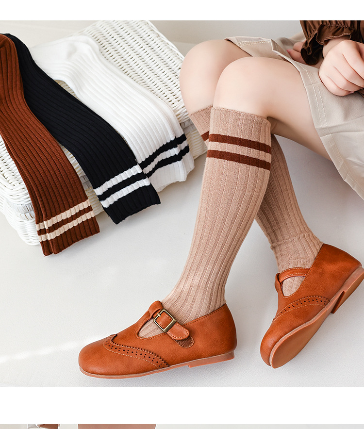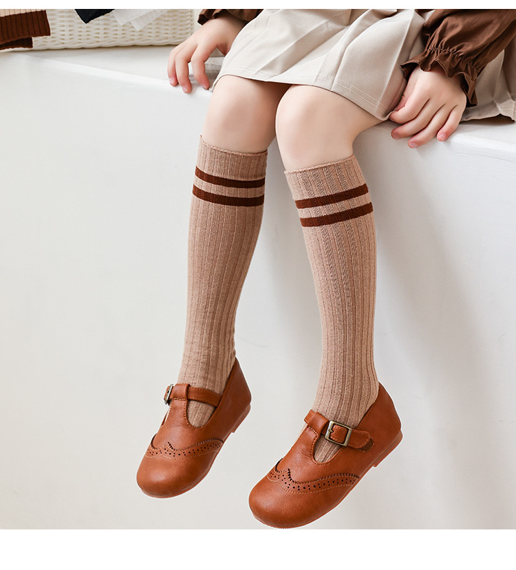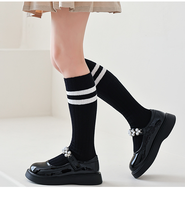 소녀 양말 봄과 가을 더블 바늘 종아리 양말 학술 스타일 큰 어린이 한국 인 평행 바 높은 수준의 양말 제조 업체 도매