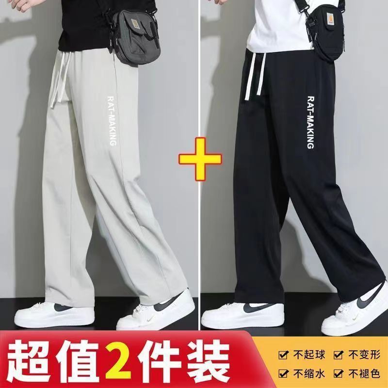 캐주얼 바지 남자의 봄, 여름 및 가을 새로운 스타일 엘라스토 레이스 와이드 다리 바지 아이스 실크 빠른 건조 Draping 느슨한 스트레이트 바지