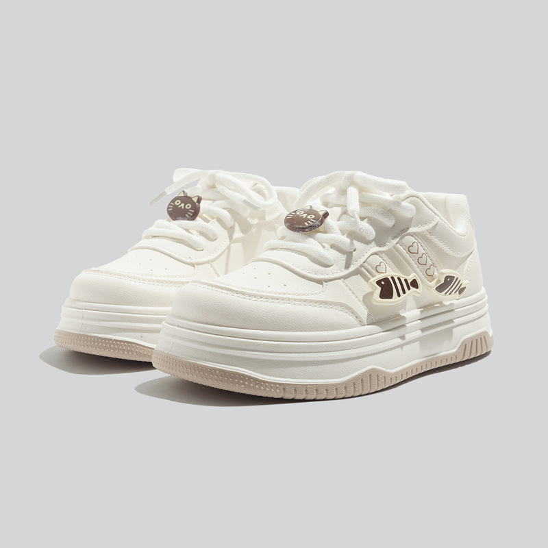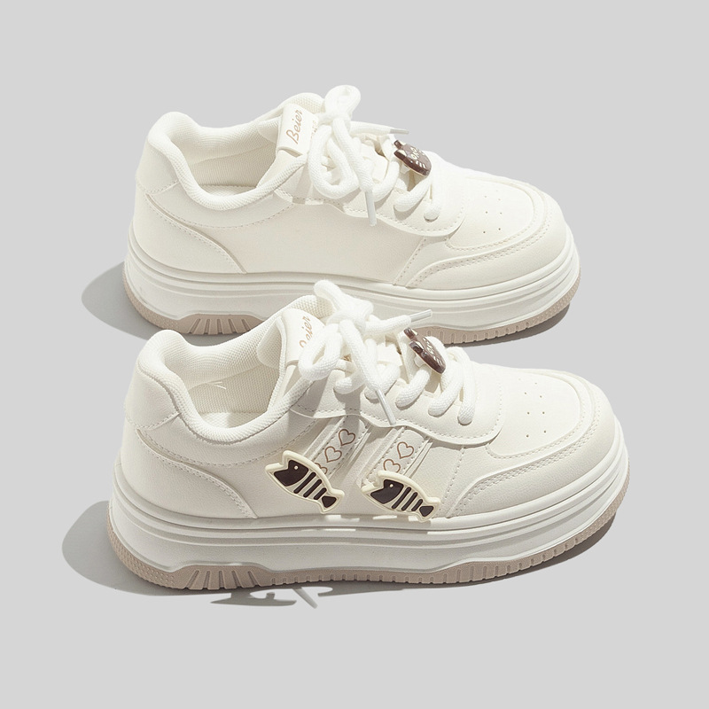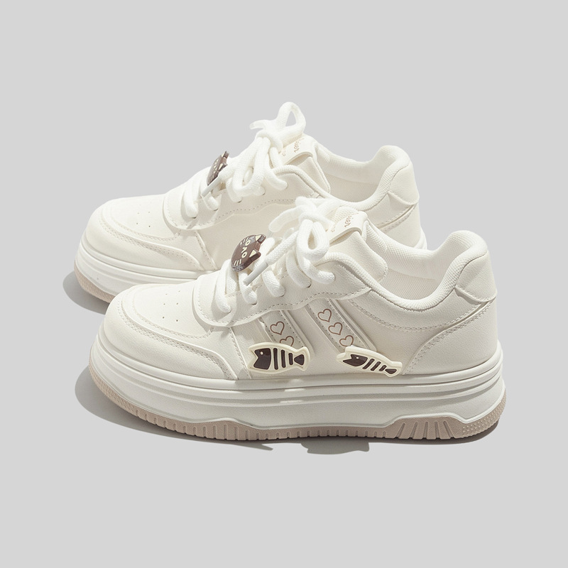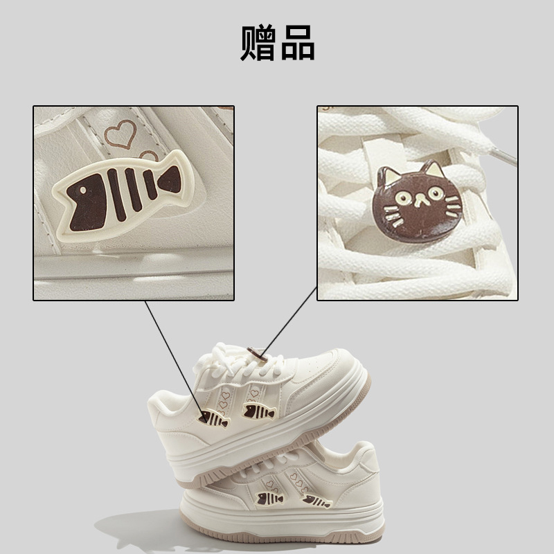 간단한 야옹 미 작은 물고기 통기성 올 매치 화이트 신발 2025 봄 새로운 틈새 패션 캐주얼 스니커즈 로우 탑 여성 신발스토어 가기