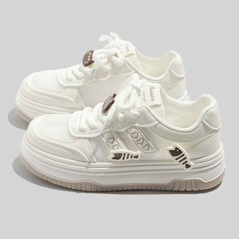 간단한 야옹 미 작은 물고기 통기성 올 매치 화이트 신발 2025 봄 새로운 틈새 패션 캐주얼 스니커즈 로우 탑 여성 신발
