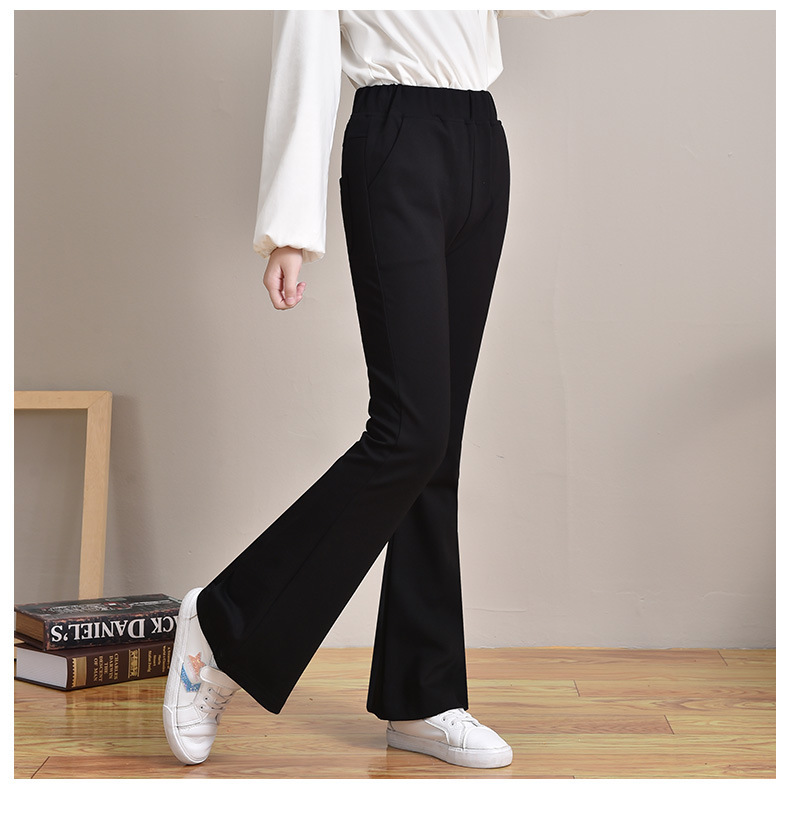 소녀 얇은 바지 가을 2024 새로운 세련된 슬리밍 블랙 마이크로 혼 바지 봄과 가을스토어 가기