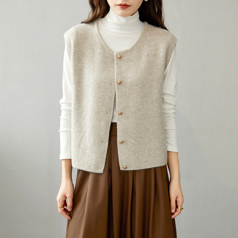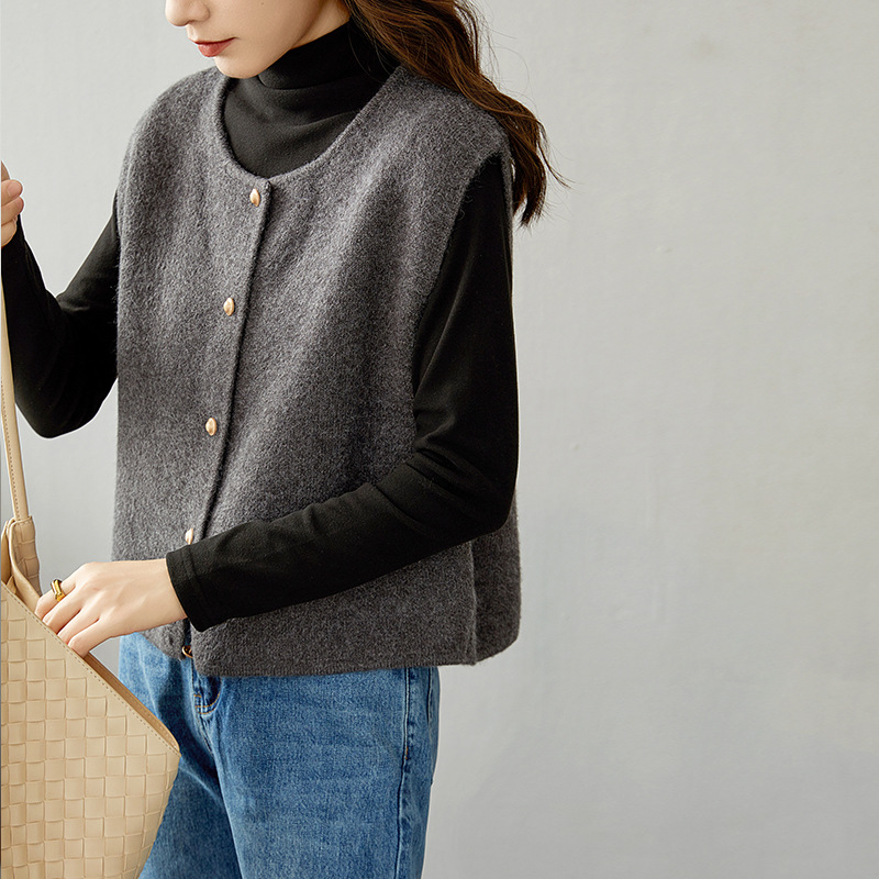 일본 회색 스웨터 조끼 니트 조끼 여성 봄과 가을 2025 새로운 지식인 외부 카디건 웨이스트 코트