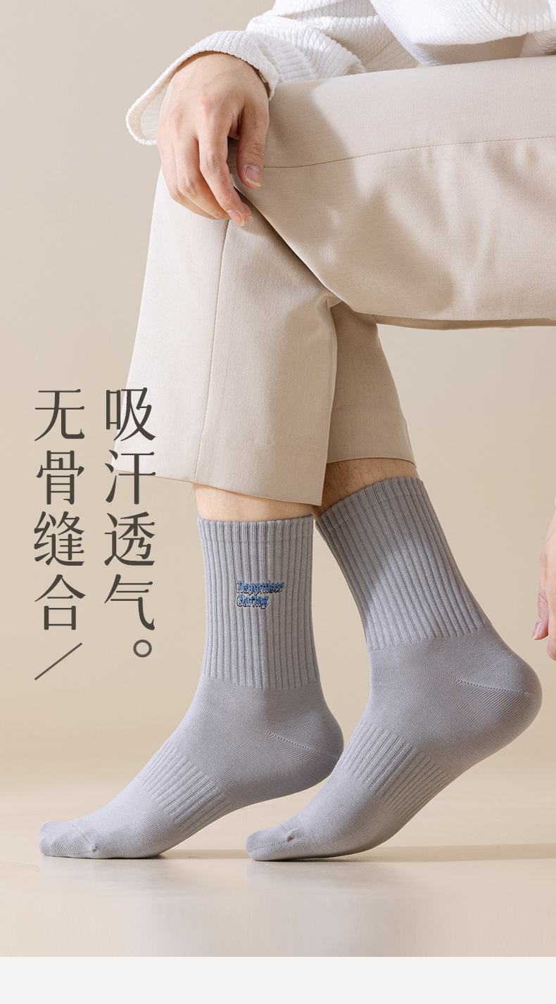 양말 남성 가을과 겨울 단색 자수 남성용 양말 뼈없는 양말 면 땀 흡수성 통기성 탈취제 가을 레저 스포츠 양말스토어 가기