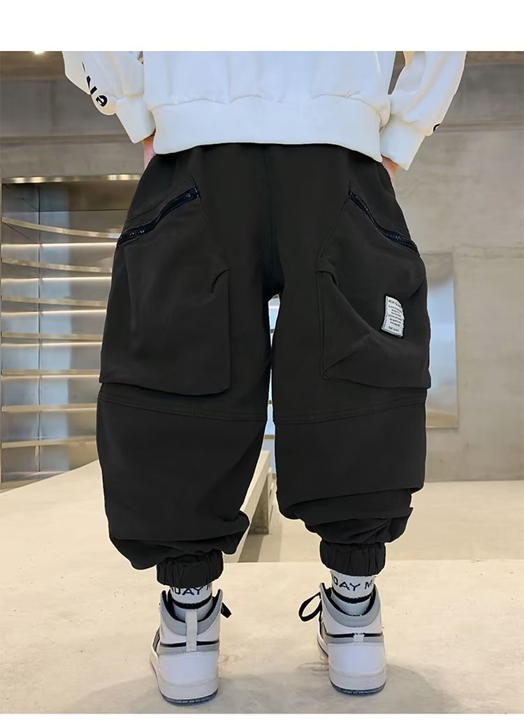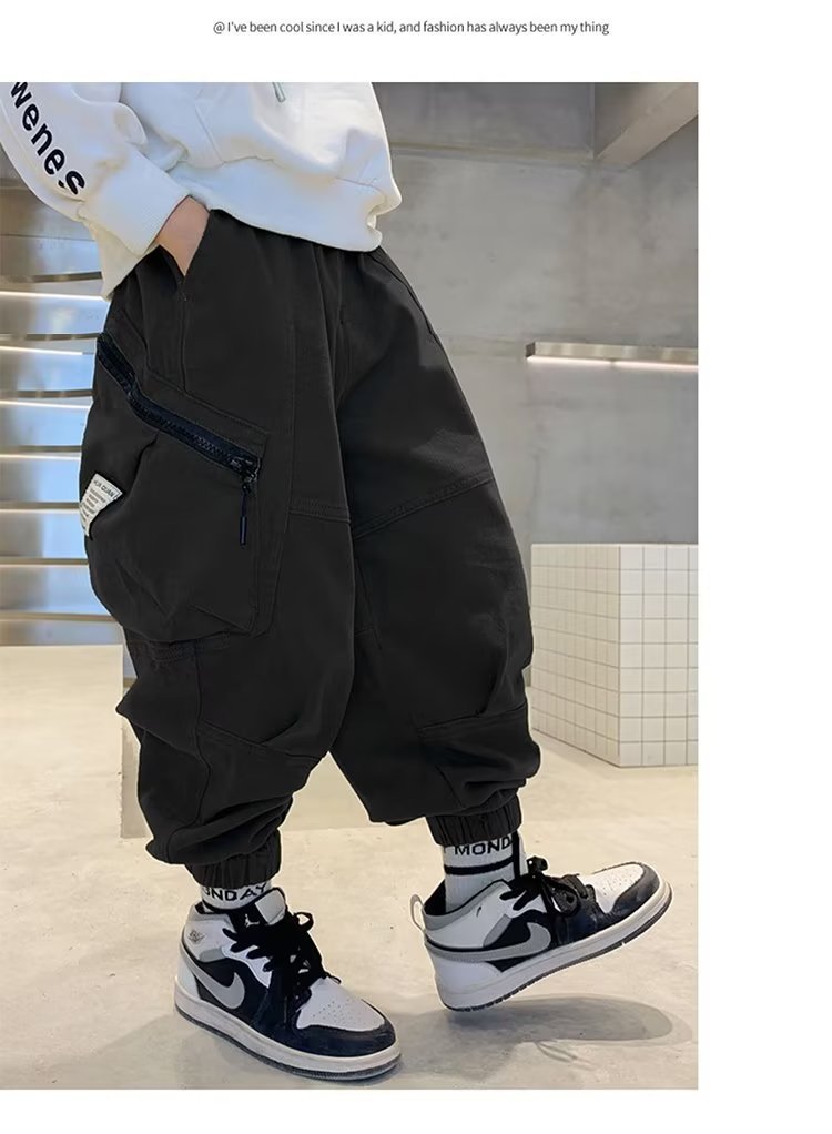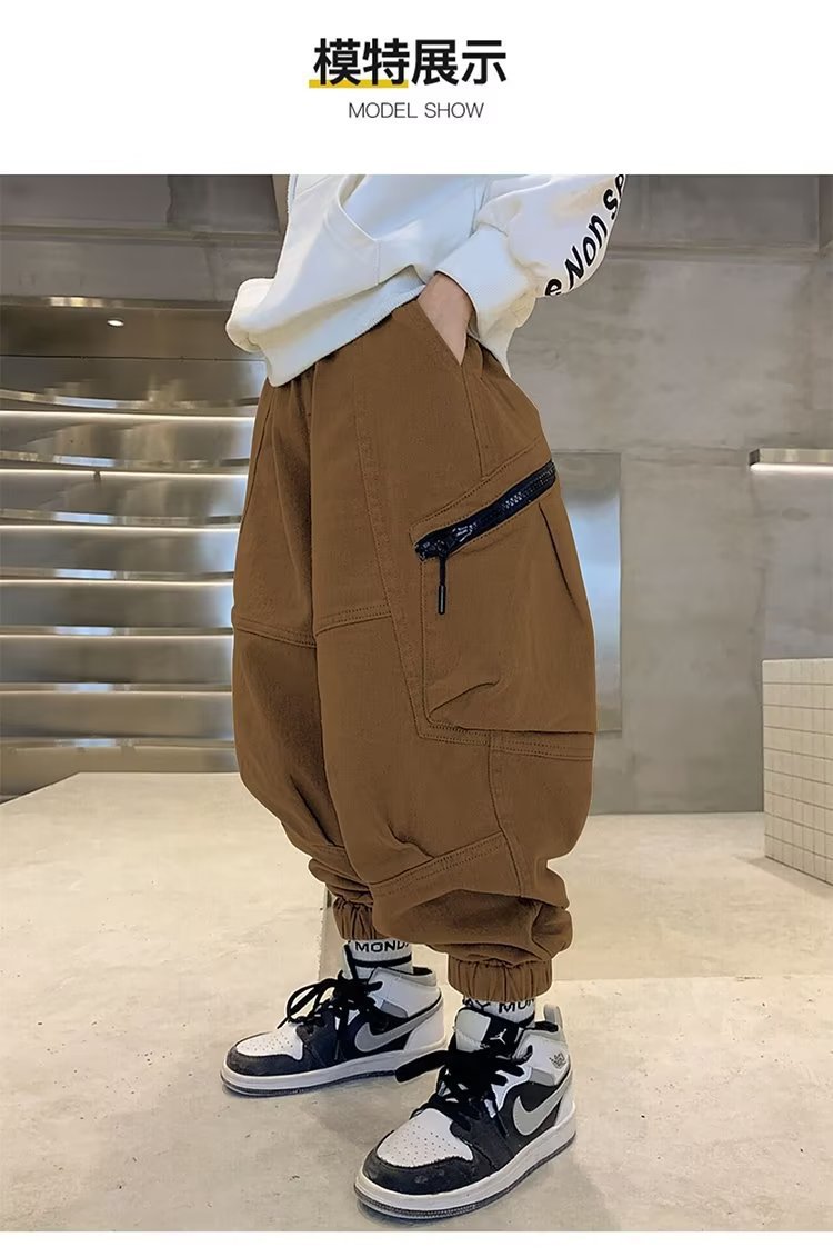 소년 바지 2024 가을 잘 생긴 바지 어린이 서양 포켓 캐주얼 바지 큰 어린이 느슨한 바지스토어 가기