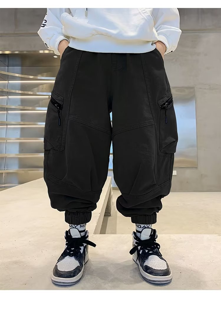 소년 바지 2024 가을 잘 생긴 바지 어린이 서양 포켓 캐주얼 바지 큰 어린이 느슨한 바지