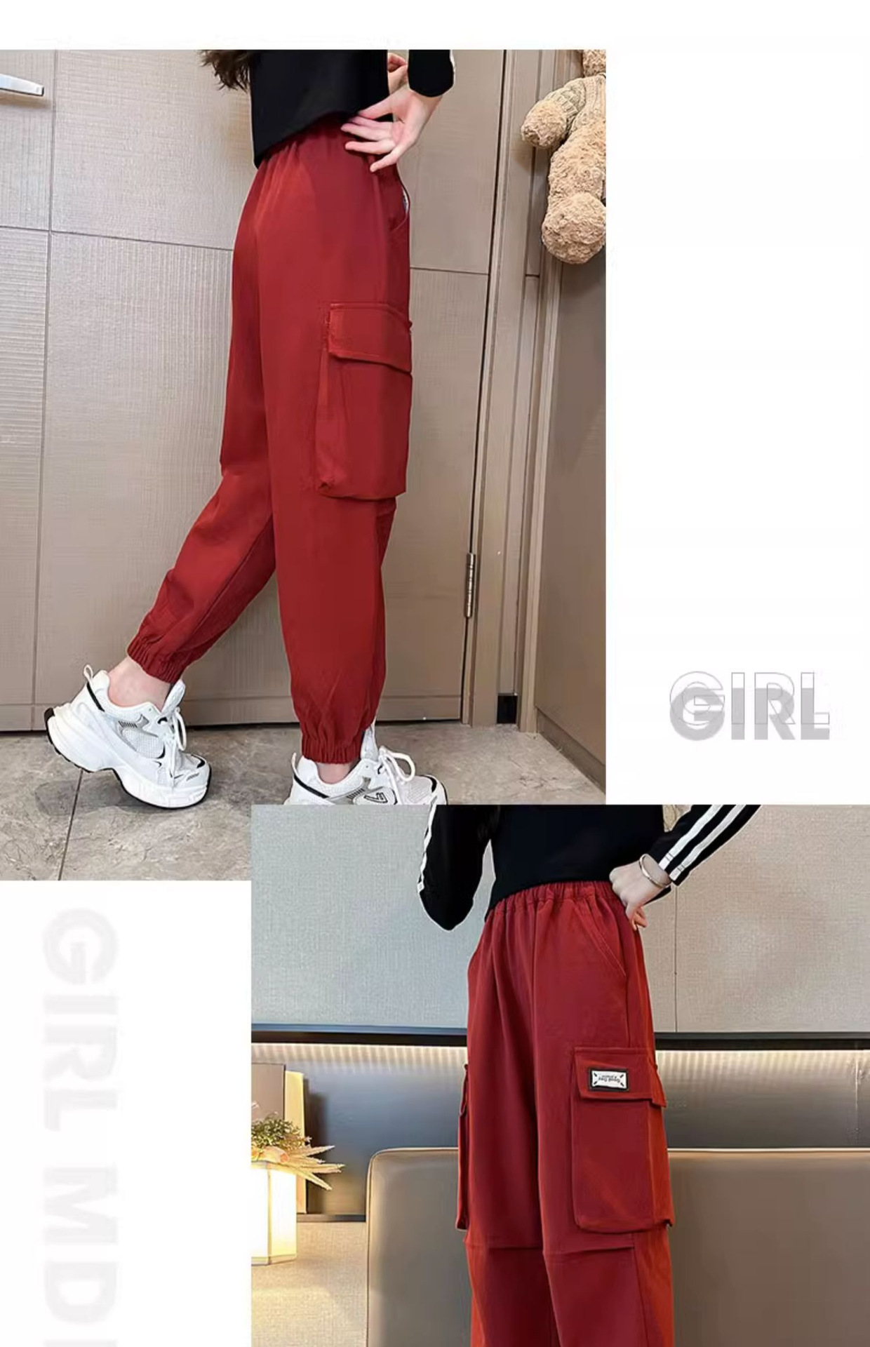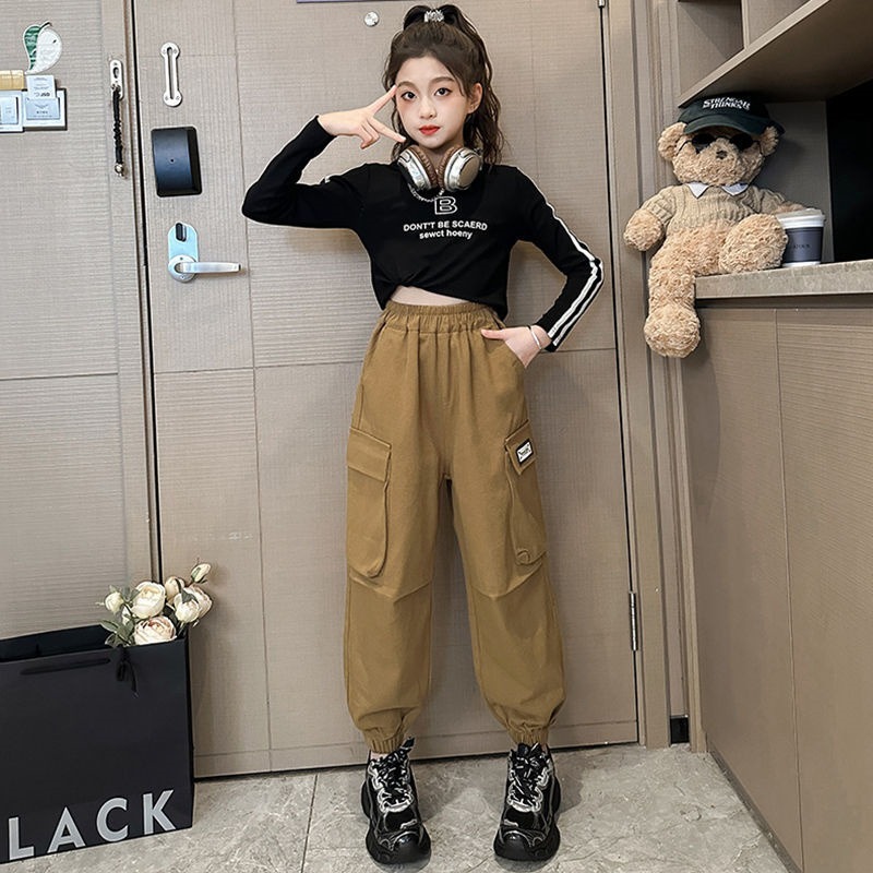 소녀 바지 2024 봄과 가을 새로운 코일 바지 큰 어린이 발 번들 스포츠 패션 가을 외부 착용 캐주얼 바지스토어 가기