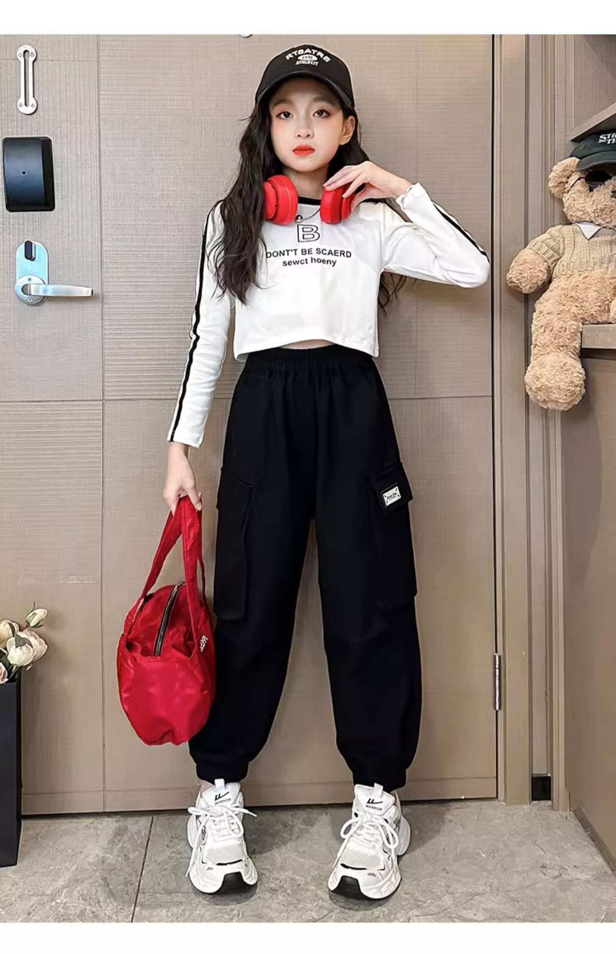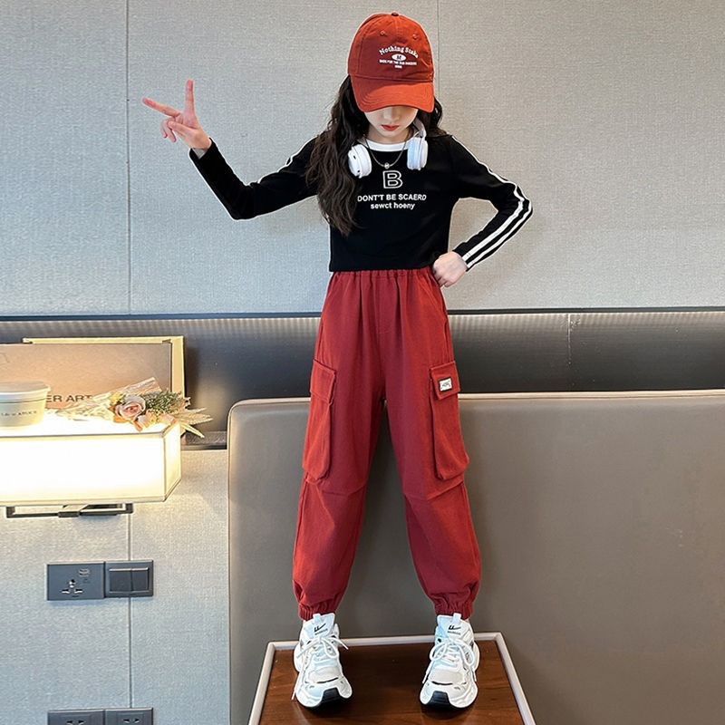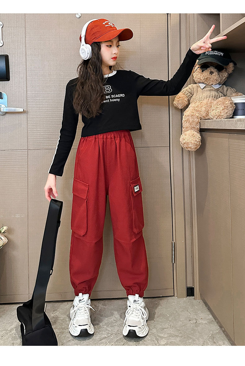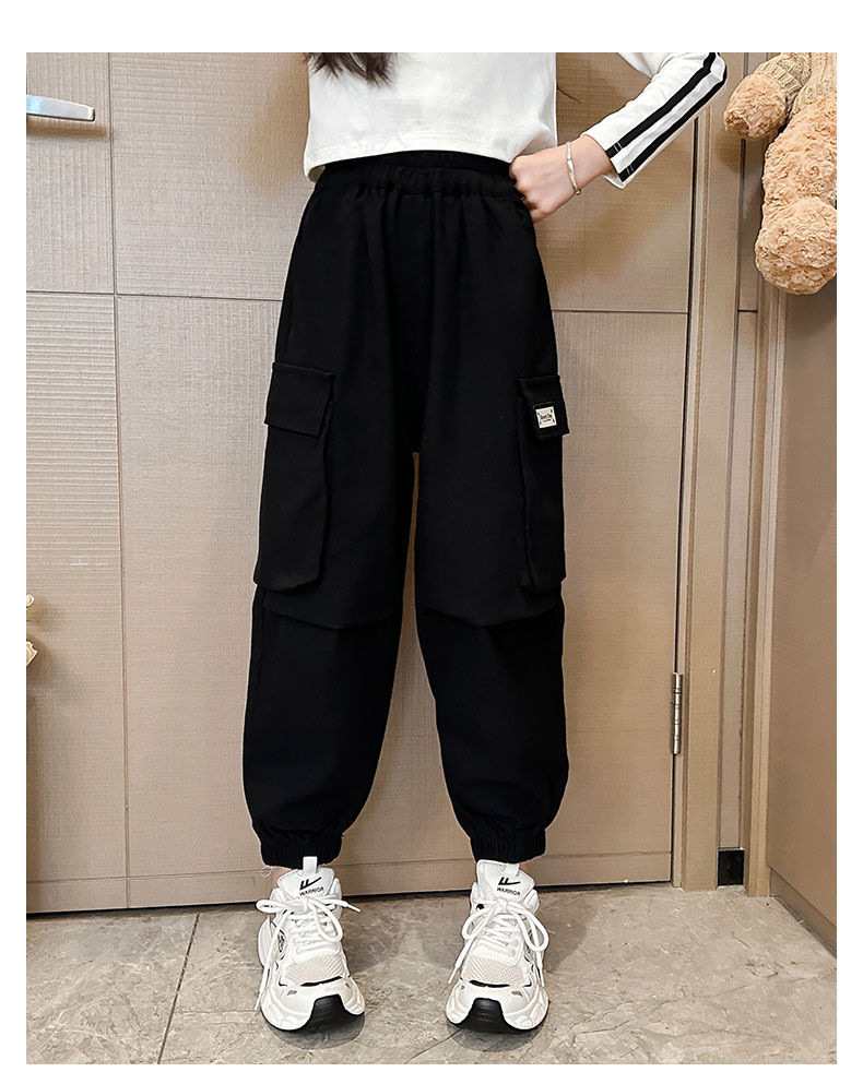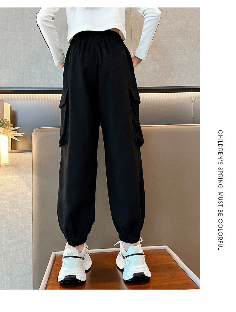 소녀 바지 2024 봄과 가을 새로운 코일 바지 큰 어린이 발 번들 스포츠 패션 가을 외부 착용 캐주얼 바지