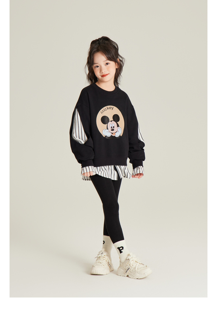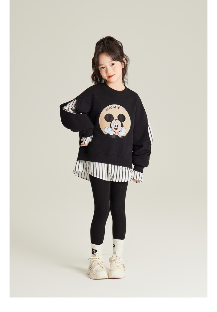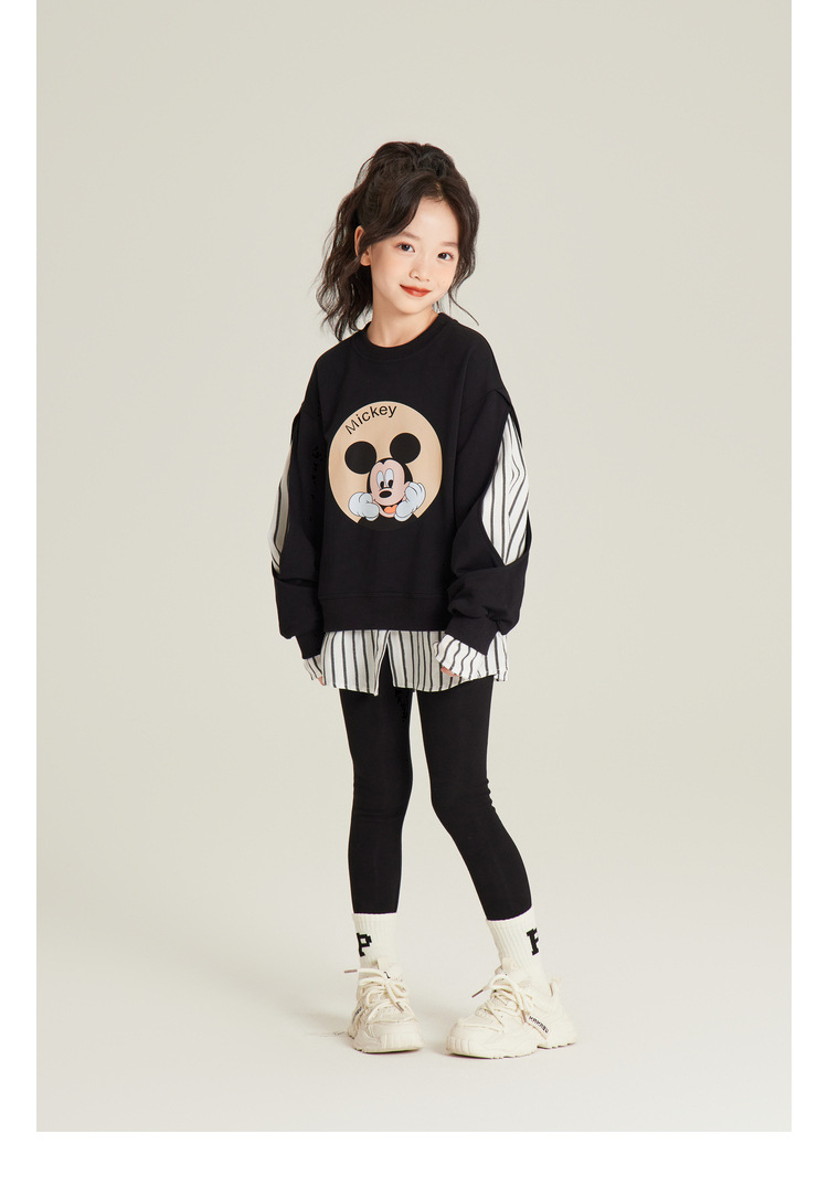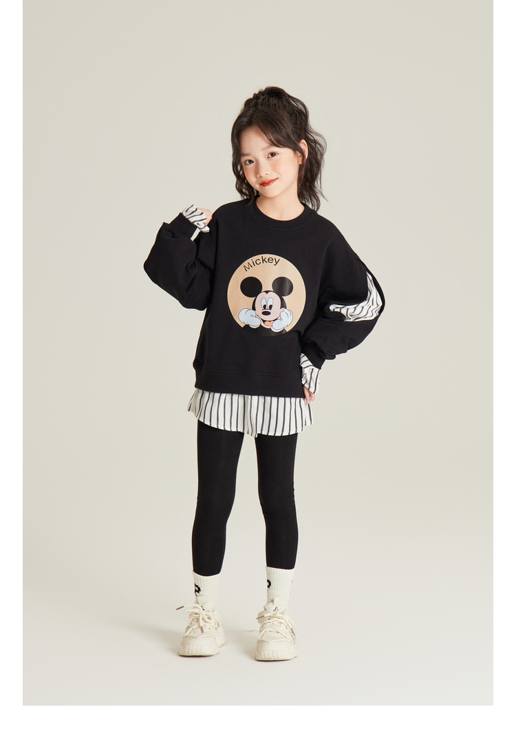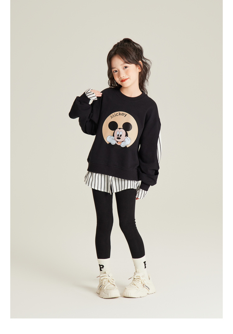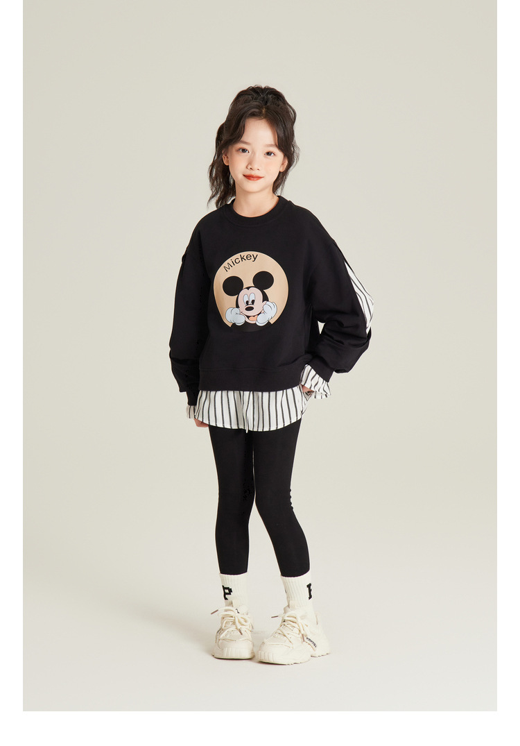 Amybaby Girls Top 가을 2024 새로운 만화 미키 스티칭 줄무늬 셔츠 라운드 넥 풀오버 스웨트 셔츠스토어 가기