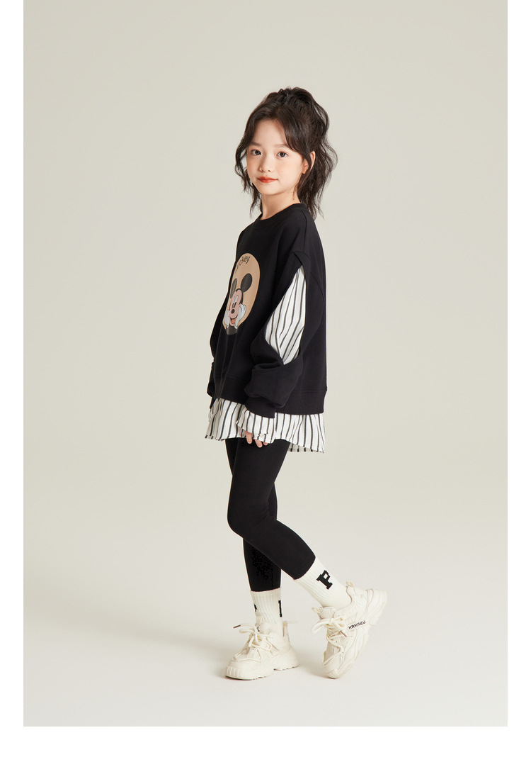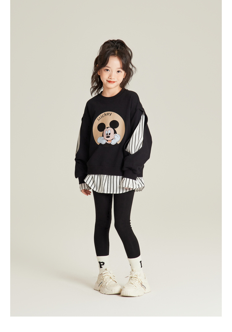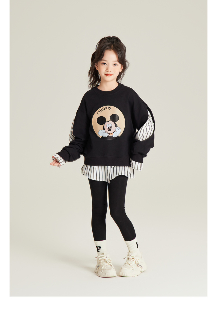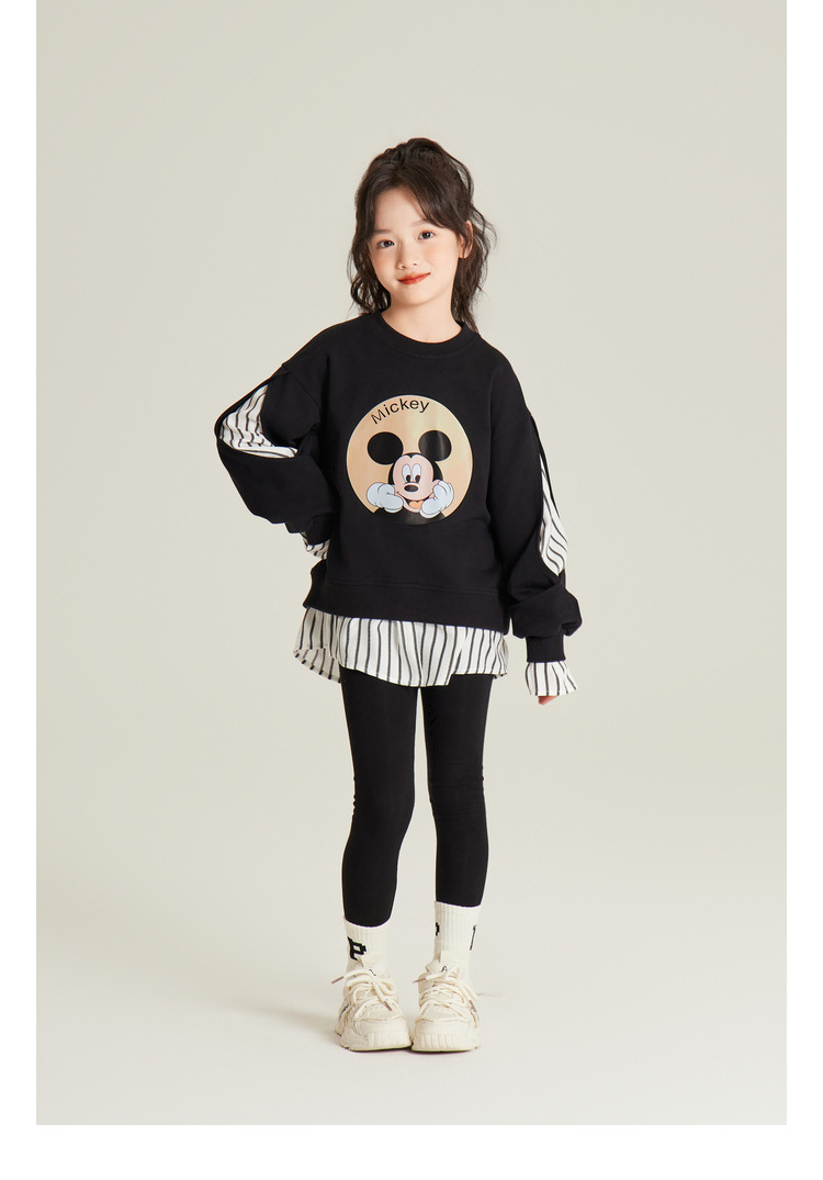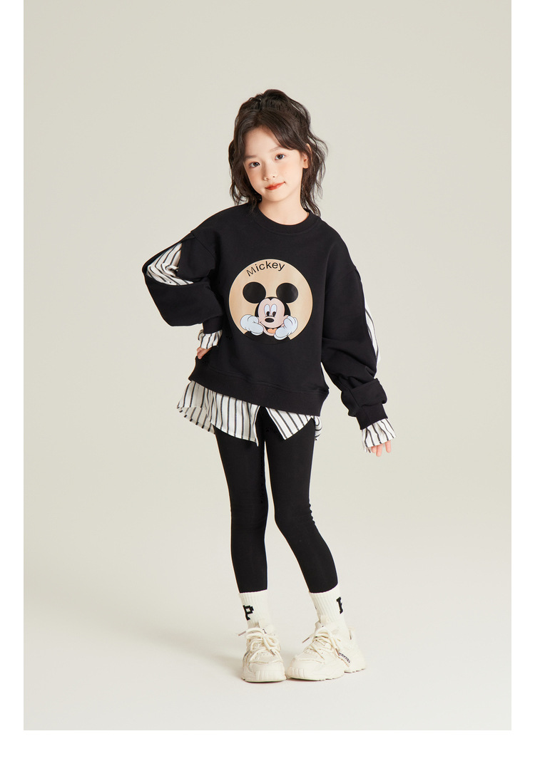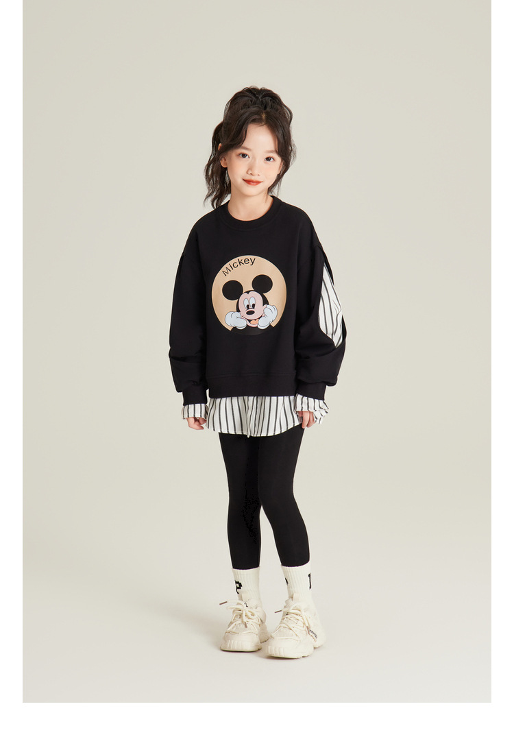 Amybaby Girls Top 가을 2024 새로운 만화 미키 스티칭 줄무늬 셔츠 라운드 넥 풀오버 스웨트 셔츠스토어 가기