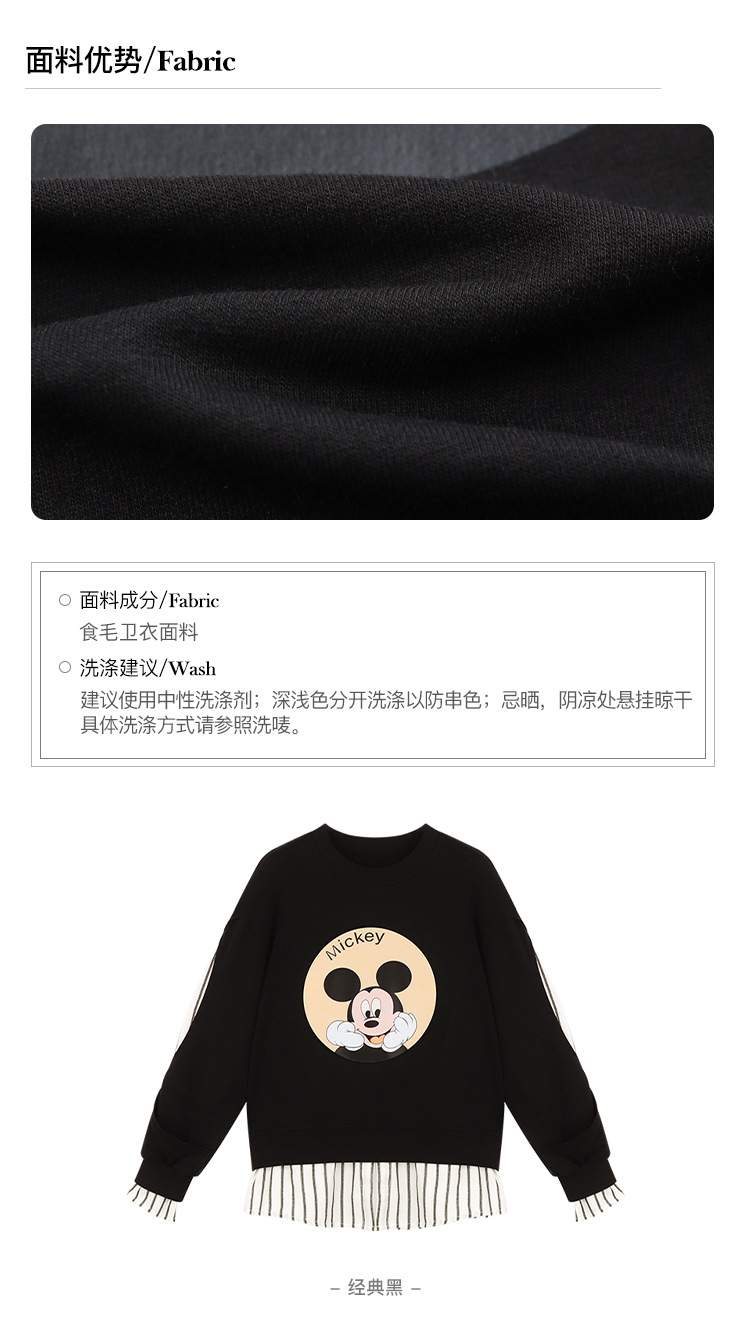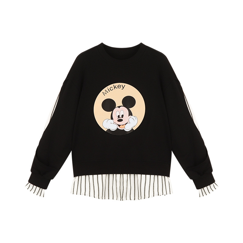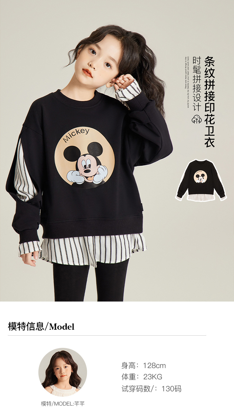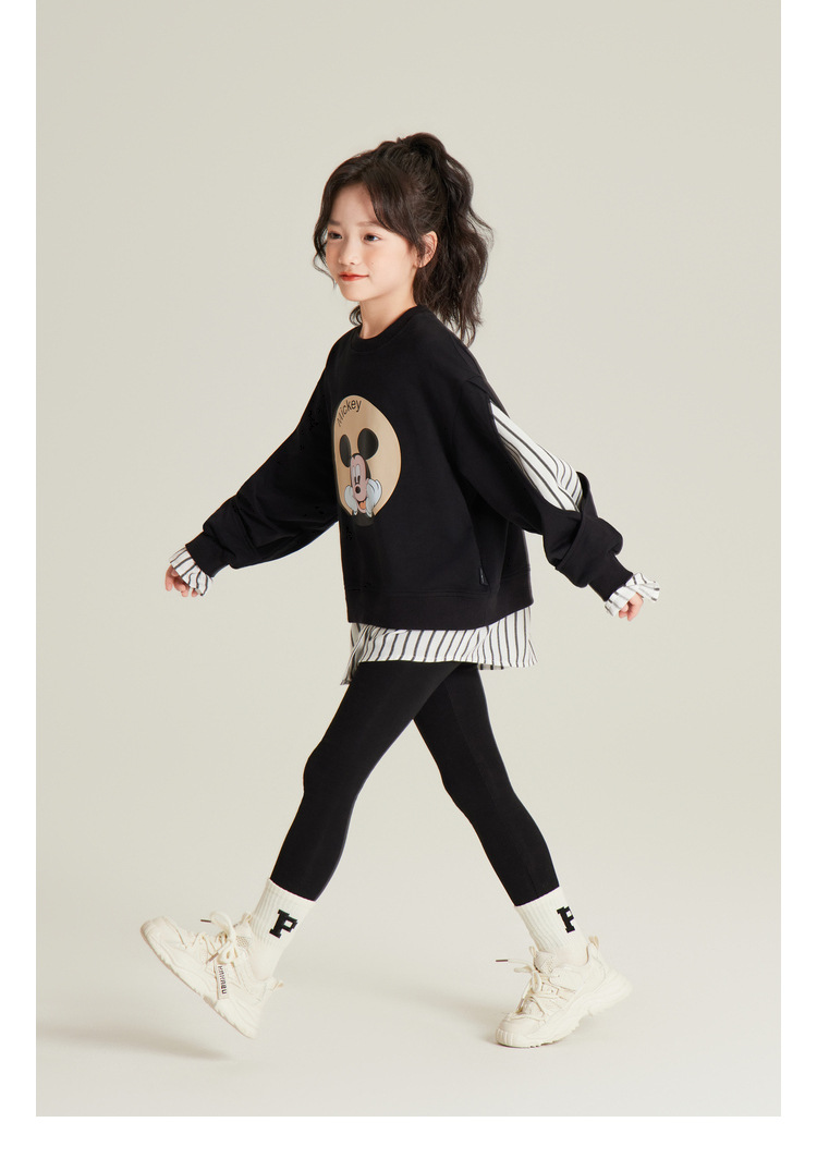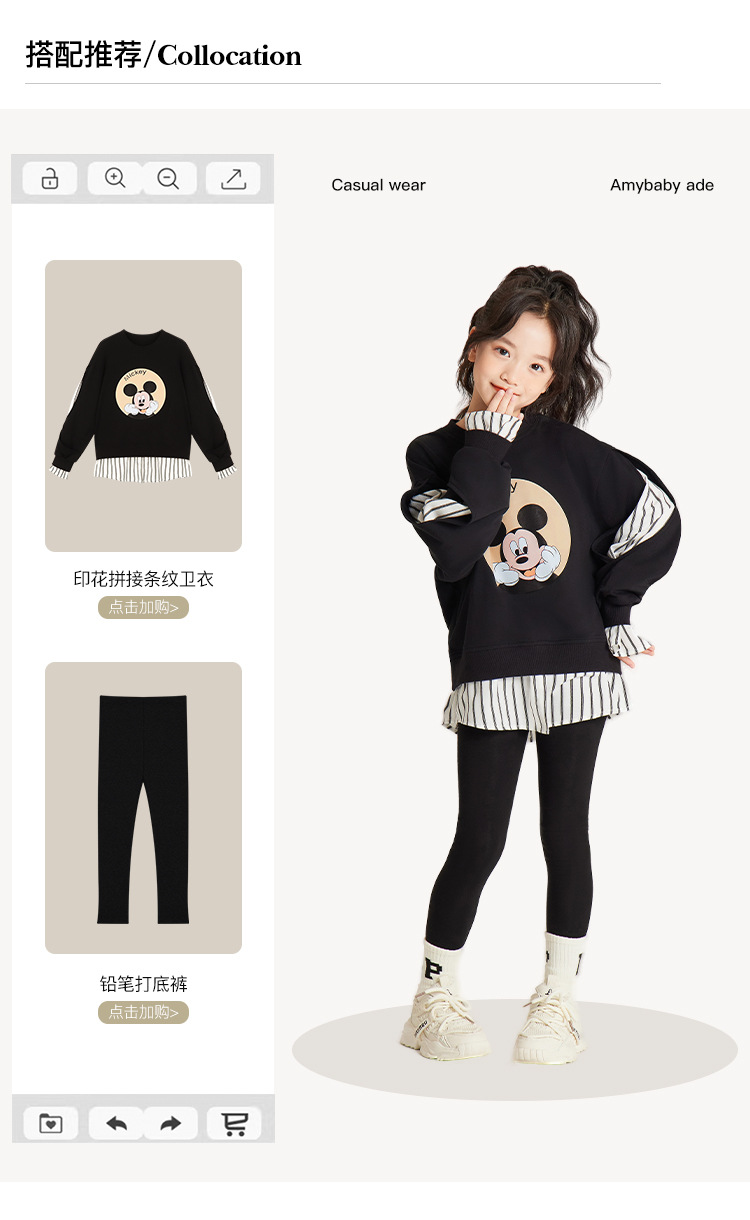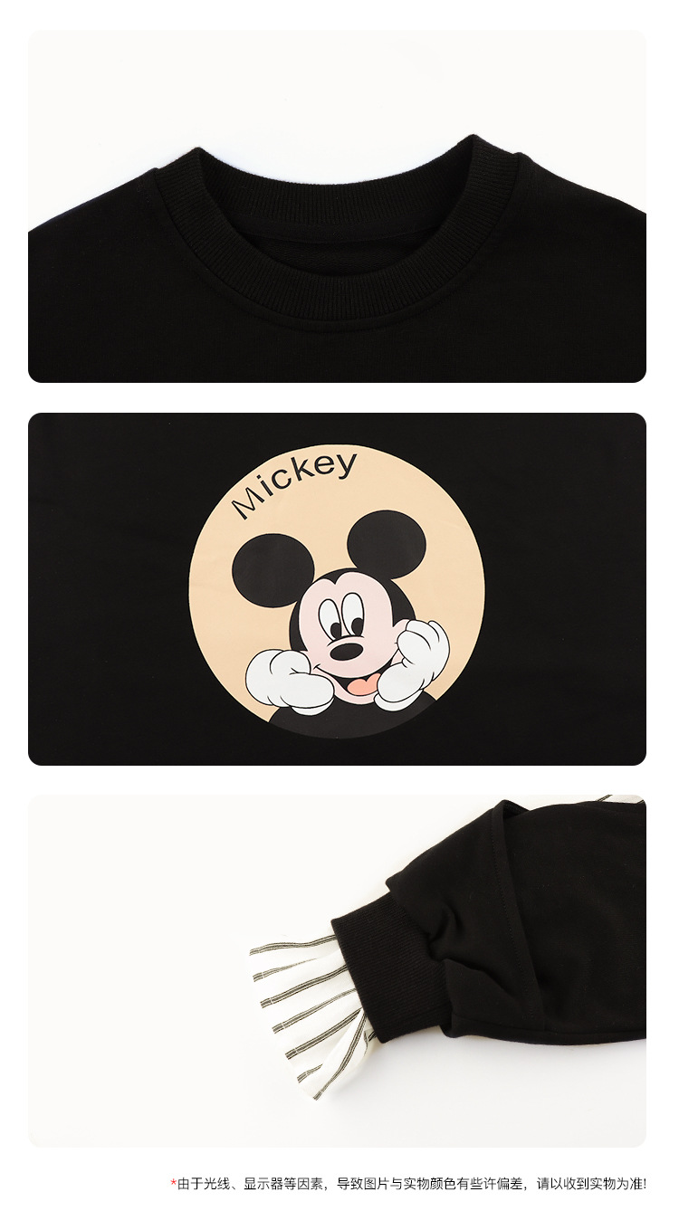 Amybaby Girls Top 가을 2024 새로운 만화 미키 스티칭 줄무늬 셔츠 라운드 넥 풀오버 스웨트 셔츠스토어 가기