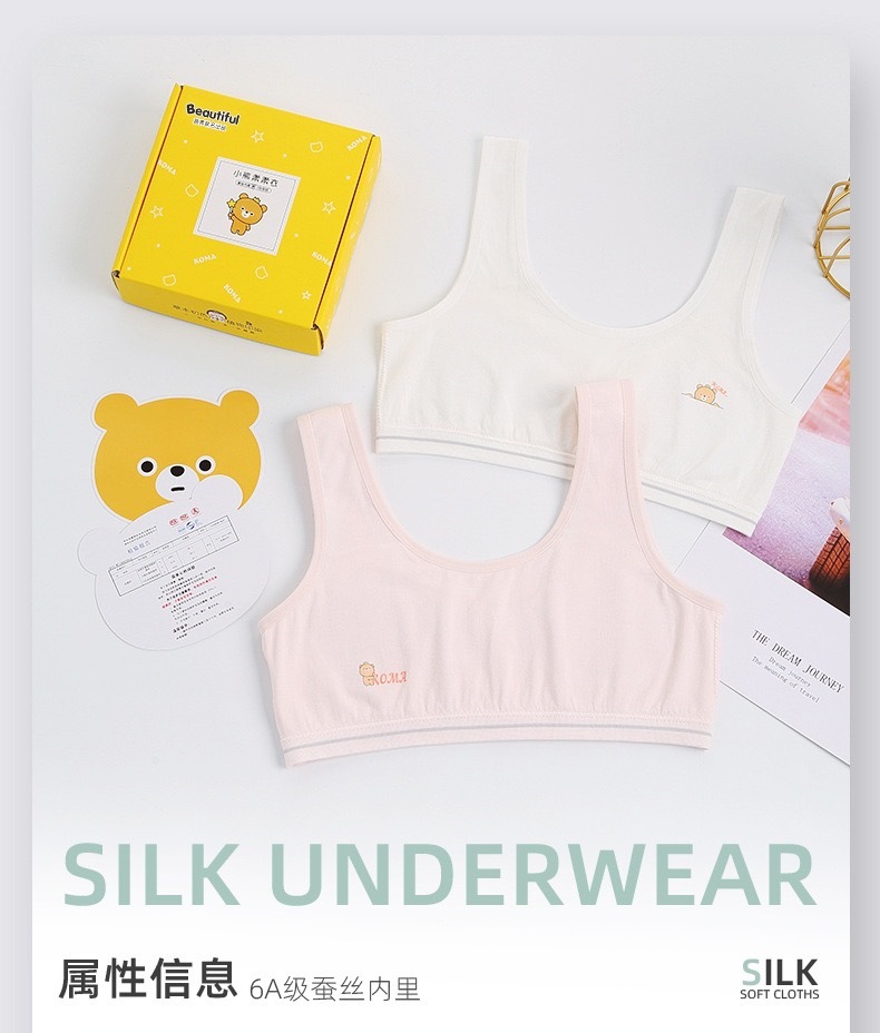 6 학년 곰 부드러운 옷 실크 속옷 어린이 조끼 안티 범프 소녀 스포츠 브라