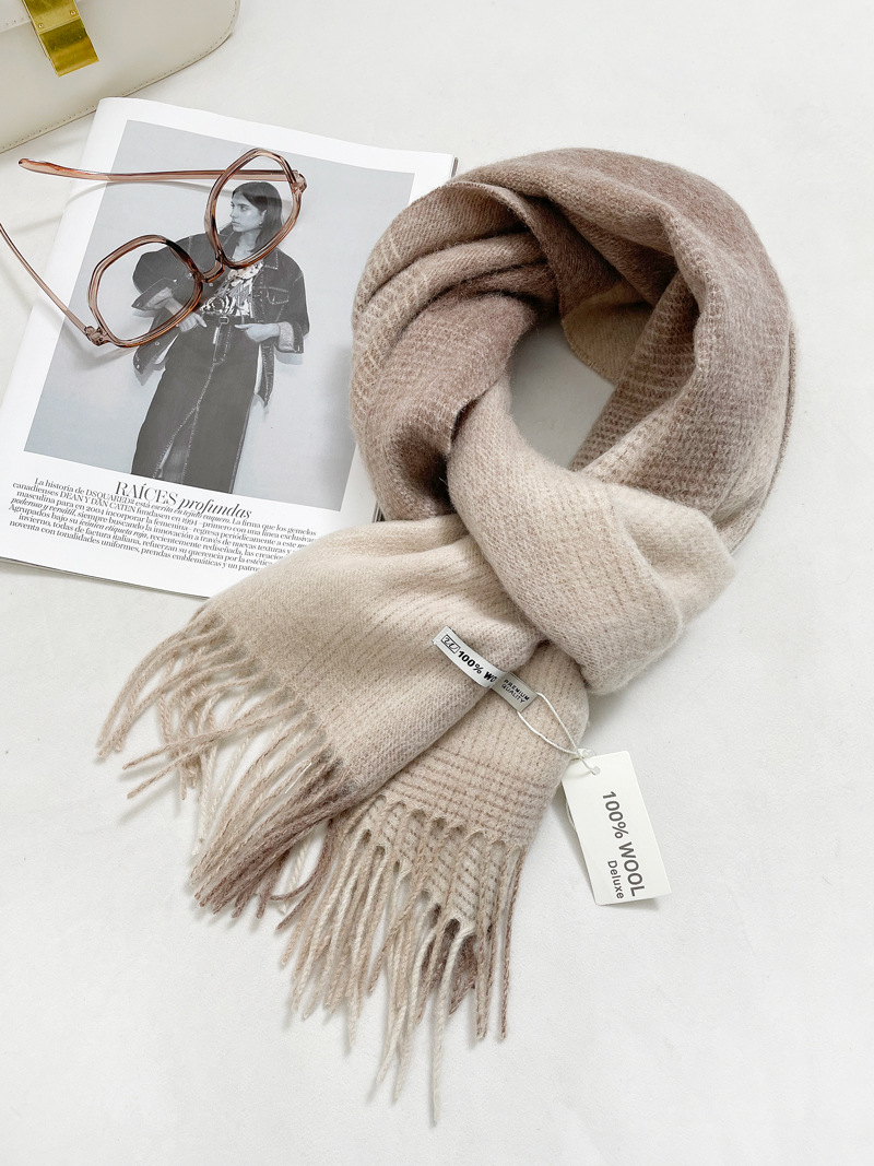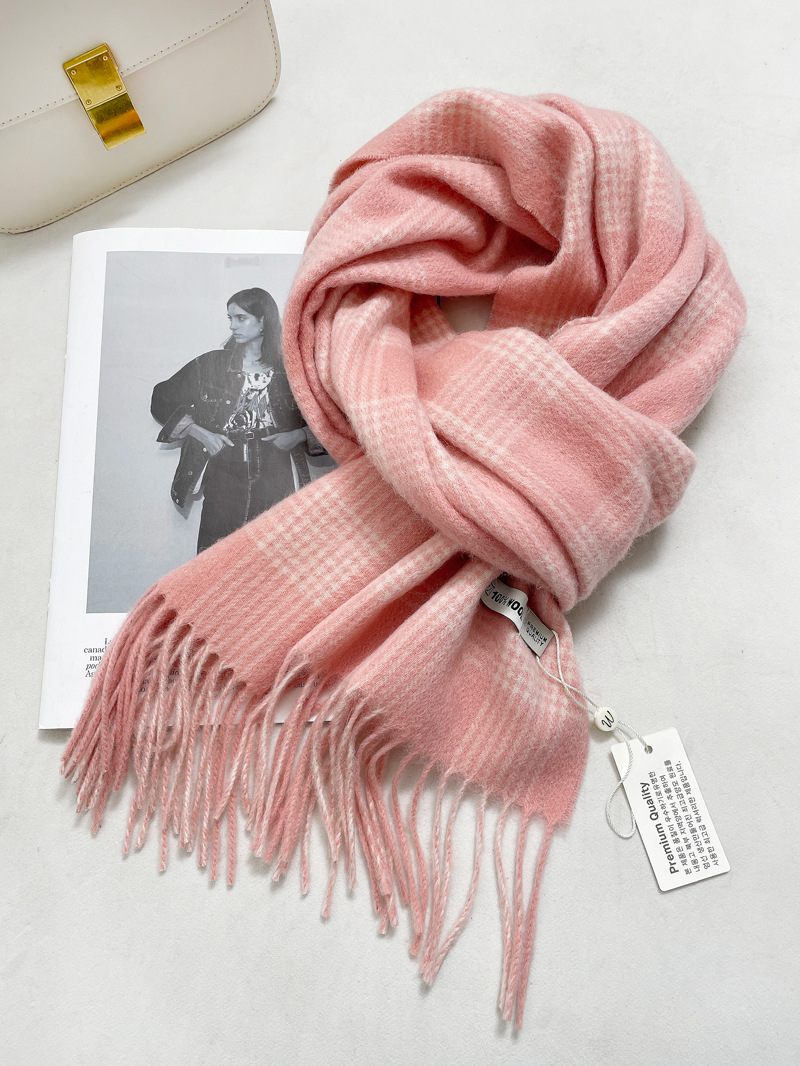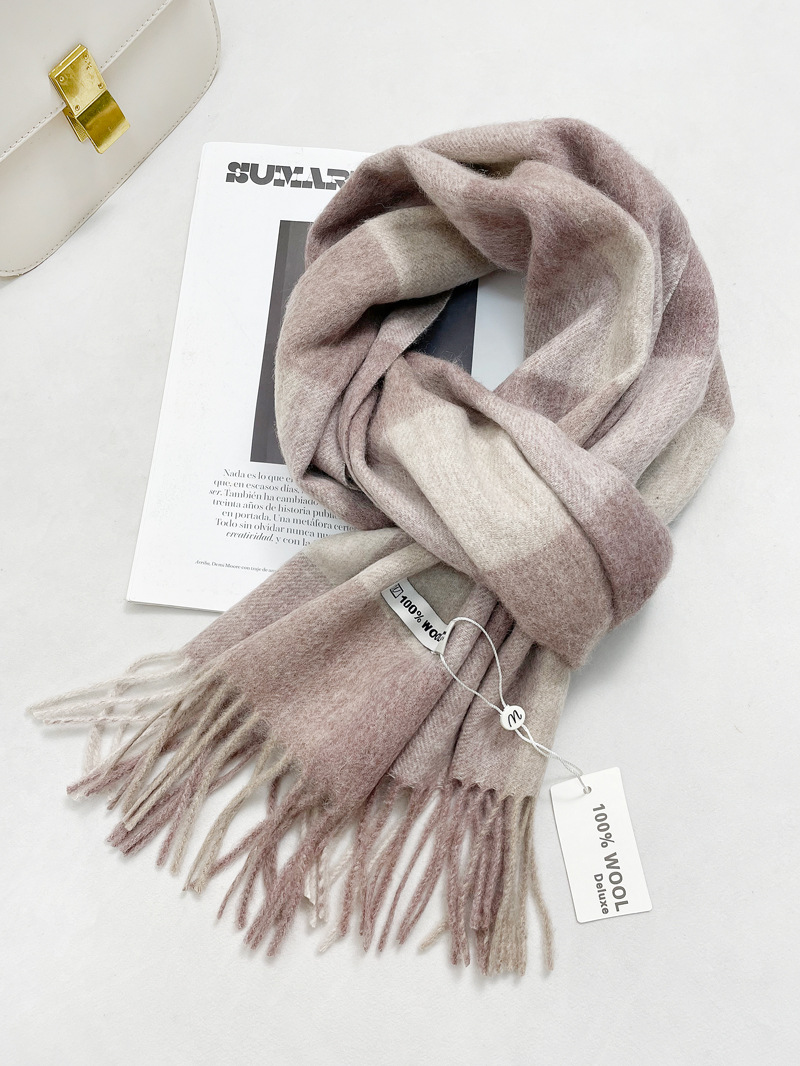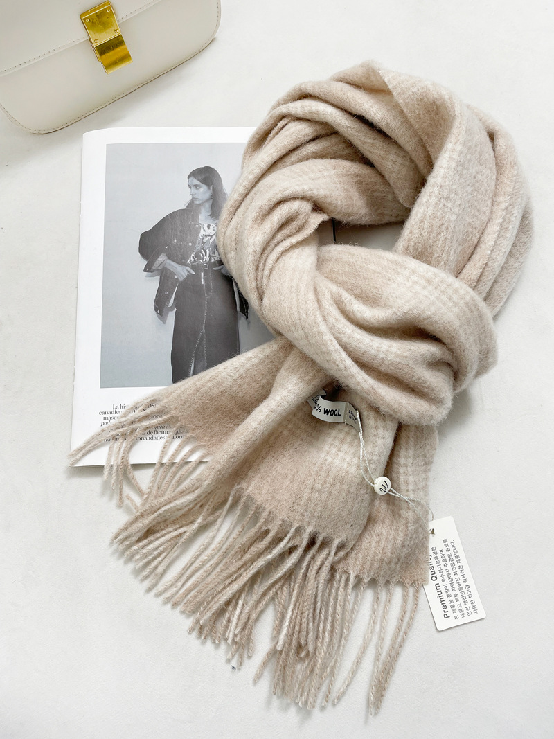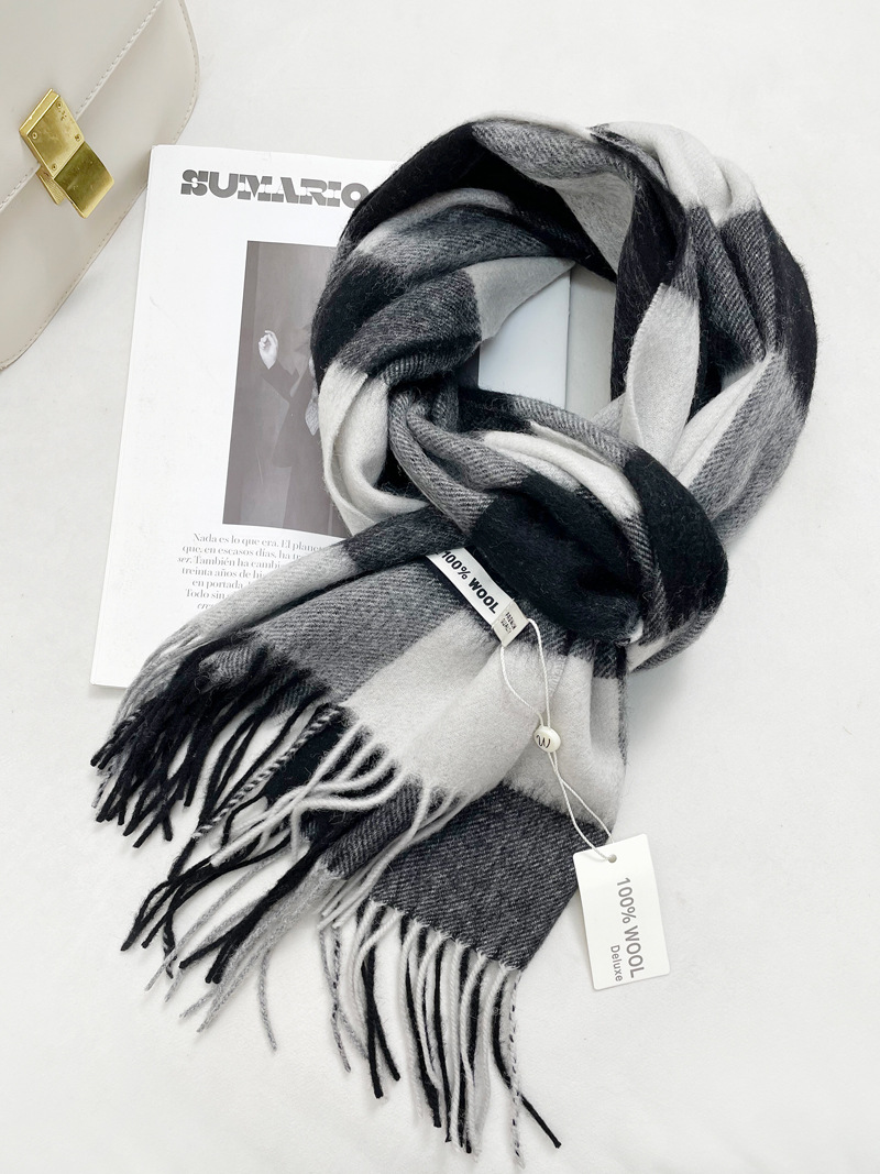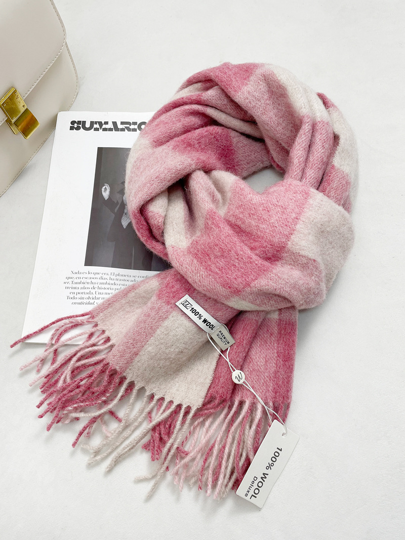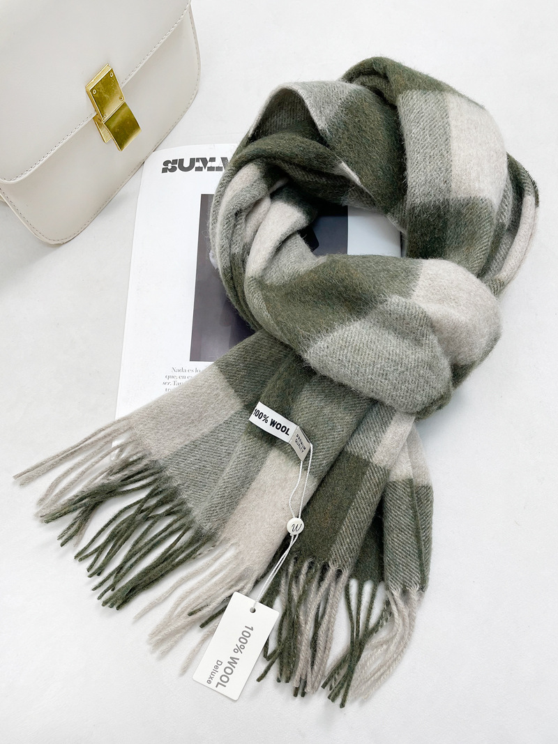 호주 양모 스카프 겨울 크림 달콤한 한국 격자 무늬 목도리 분위기 따뜻한 두꺼운 목 학생 여성