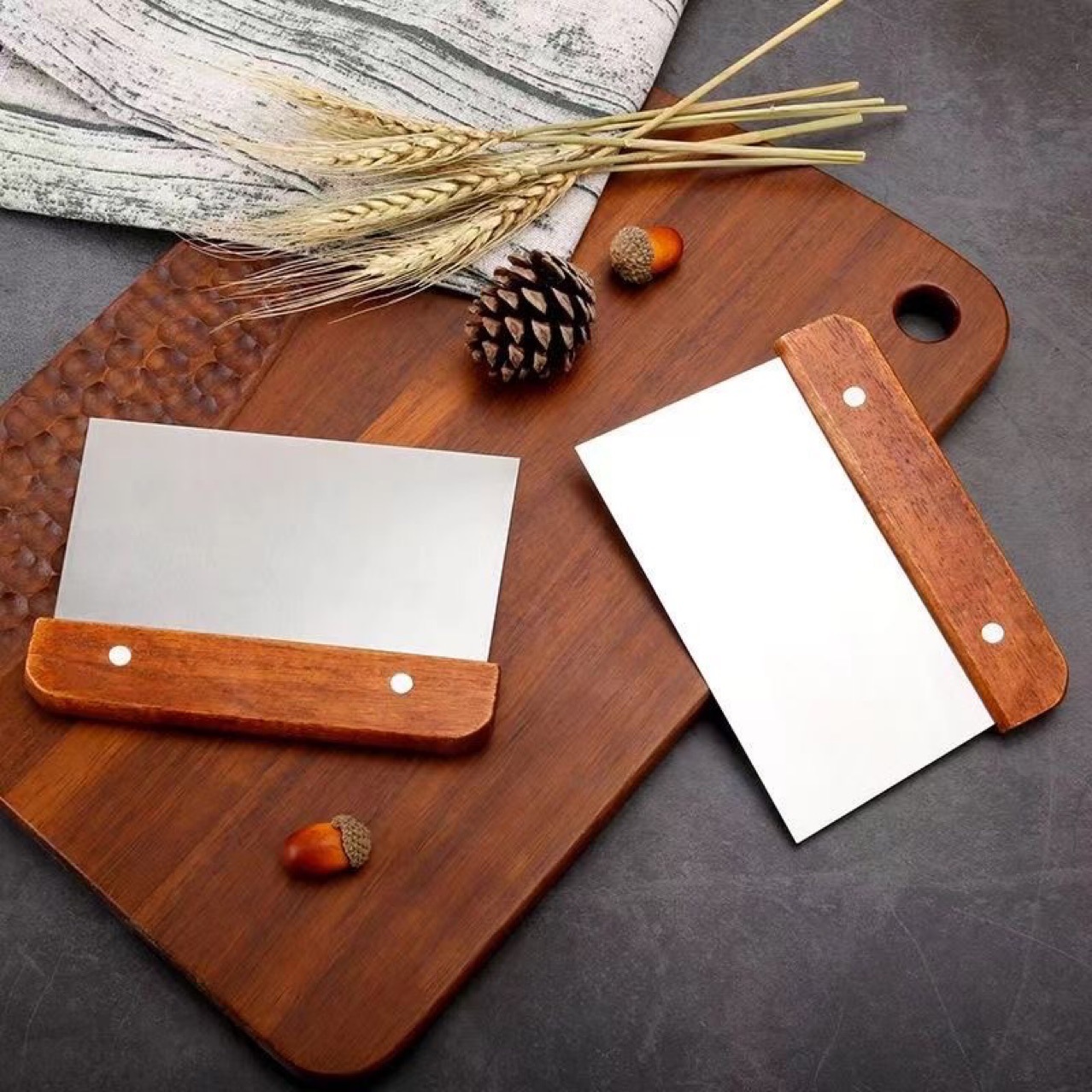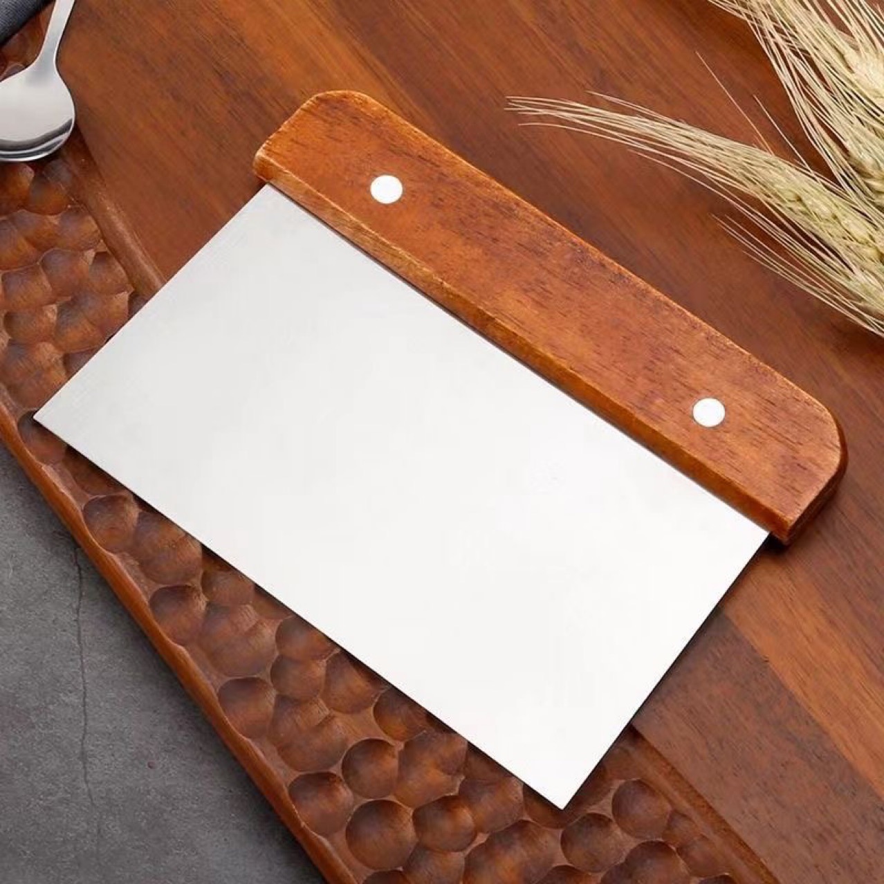 두꺼운 스테인레스 스틸 국수 커터 찐 빵 쌀 롤 긁는 패널 반죽 누가 스크레이퍼 나무 손잡이 스크레이퍼 베이킹 도구