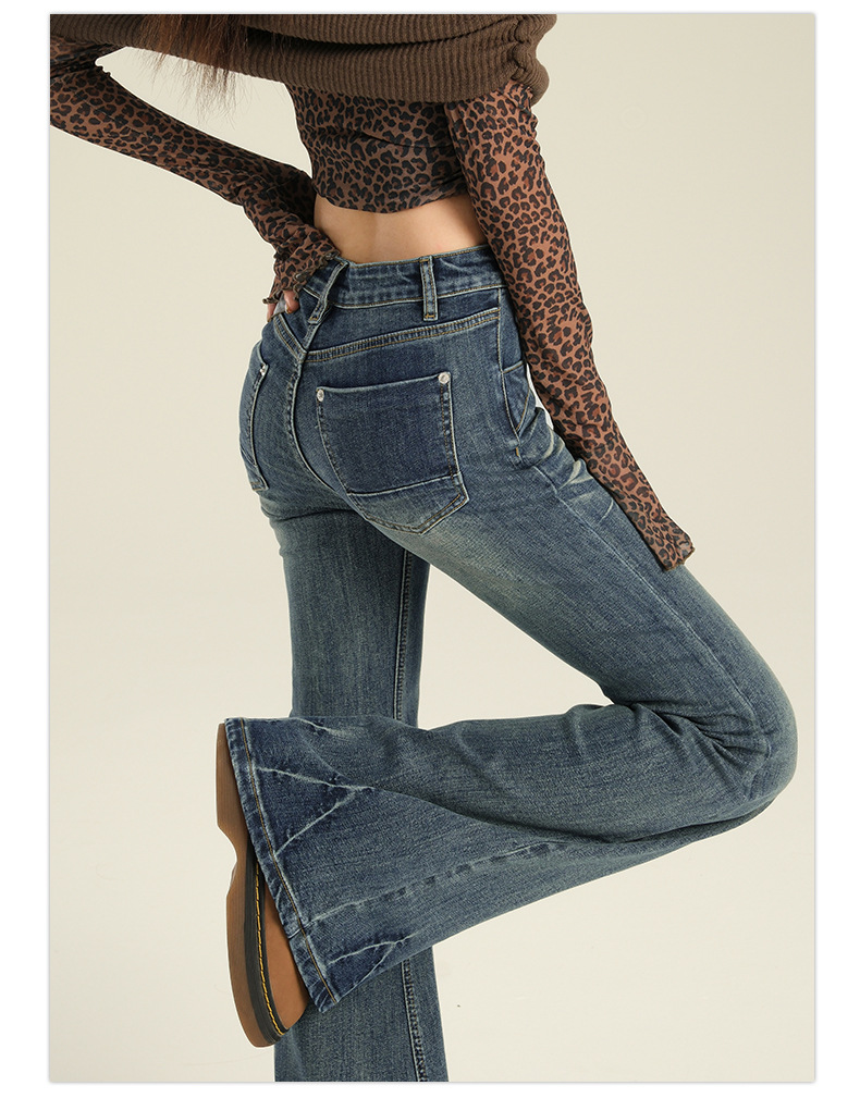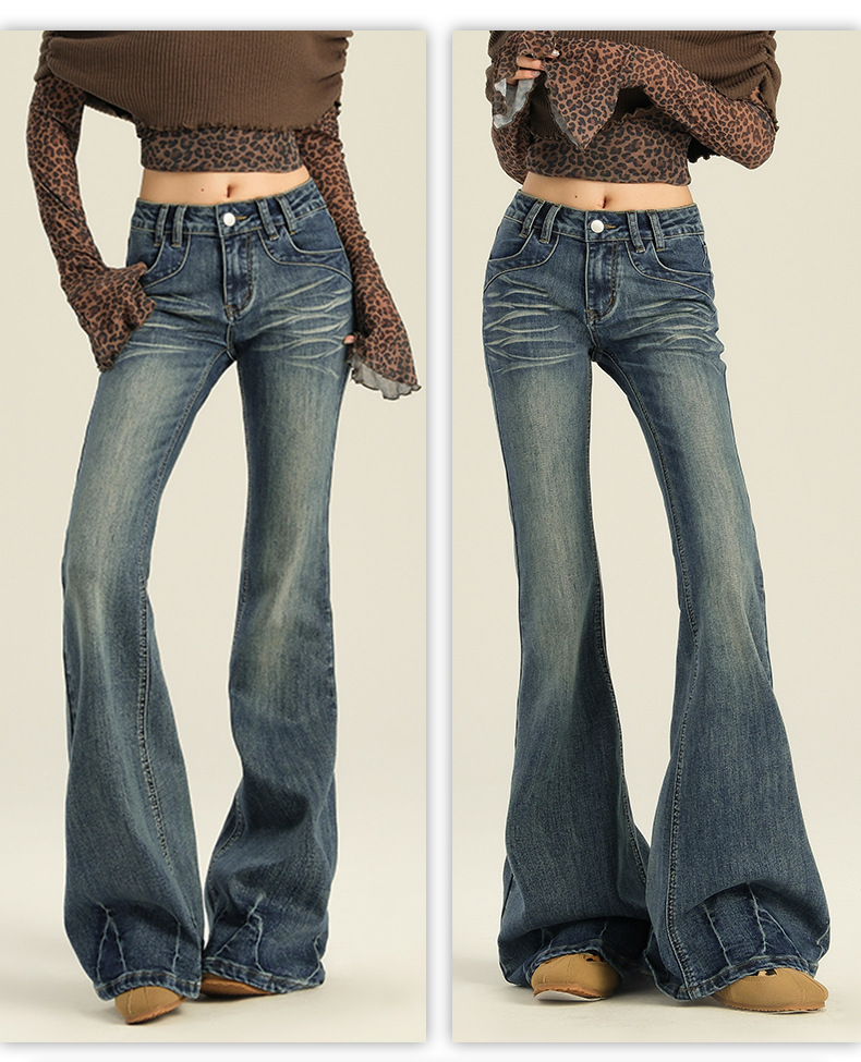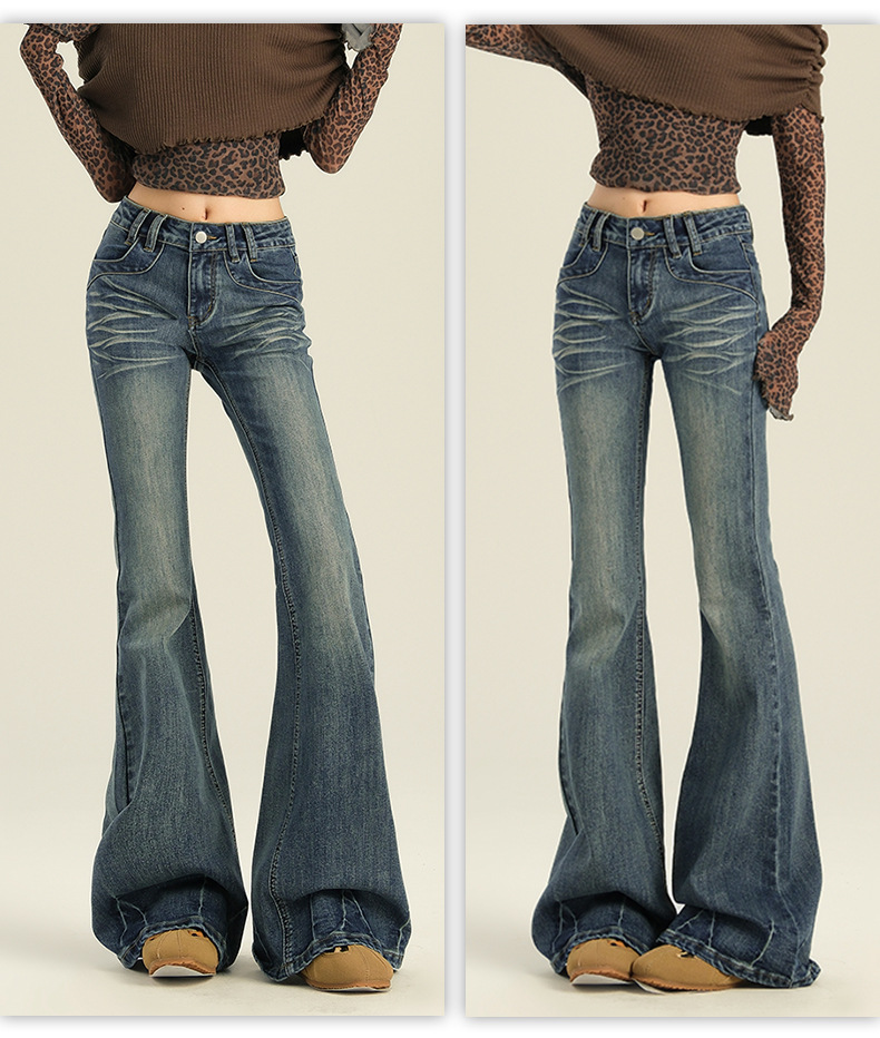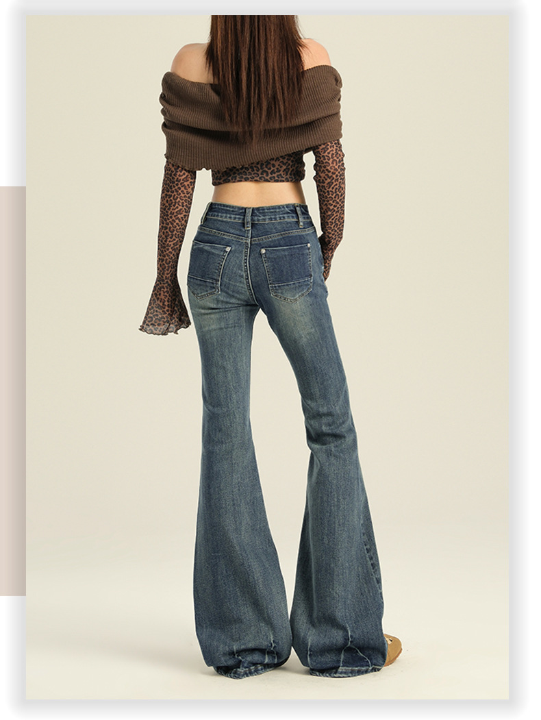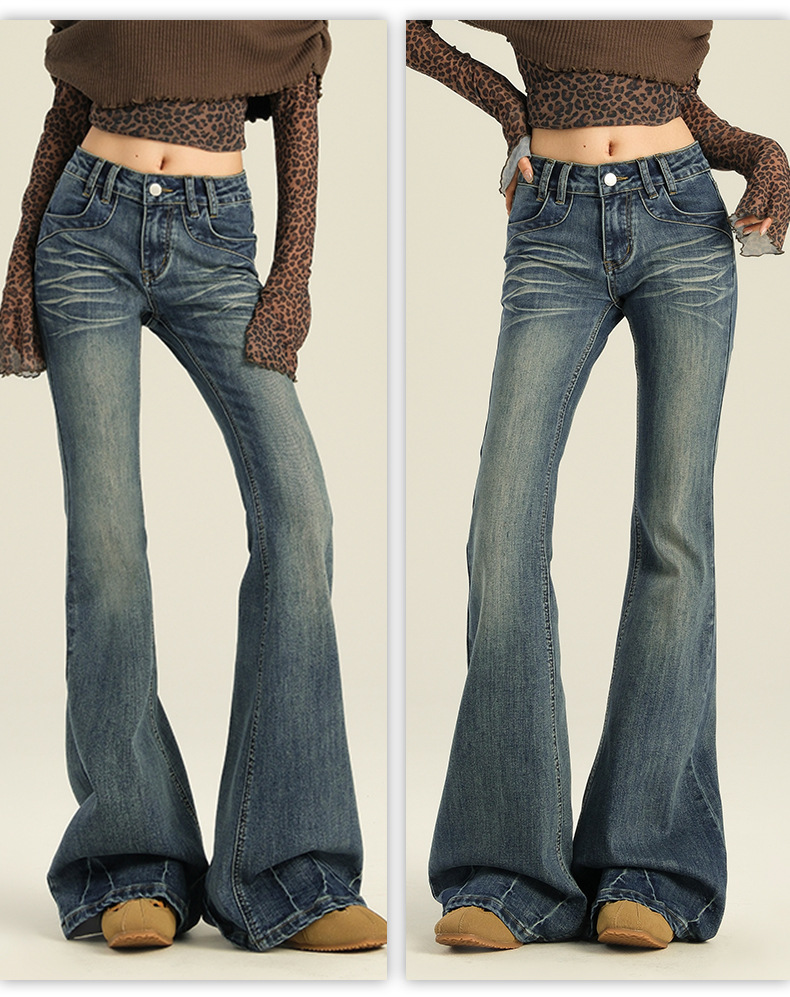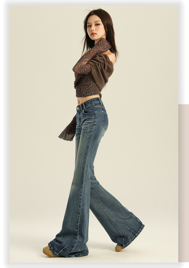 오렌지 실크 여성복 # 미국 레트로 스타일의 여성용 봄 신상 로우 웨이스트 슬림핏 스트레치 청바지스토어 가기