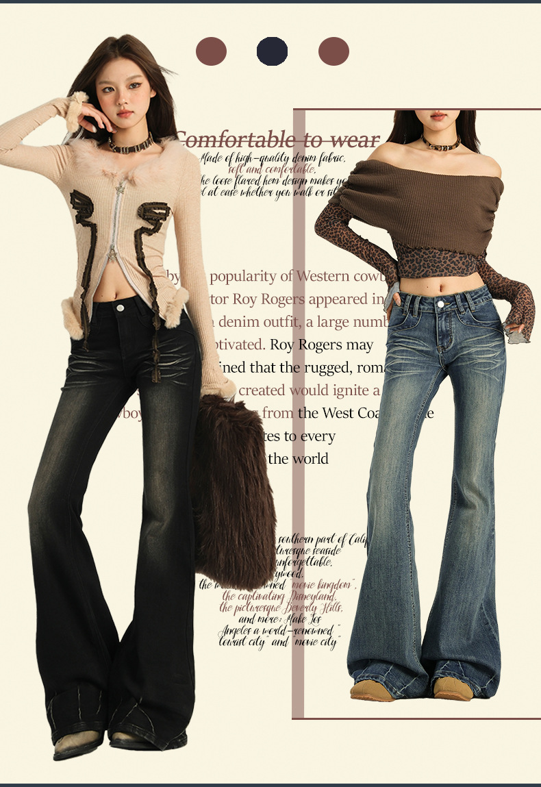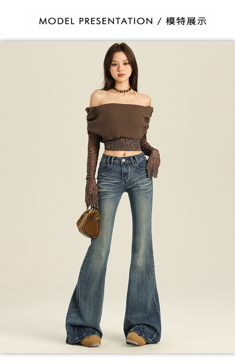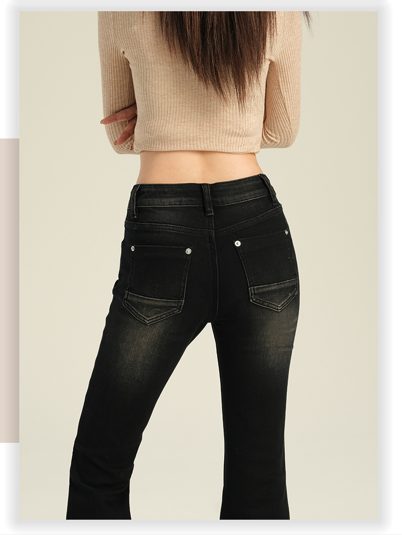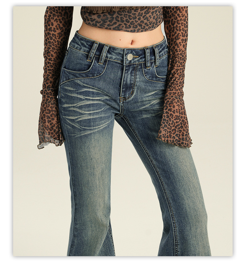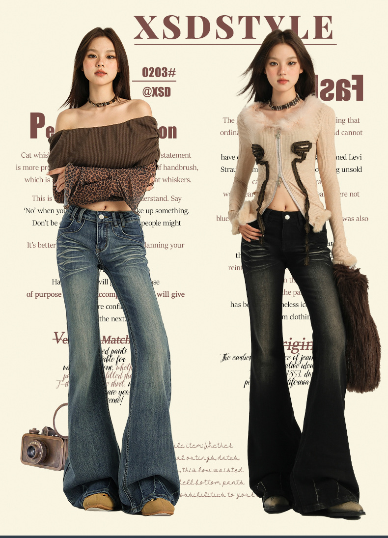 오렌지 실크 여성복 # 미국 레트로 스타일의 여성용 봄 신상 로우 웨이스트 슬림핏 스트레치 청바지스토어 가기
