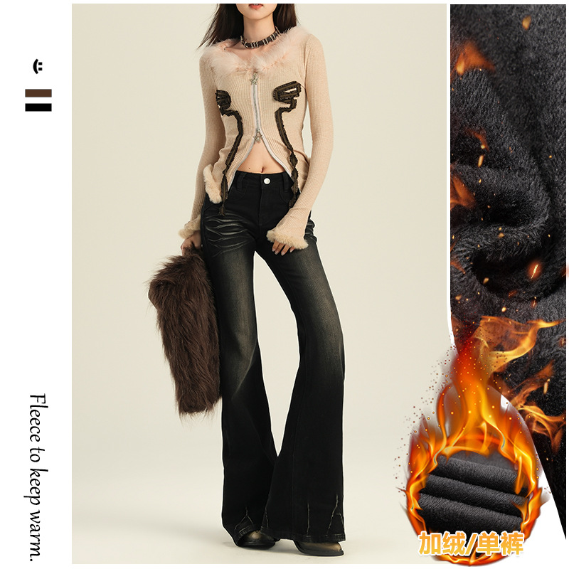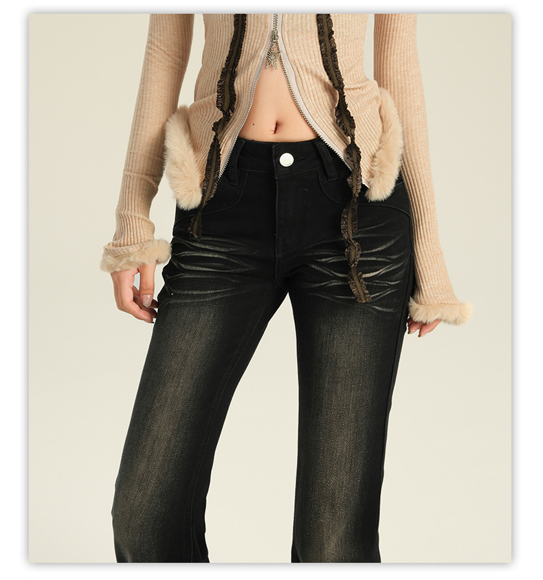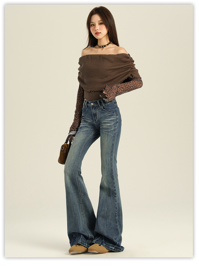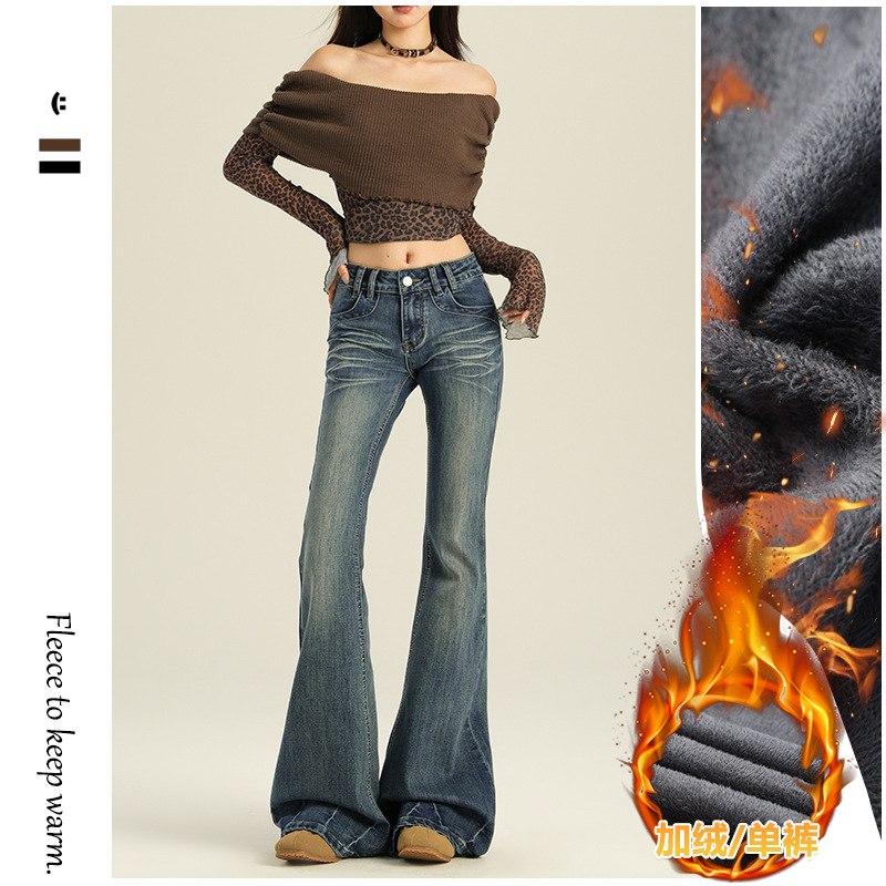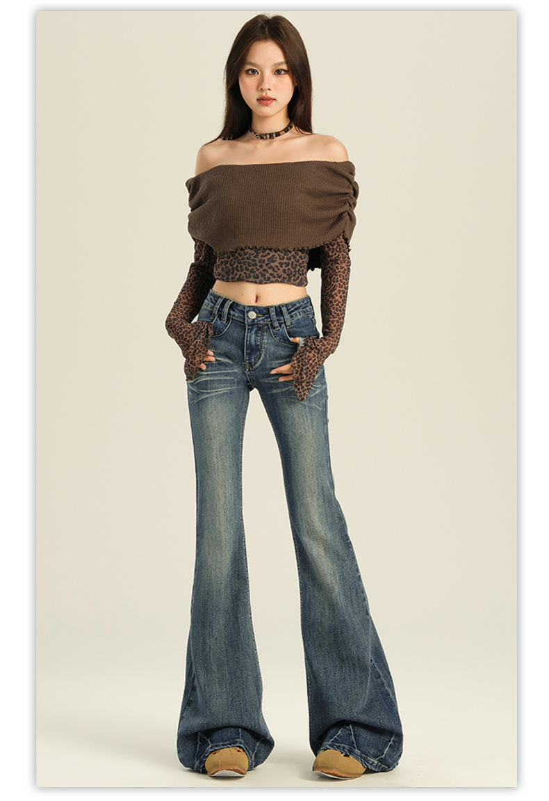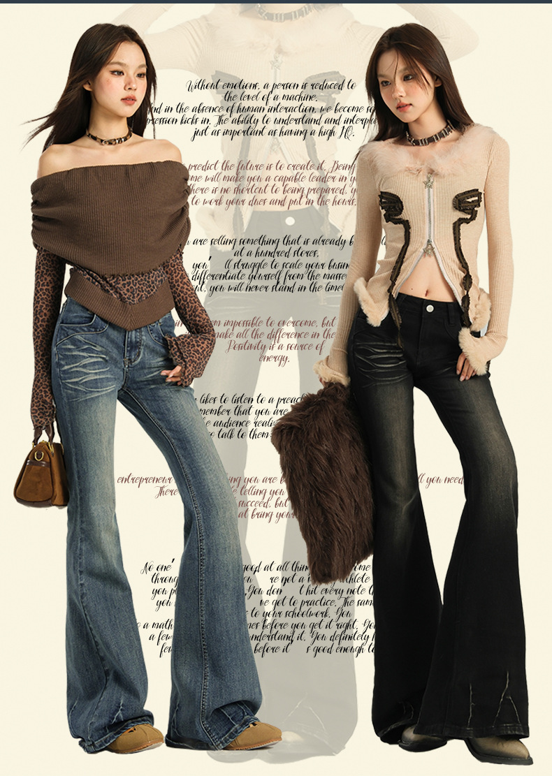 오렌지 실크 여성복 # 미국 레트로 스타일의 여성용 봄 신상 로우 웨이스트 슬림핏 스트레치 청바지스토어 가기