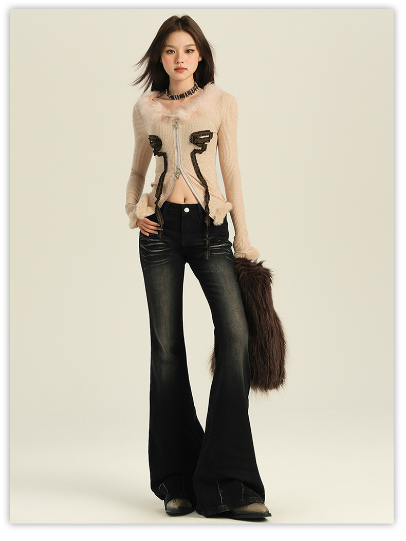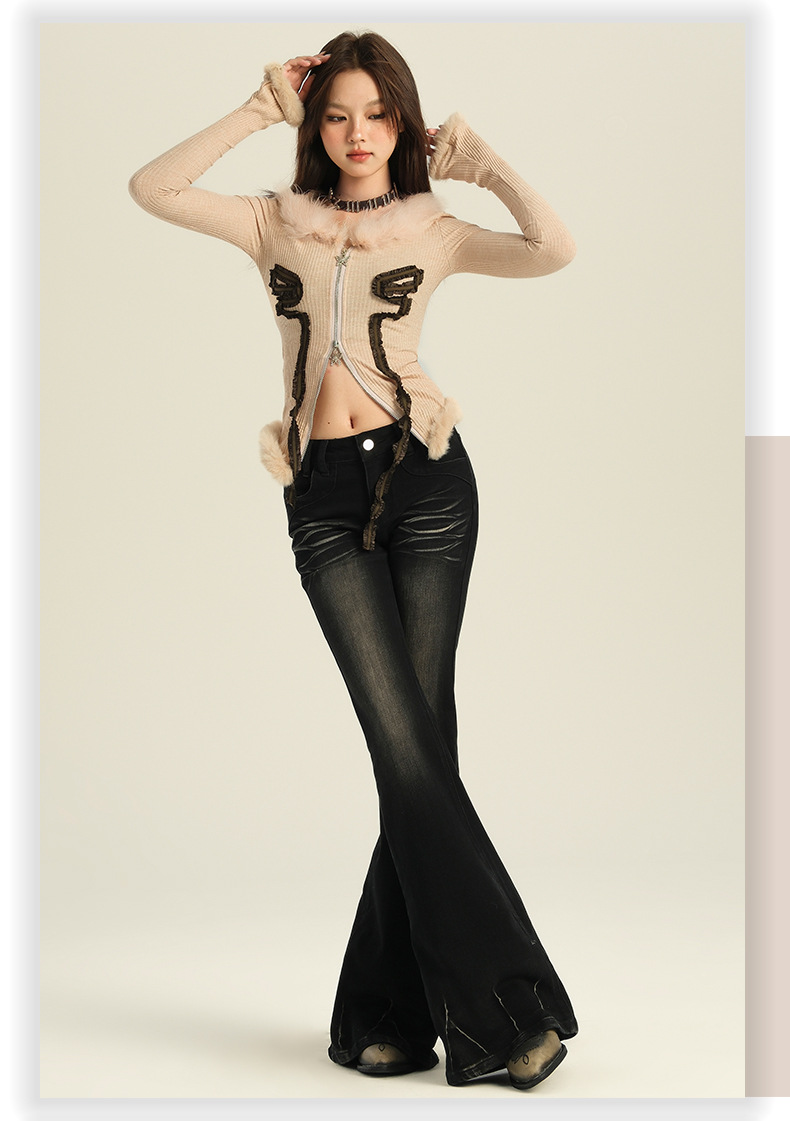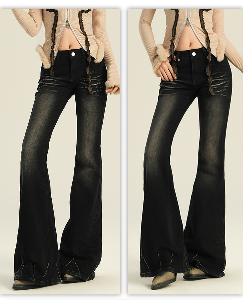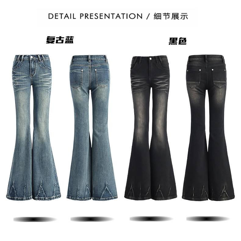 오렌지 실크 여성복 # 미국 레트로 스타일의 여성용 봄 신상 로우 웨이스트 슬림핏 스트레치 청바지