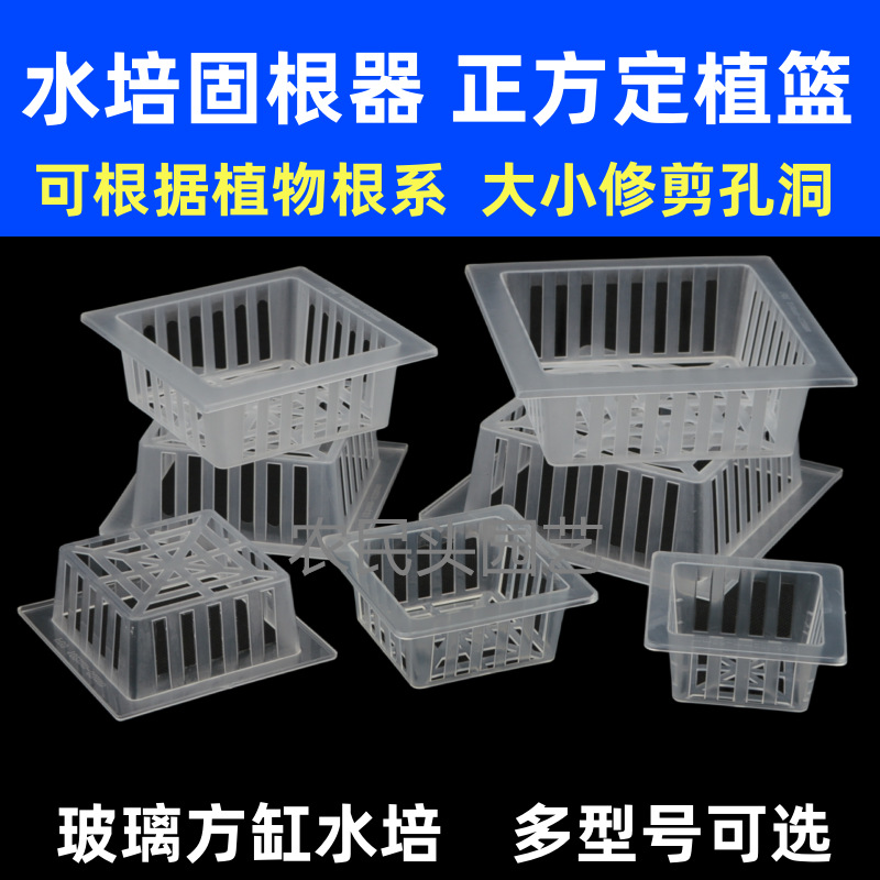 도매 플라스틱 사각형 심기 바구니 유리 사각형 병 뿌리 고정 장치 사각형 실린더 뿌리 원예 냄비 원예 녹색 식물 수경 고정 프레임스토어 가기