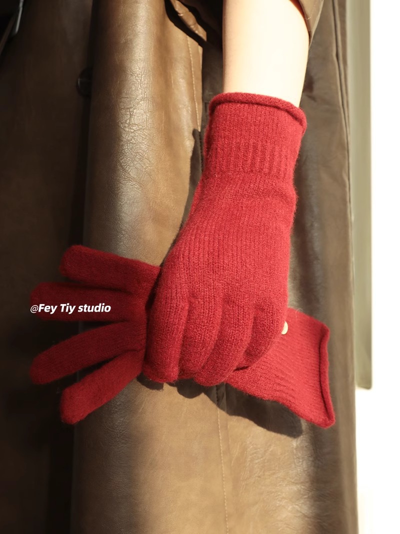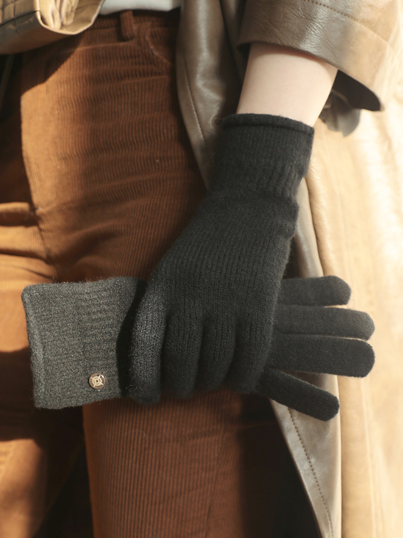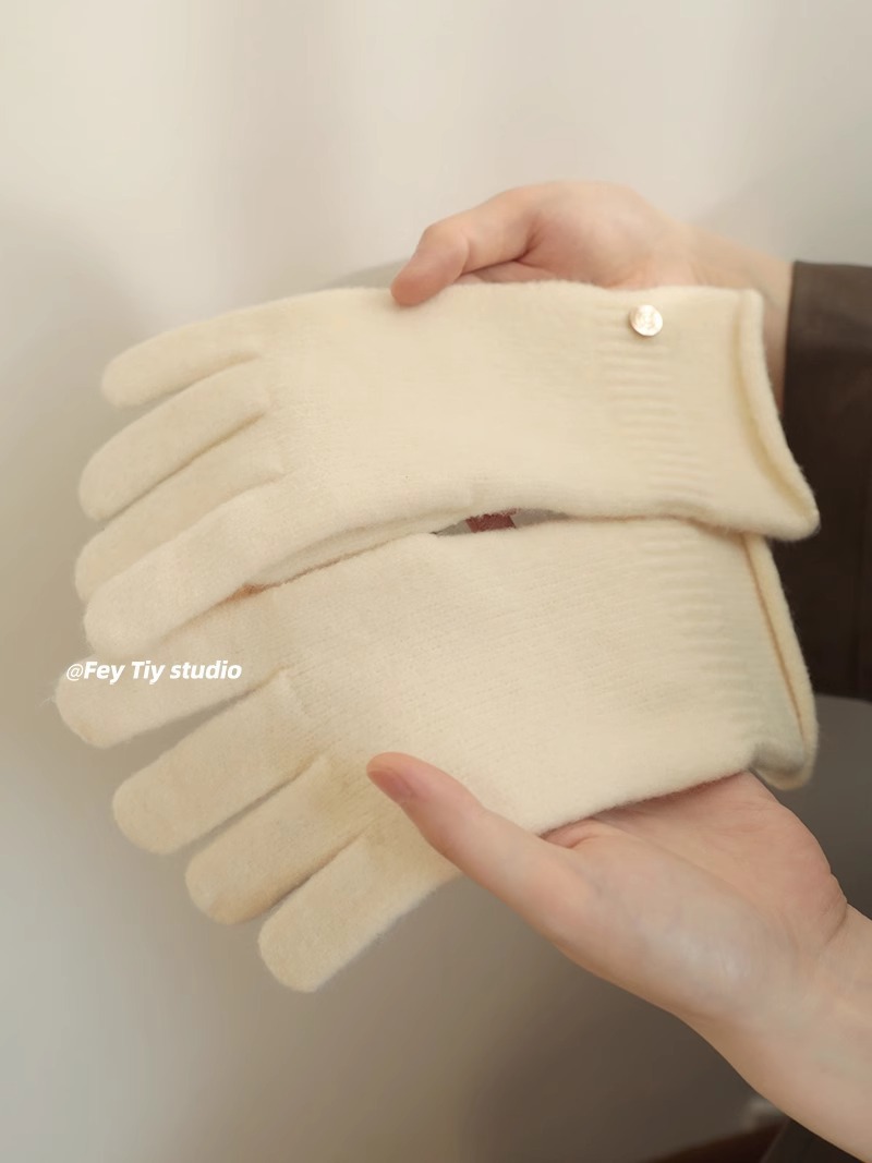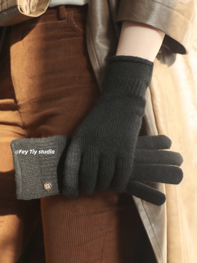 含羊毛软糯无缝一体 高端B囤款针织手套女秋冬季保暖分指可触屏