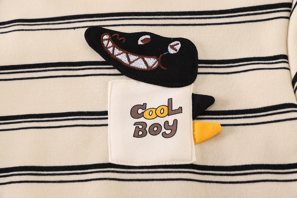 남자 아기 겨울 의류 세트 2024 새로운 캐주얼 소년 겨울 기모 줄무늬 만화 긴 소매 운동복 투피스 세트스토어 가기