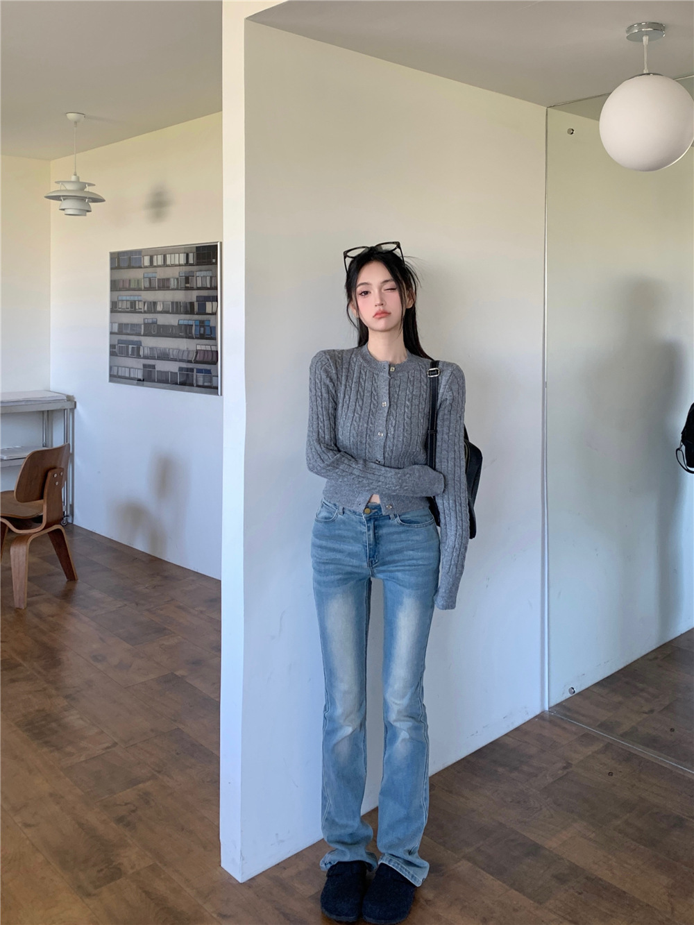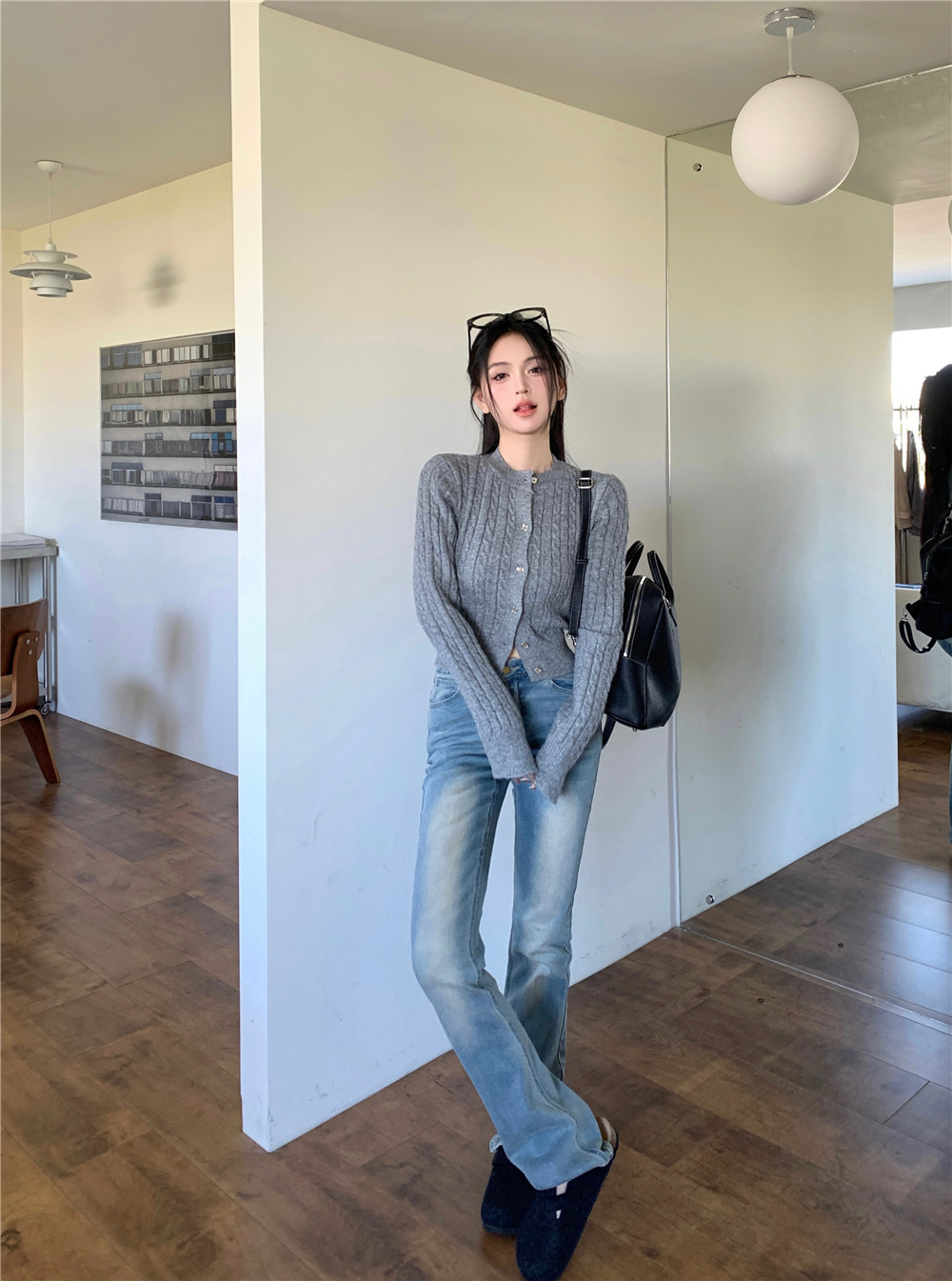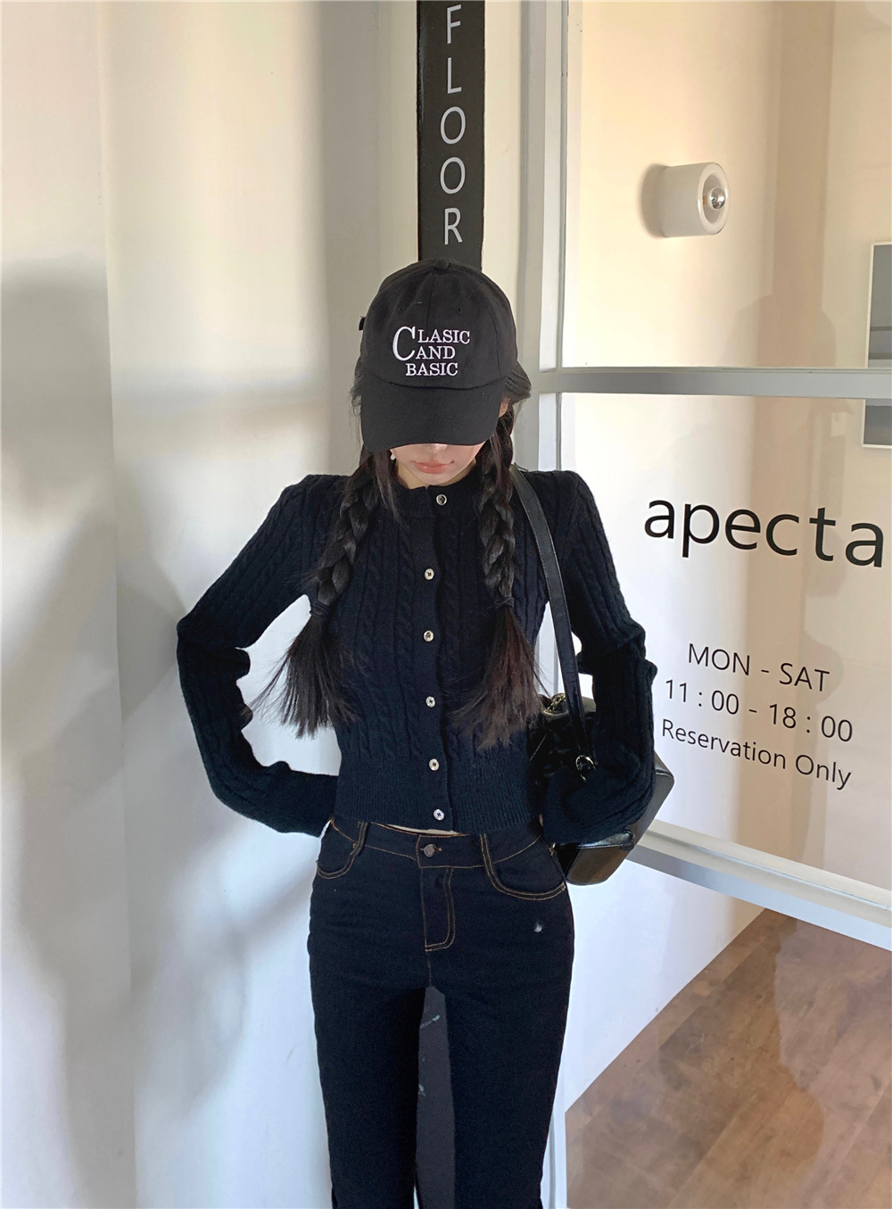 블랙 쇼트 트위스트 니트웨어 여성용 2024 가을 한국 스타일 새로운 슬림 핏 슬리밍 스파이스 소녀 내부 긴 소매 카디건스토어 가기