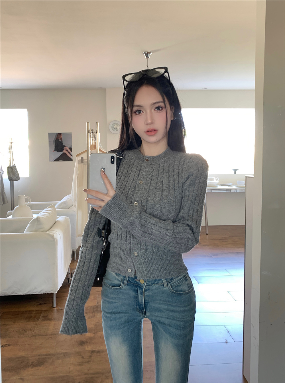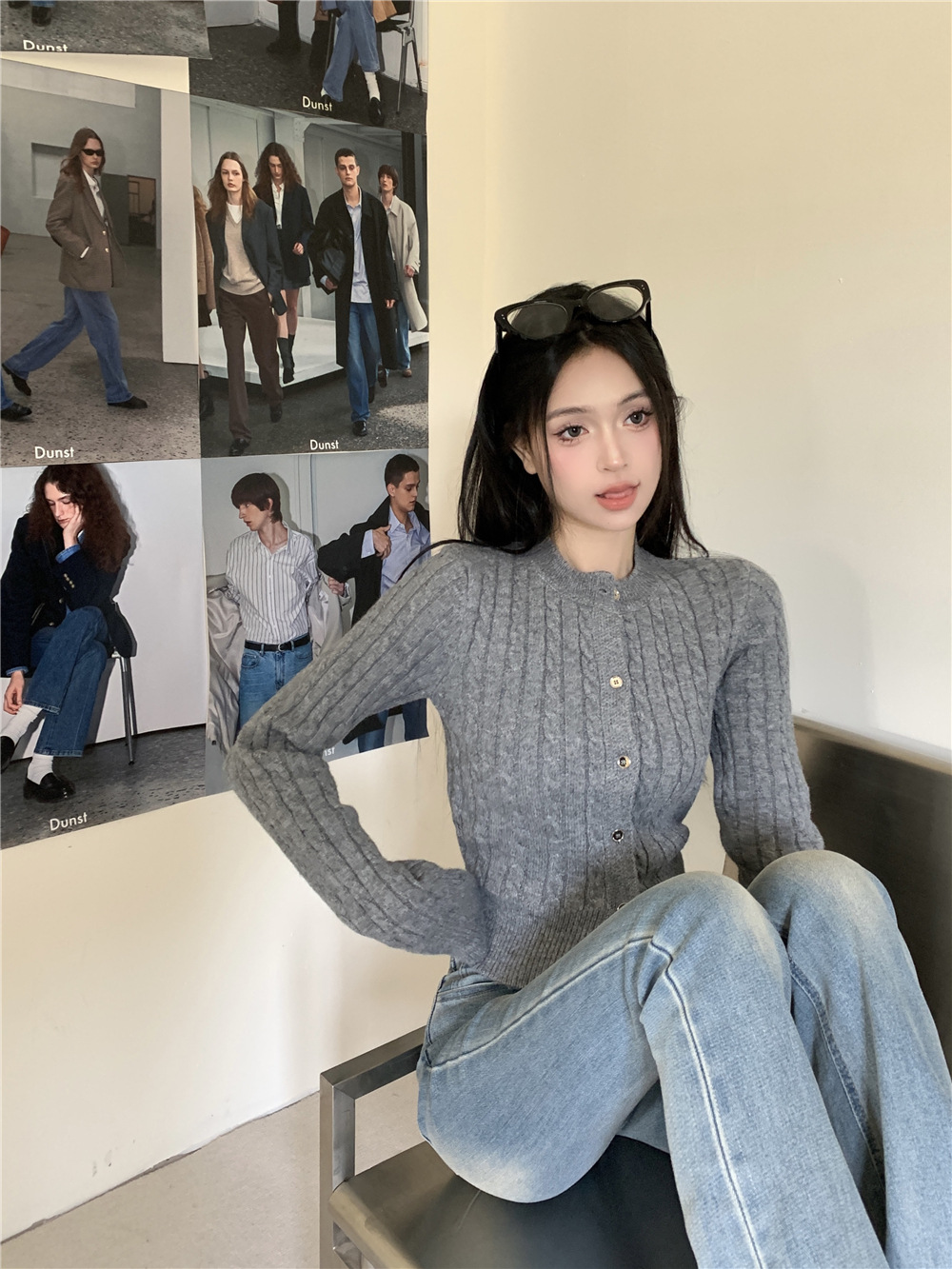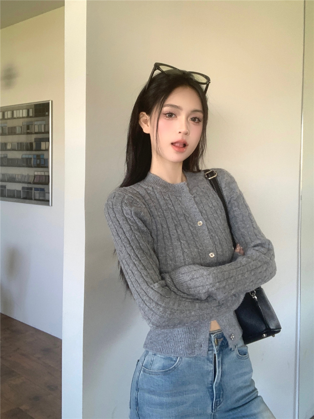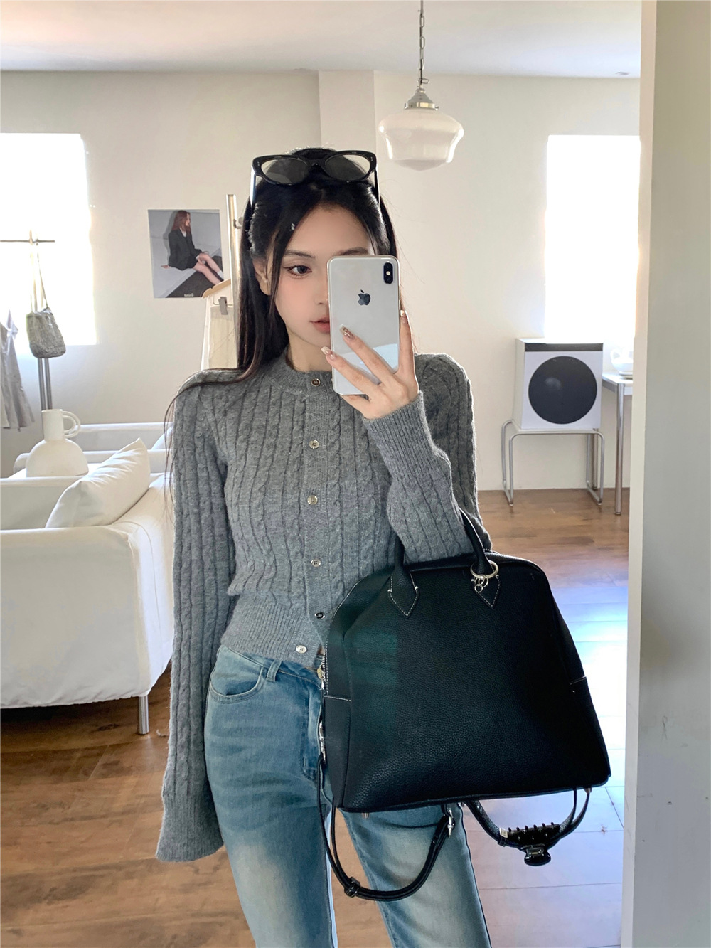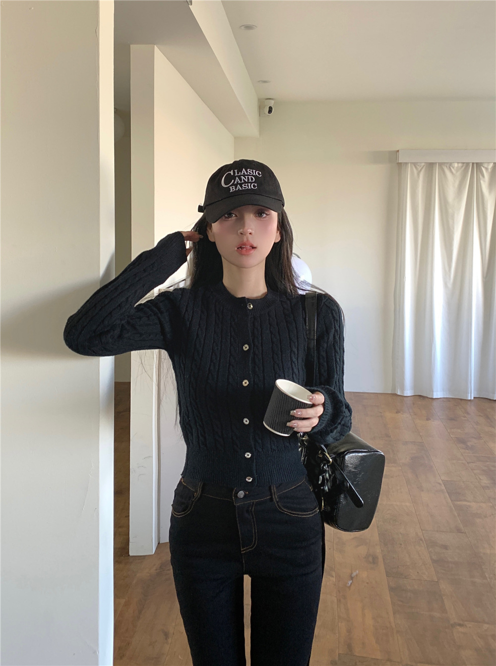 블랙 쇼트 트위스트 니트웨어 여성용 2024 가을 한국 스타일 새로운 슬림 핏 슬리밍 스파이스 소녀 내부 긴 소매 카디건