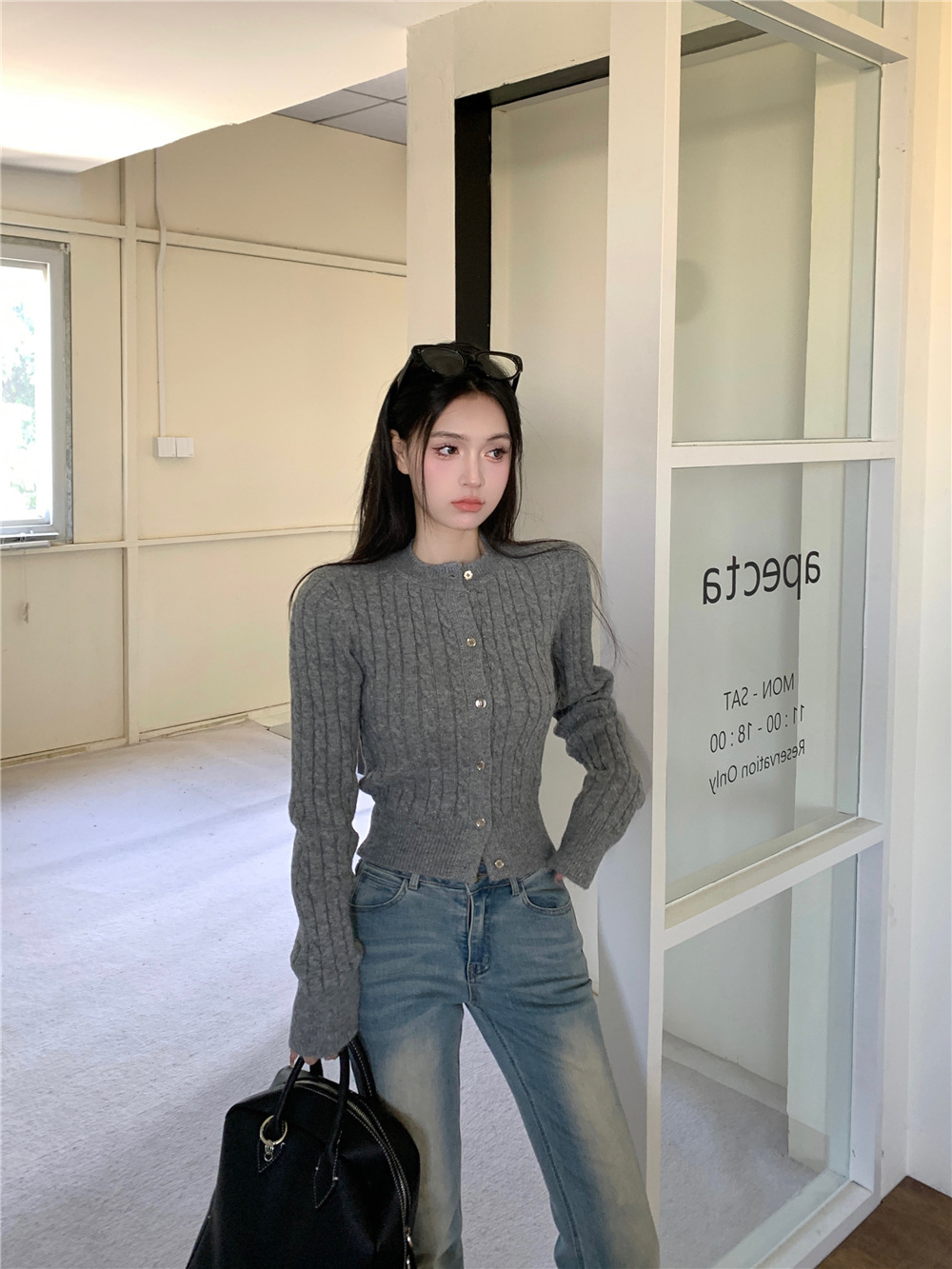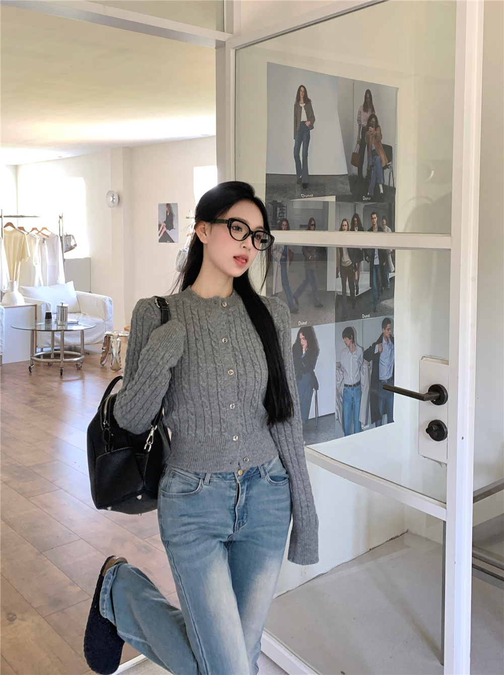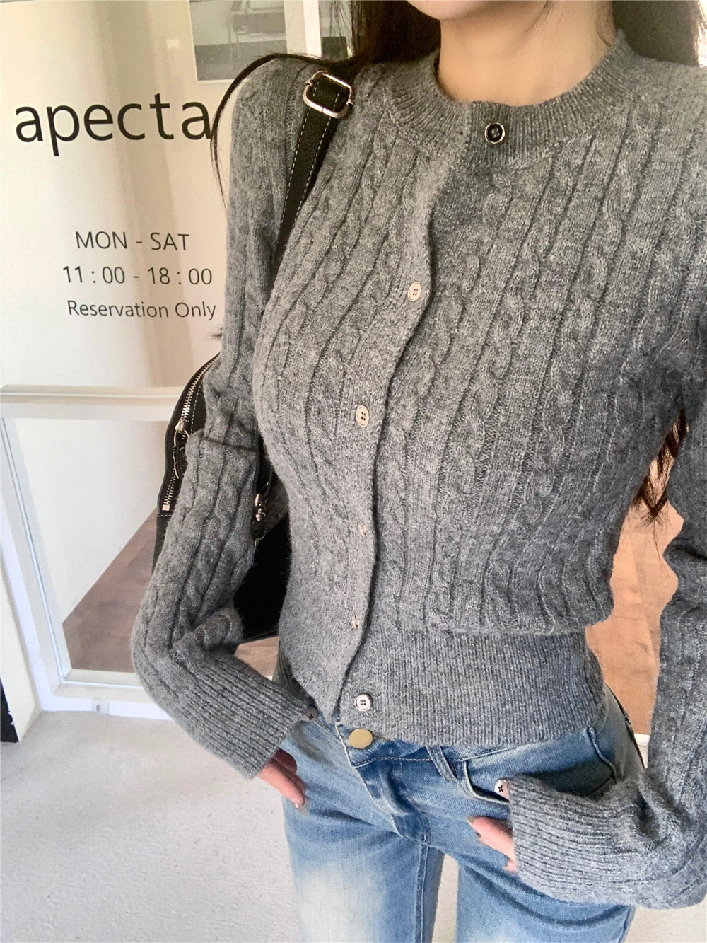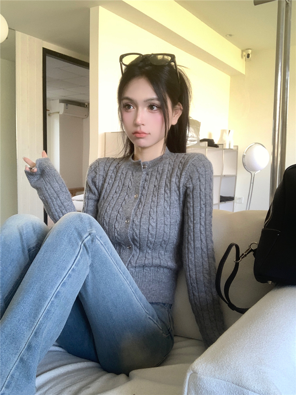 블랙 쇼트 트위스트 니트웨어 여성용 2024 가을 한국 스타일 새로운 슬림 핏 슬리밍 스파이스 소녀 내부 긴 소매 카디건