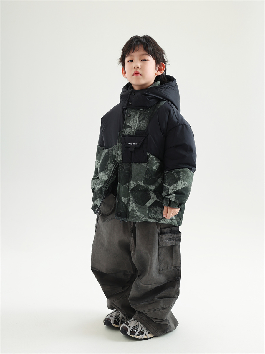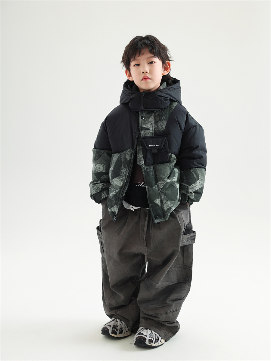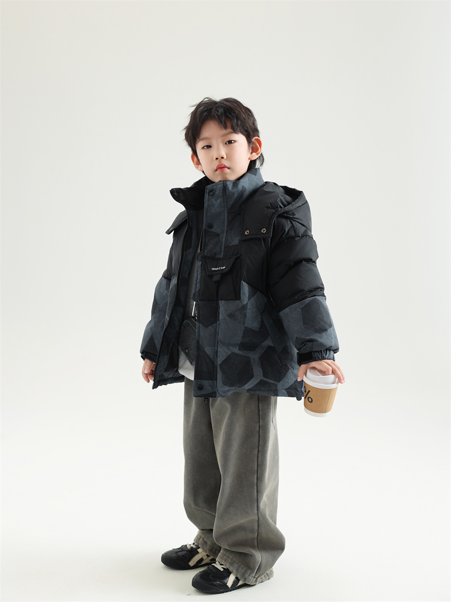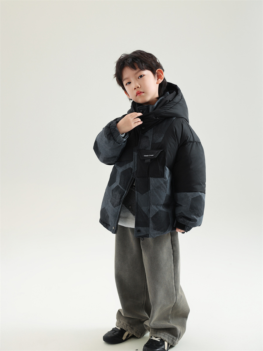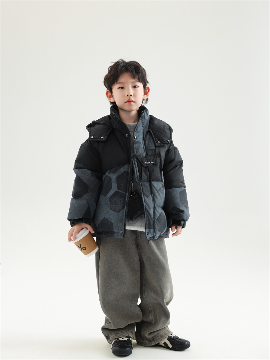 면소재 겨울 중간 길이 화이트 덕다운 남아용 겨울 한국 스타일 2025 신상 따뜻한 스키복 다운 재킷스토어 가기