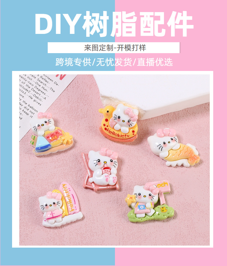 수지 액세서리 크림 접착제 수제 DIY 구멍 신발 버클 장식 머리핀 보석 만화 여름 해변 고양이