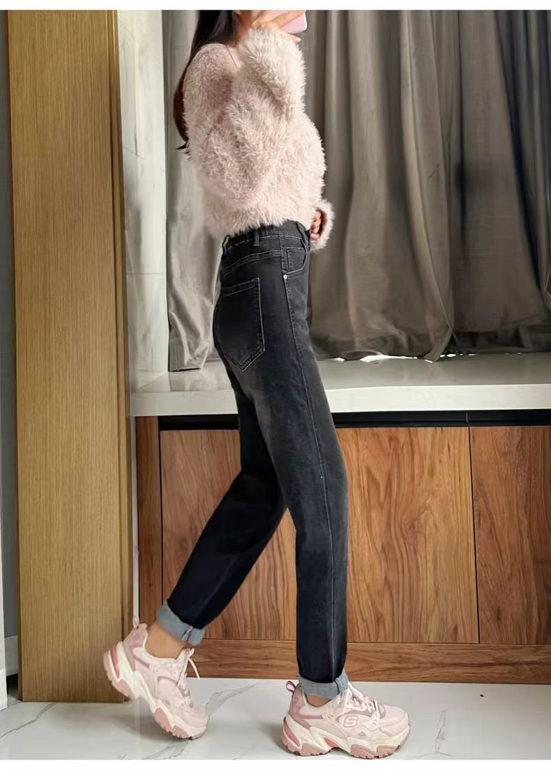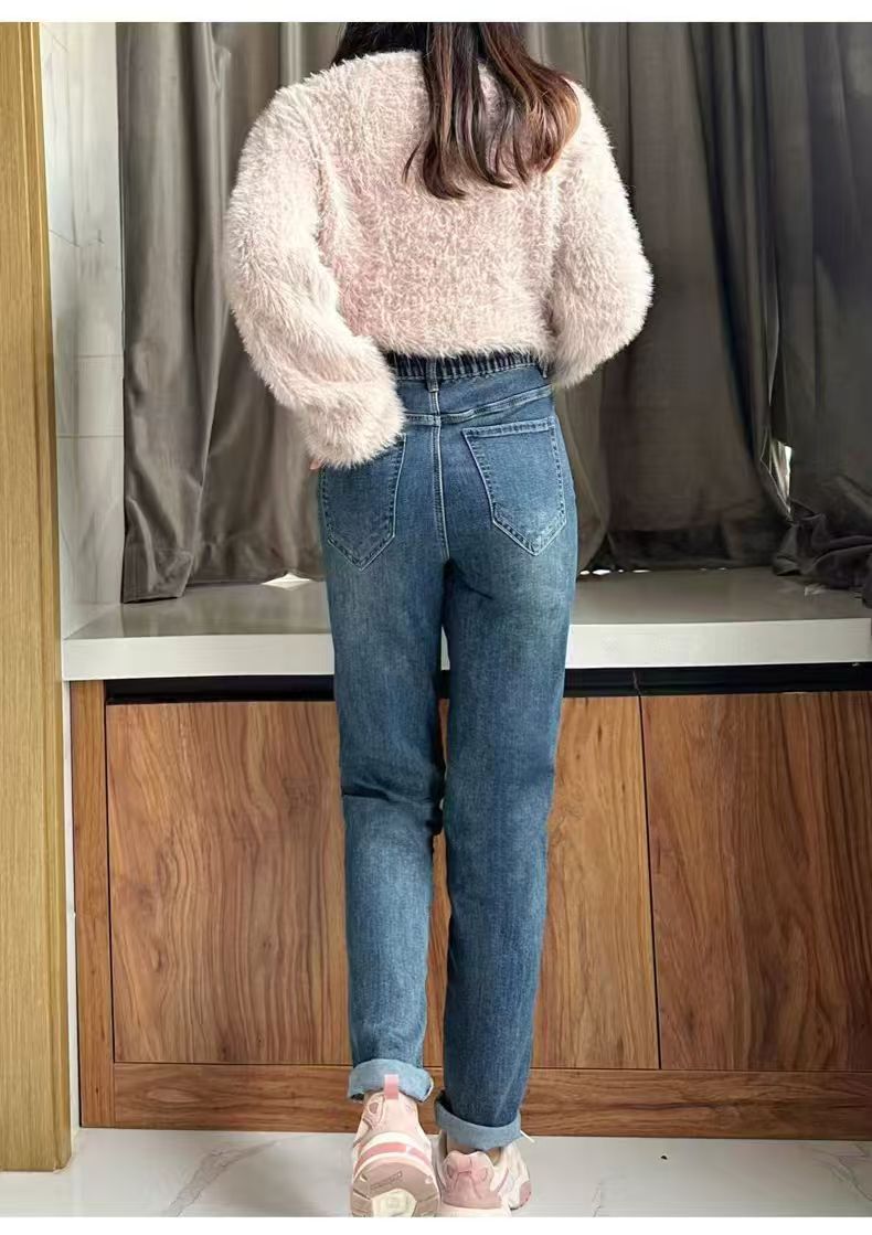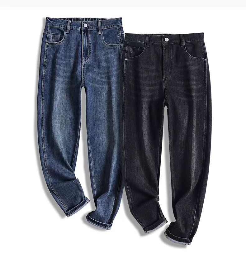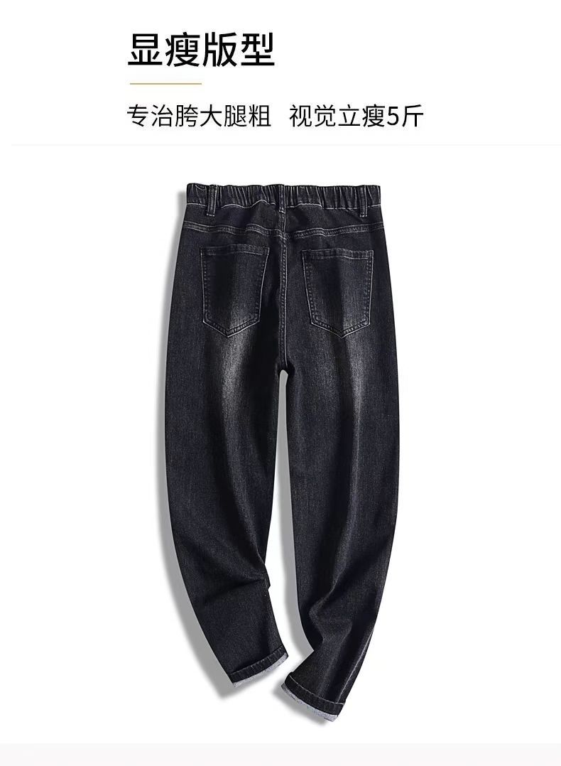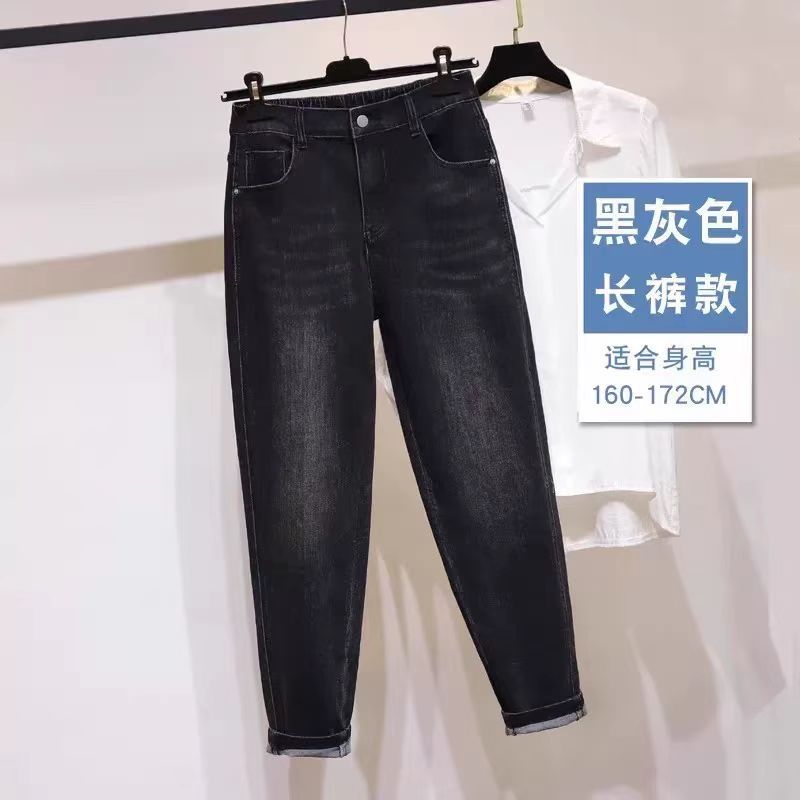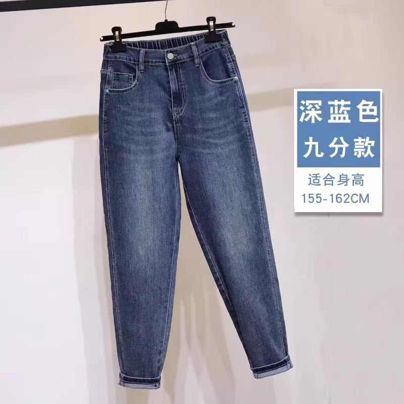 여성용 플러스 사이즈 청바지 봄, 가을 하이웨이스트 뚱뚱한 여성용 100kg 루즈하고 슬리밍한 배 모양의 하렘 팬츠 통기성스토어 가기