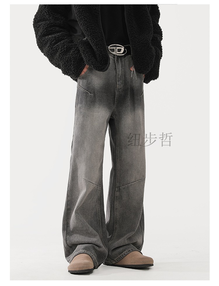 남성과 여성을위한 아메리칸 스타일 레트로 청바지 봄과 가을 새로운 하이 스트리트 팬츠 유행 브랜드 듀플렉스 핸섬 느슨한 넓은 다리 바지스토어 가기
