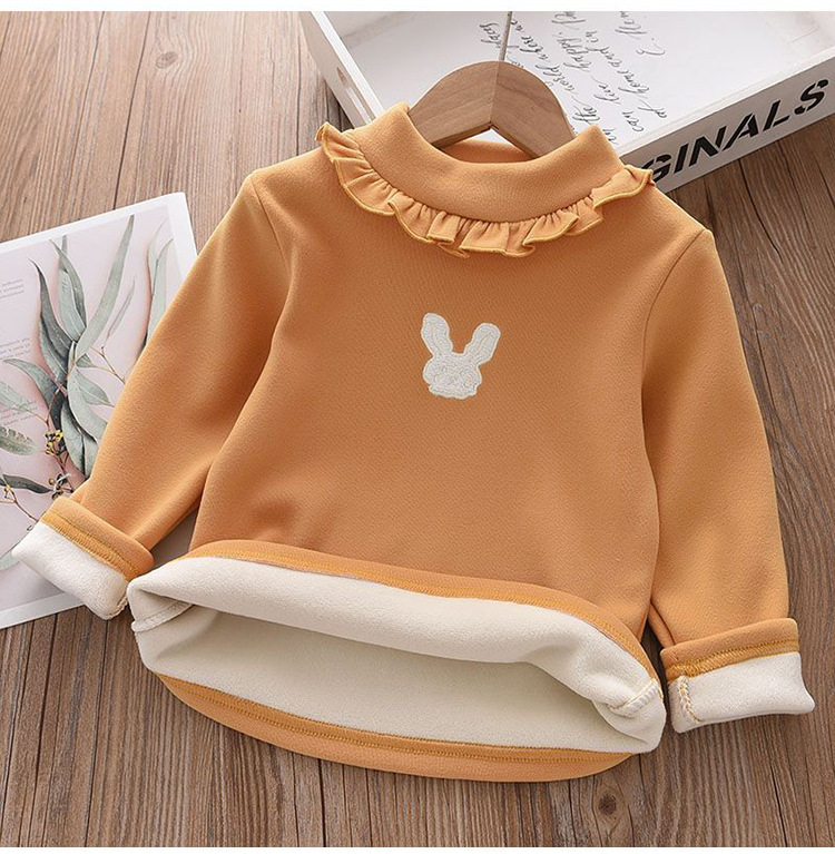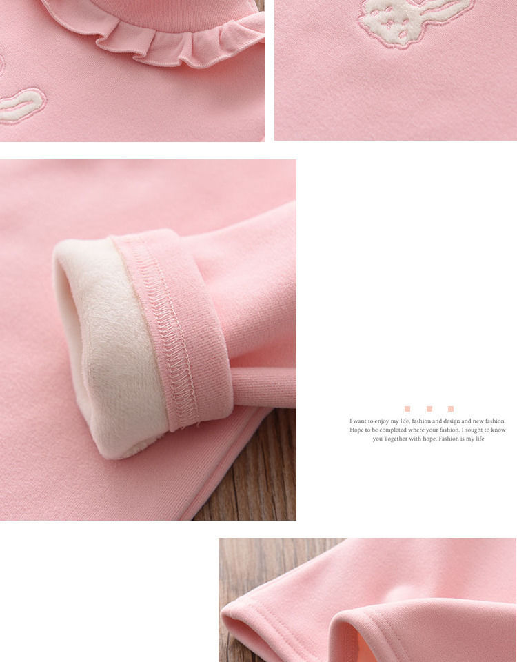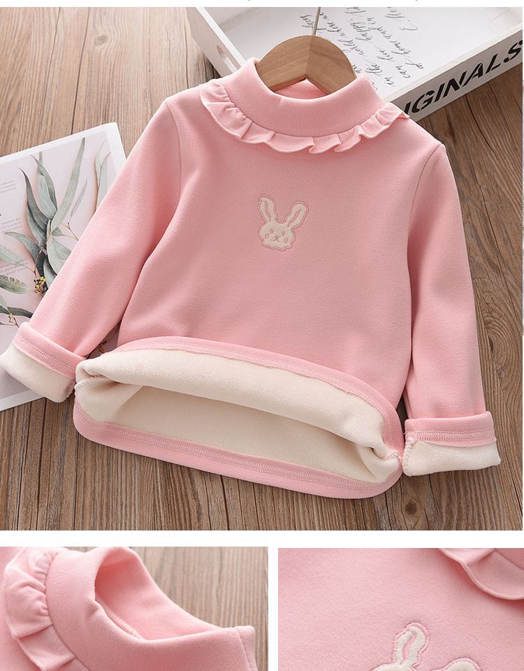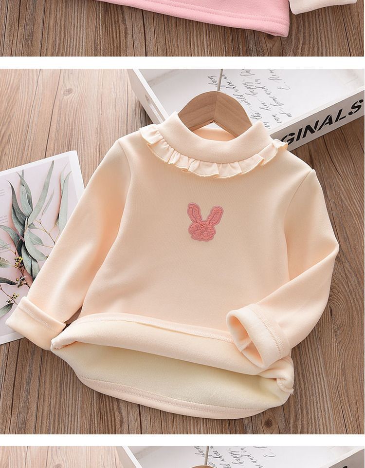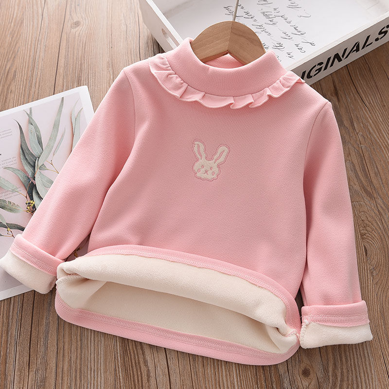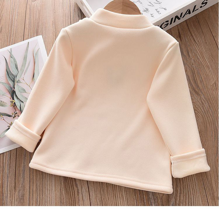여자 기모 베이스 셔츠 가을과 겨울 어린이 모의 칼라 긴팔 티셔츠 아기 두꺼운 따뜻한 탑