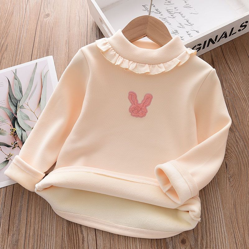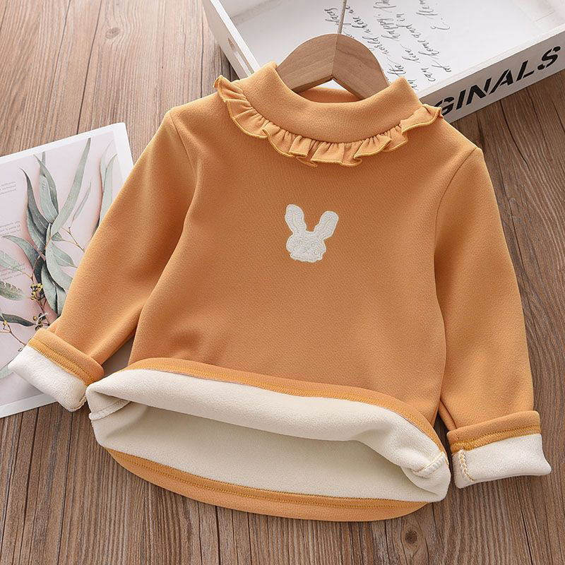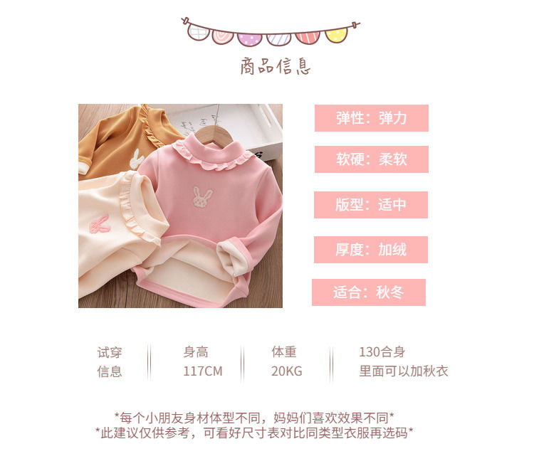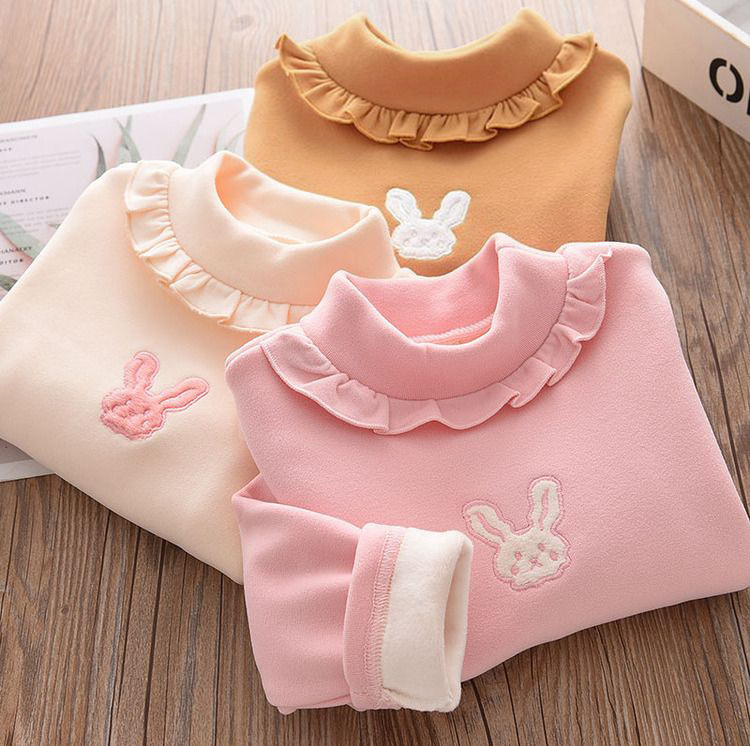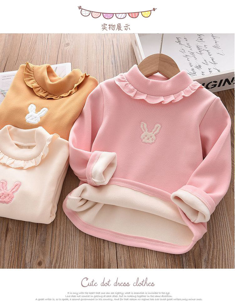 여자 기모 베이스 셔츠 가을과 겨울 어린이 모의 칼라 긴팔 티셔츠 아기 두꺼운 따뜻한 탑스토어 가기