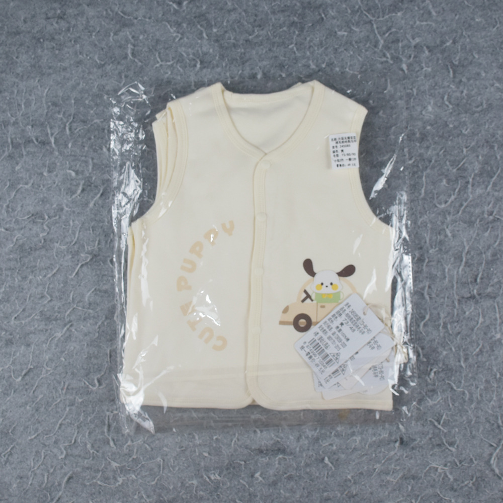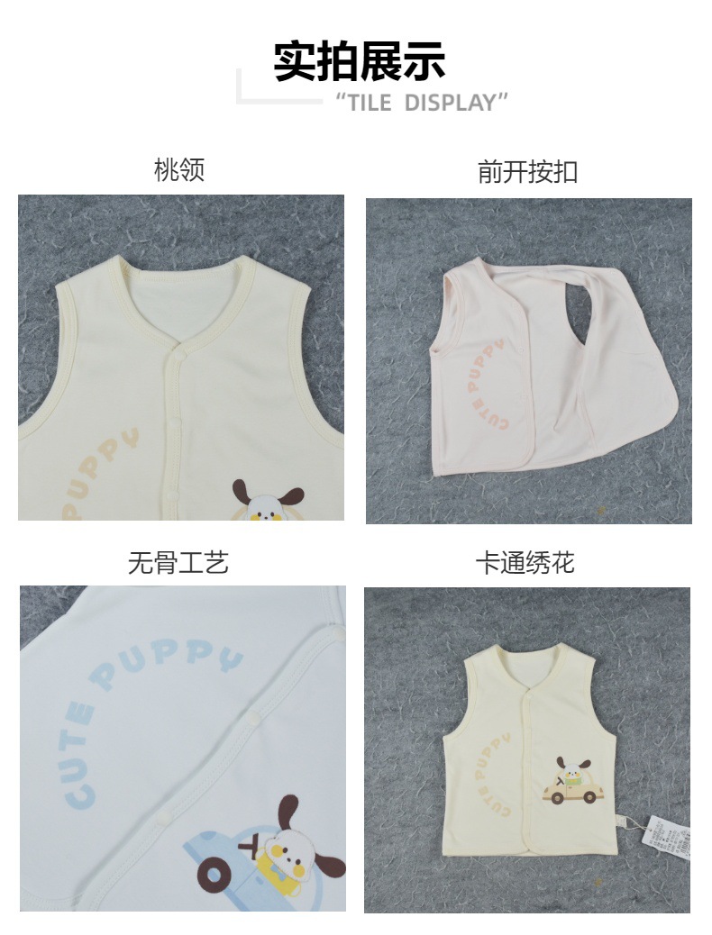 봄 2025 아기 더블 조끼 만화 자수 뼈없는 전면 오프닝 스냅 버튼 의상 아기 원피스 73-90 크기스토어 가기
