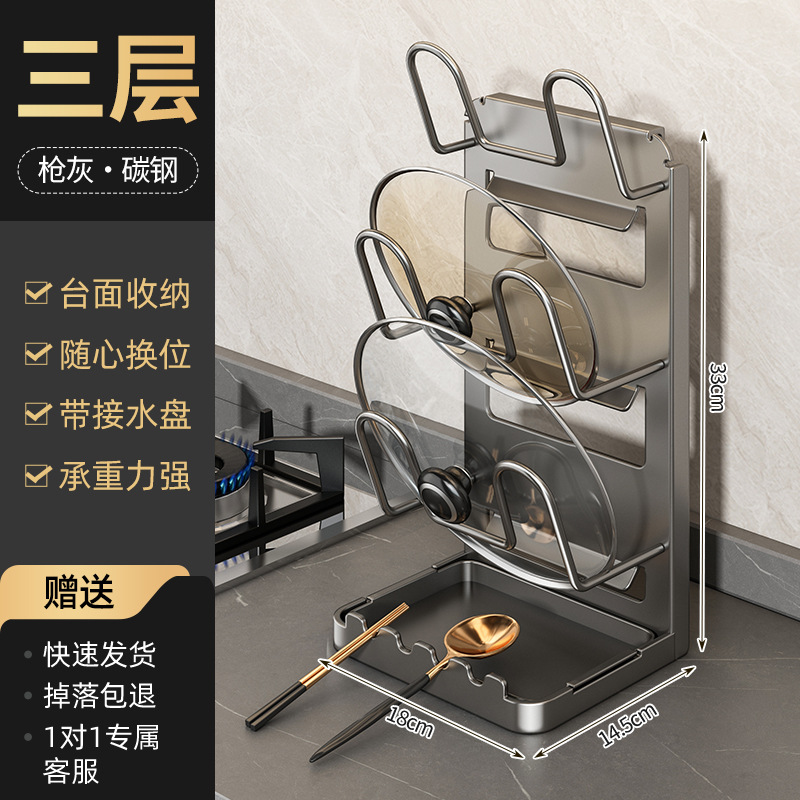• 조리대 냄비 뚜껑 홀더 3겹 - 건 그레이