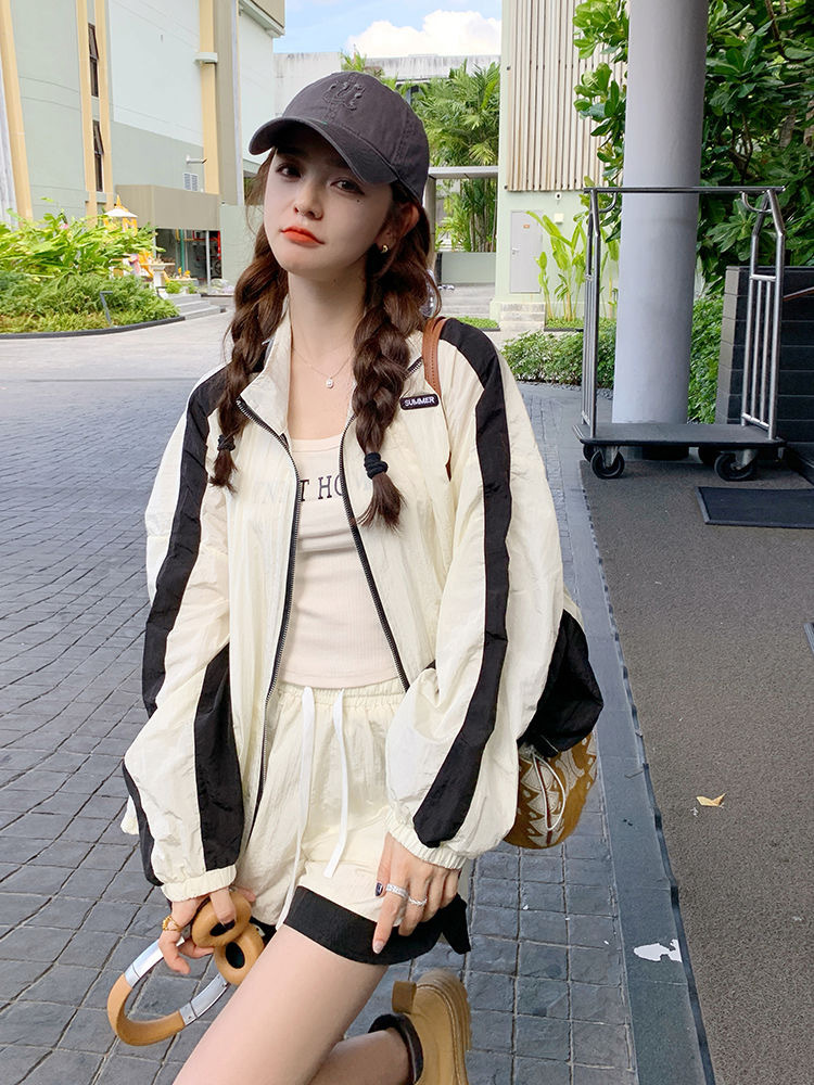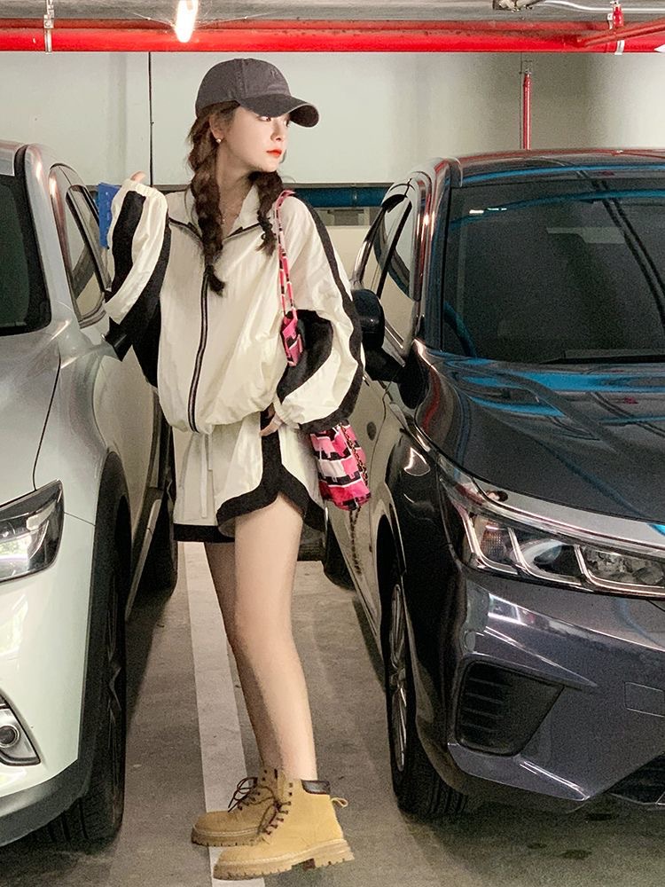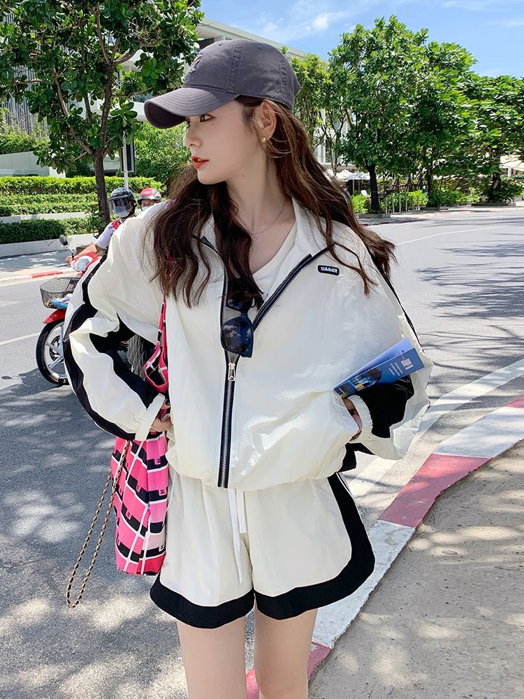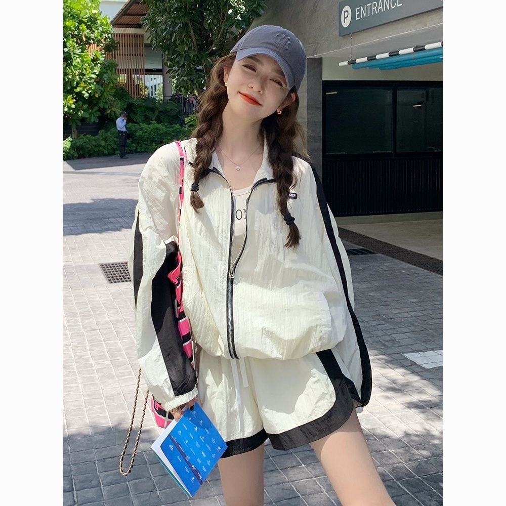 여성을위한 얇은 자외선 차단 정장 여름 한국 새로운 스타일 외국 스타일 연령 감소 긴팔 재킷 반바지 학생 투피스 세트스토어 가기