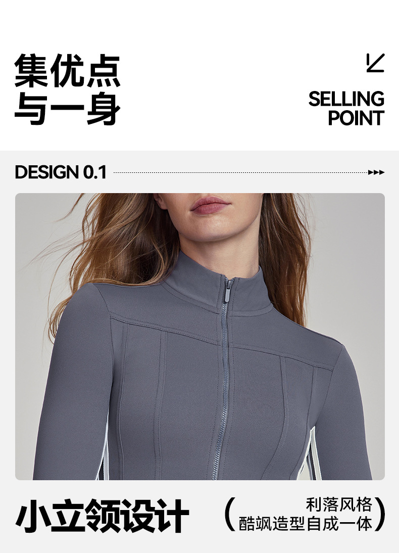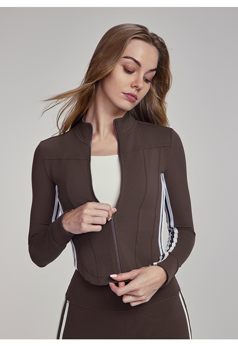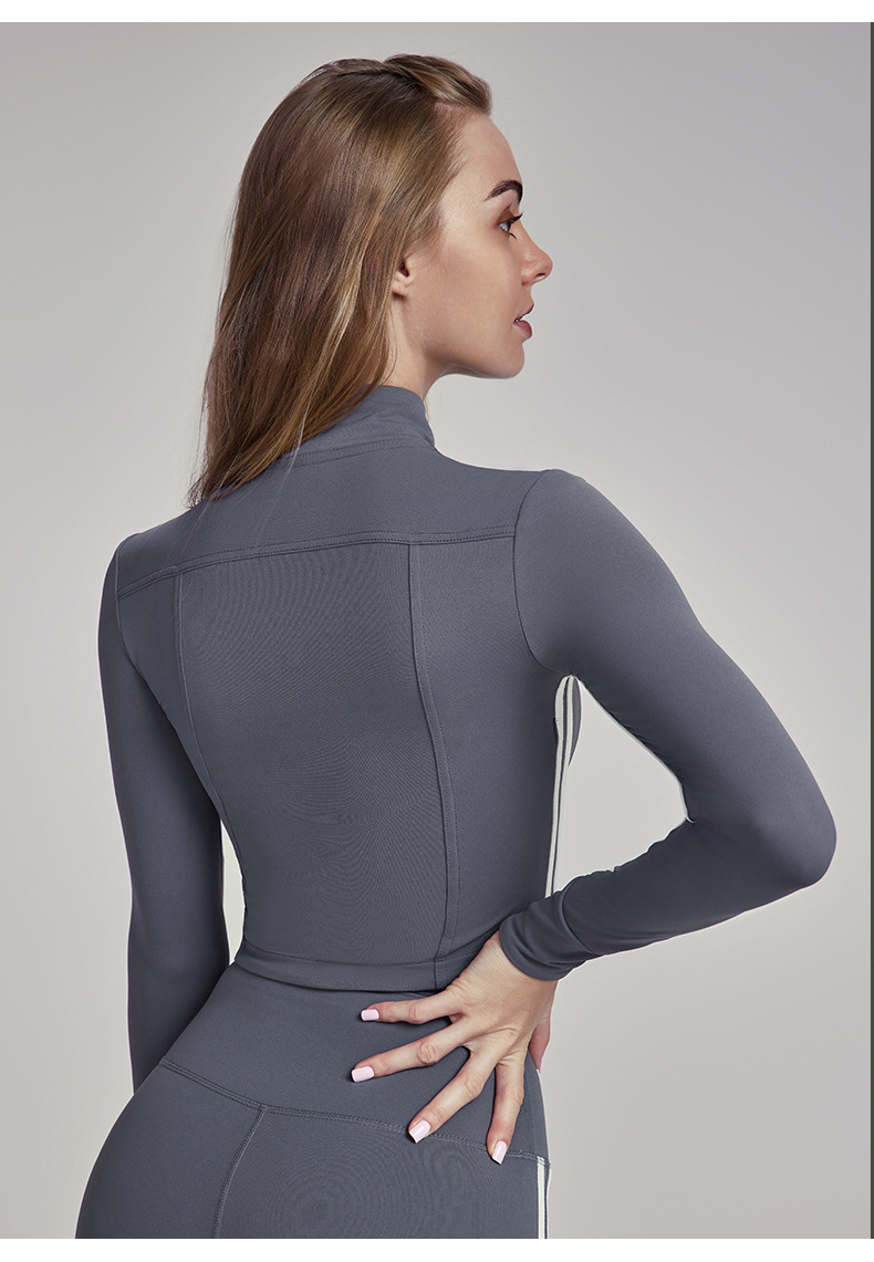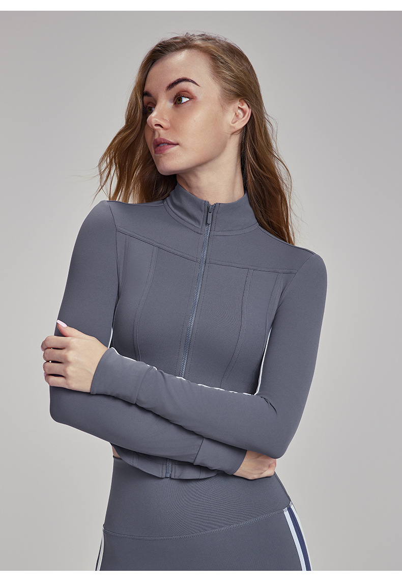 Dashu 의상 요가 코트 여성용 하이 엔드 센스 슬림 핏 수직 칼라 지퍼 탑 요가 피트니스 긴 소매