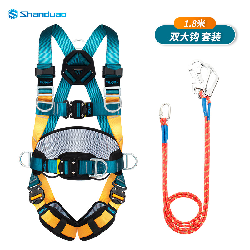 Shanduo Ao 전신 5 점 안전 벨트 공중 작업 세트 이중 후크 보험 안전 로프 전체 국가 표준 세트