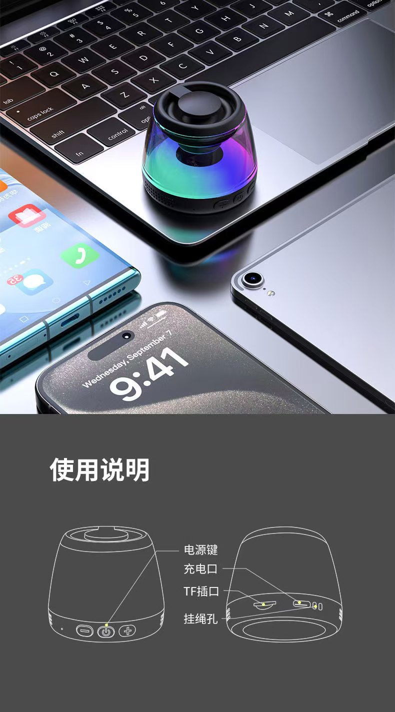 자석 블루투스 스피커 m2 무선 충전 플레이어 미니 스피커 스테레오 고음질 야외 분위기 조명 선물