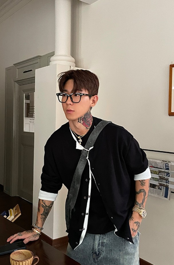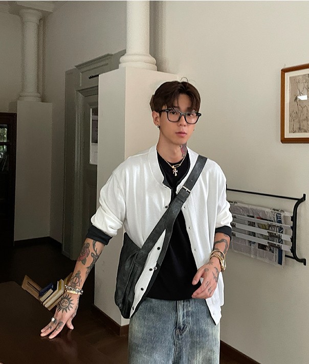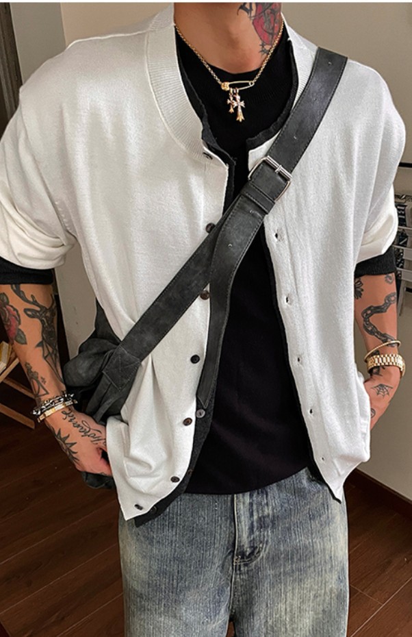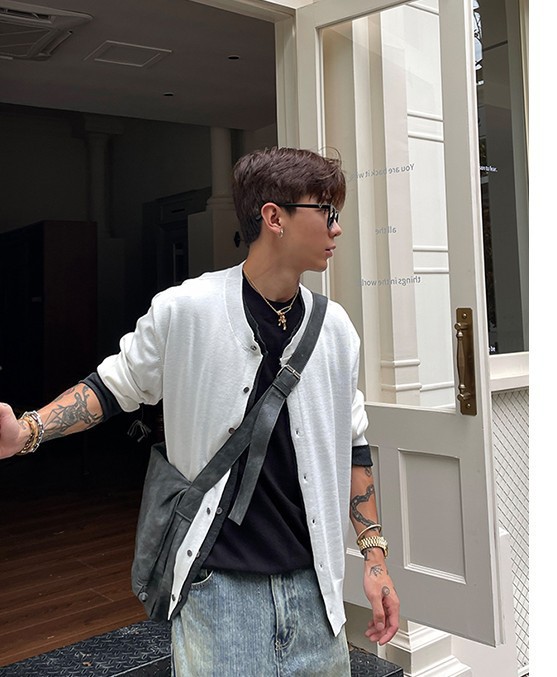 대비 컬러 스티칭 카디건 스웨터 남성용 빈티지 아메리칸 레트로 니트웨어 봄과 가을 패션 브랜드 루즈 재킷스토어 가기