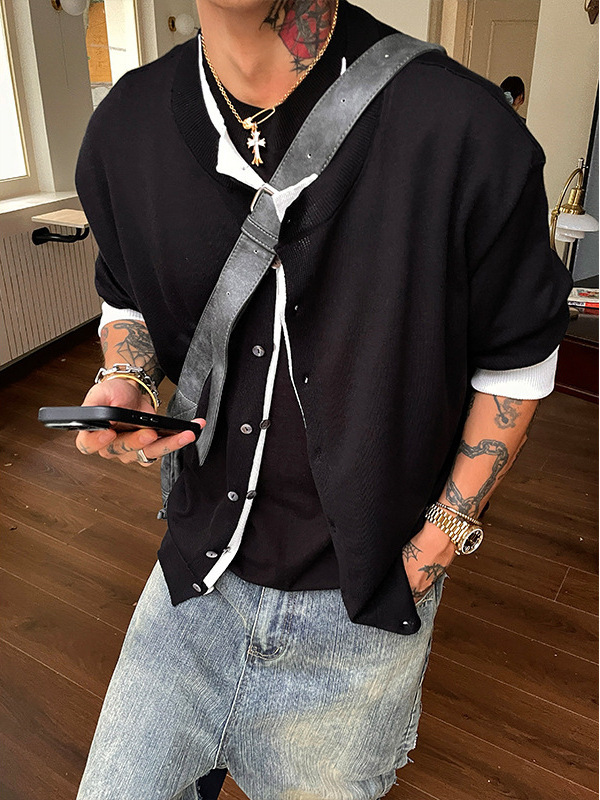 대비 컬러 스티칭 카디건 스웨터 남성용 빈티지 아메리칸 레트로 니트웨어 봄과 가을 패션 브랜드 루즈 재킷