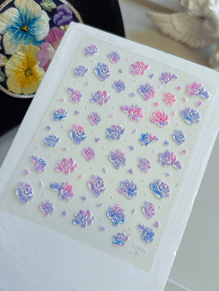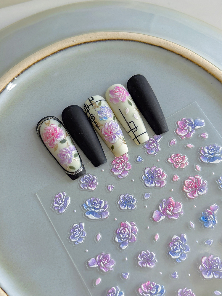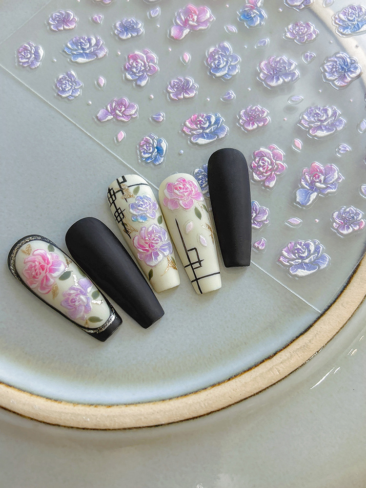 YITU 개미 그림 모란 꽃 네일 아트 스테레오 접착 양각 꽃 꽃잎 장식 스티커 YT3816