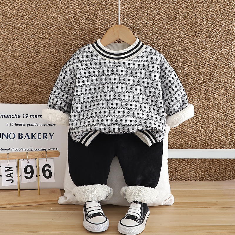 아기 기모 만화 늦은 가을 세트 2024 가을과 겨울 새로운 소년과 소녀 따뜻한 데이비드 긴 소매 투피스 세트 조수스토어 가기
