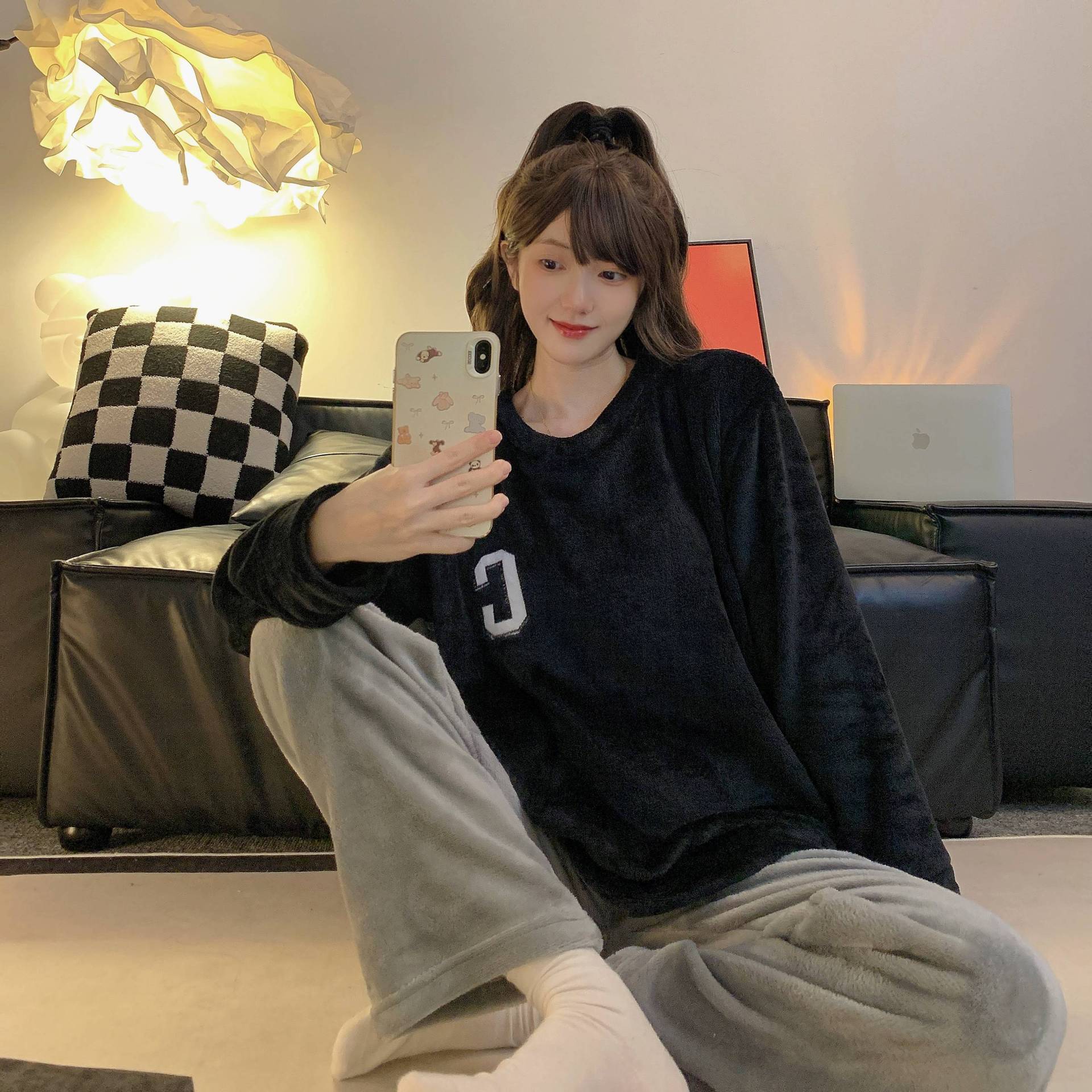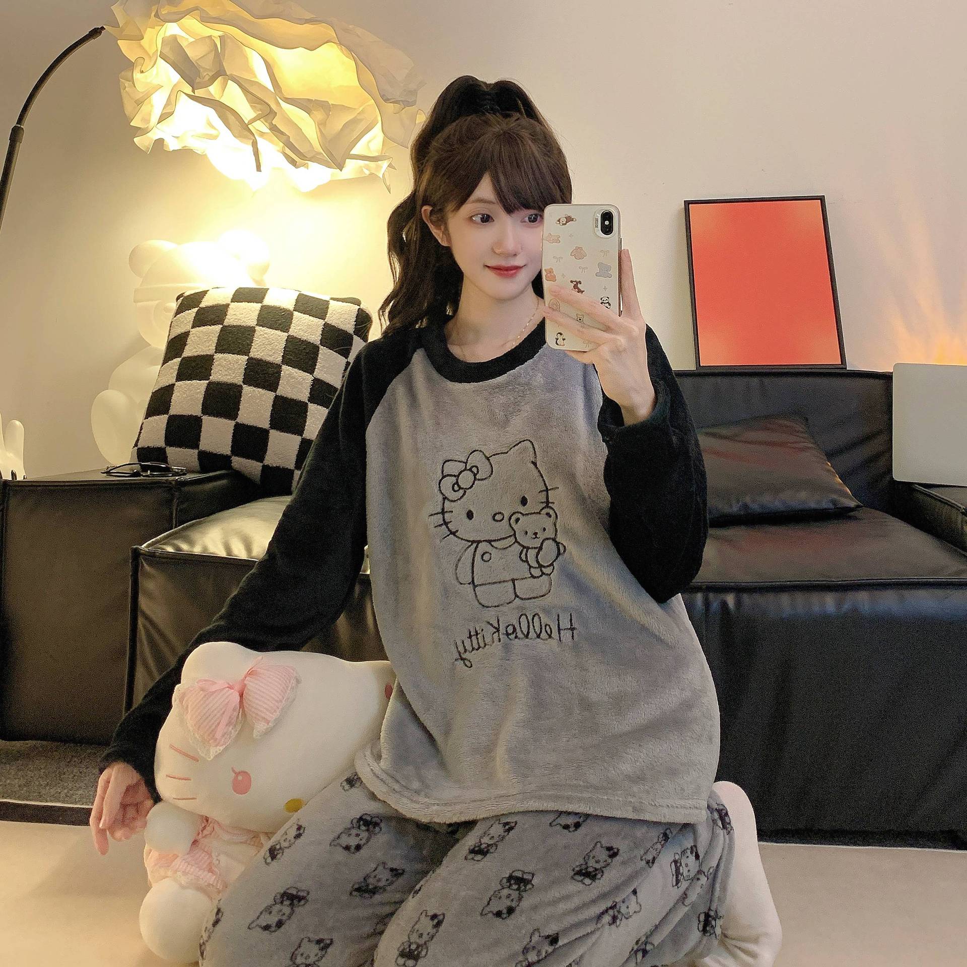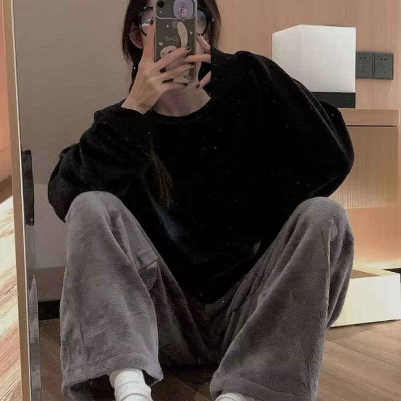 잠옷 여자 겨울 플란넬 한국 스타일 긴 소매 두꺼운 기모 산호 양털 귀여운 가을 겨울 여자 홈 옷 세트