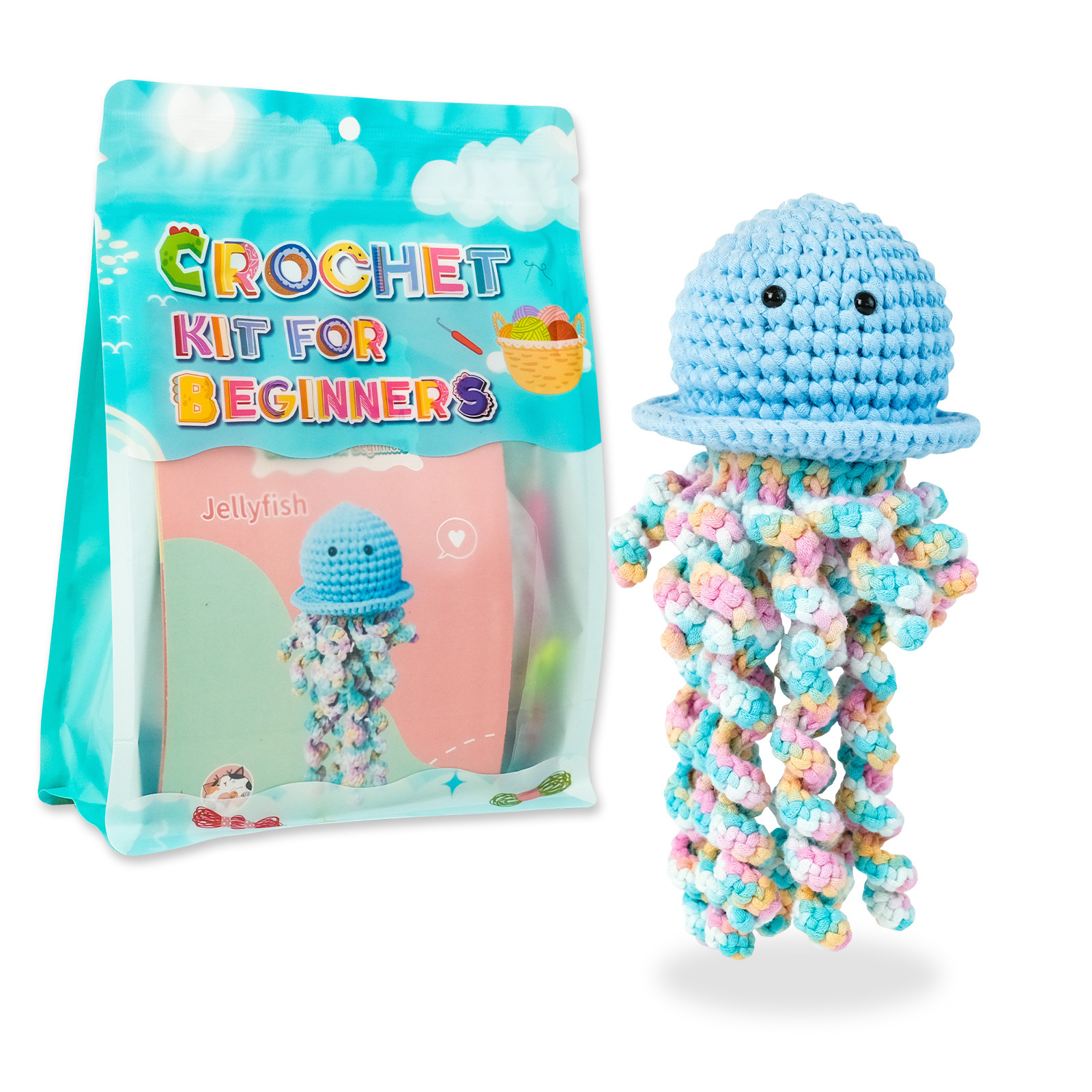 국경 간 크로 셰 뜨개질 컬러 해파리 인형 짠 재료 패키지 영어 수동 튜토리얼 생일 선물